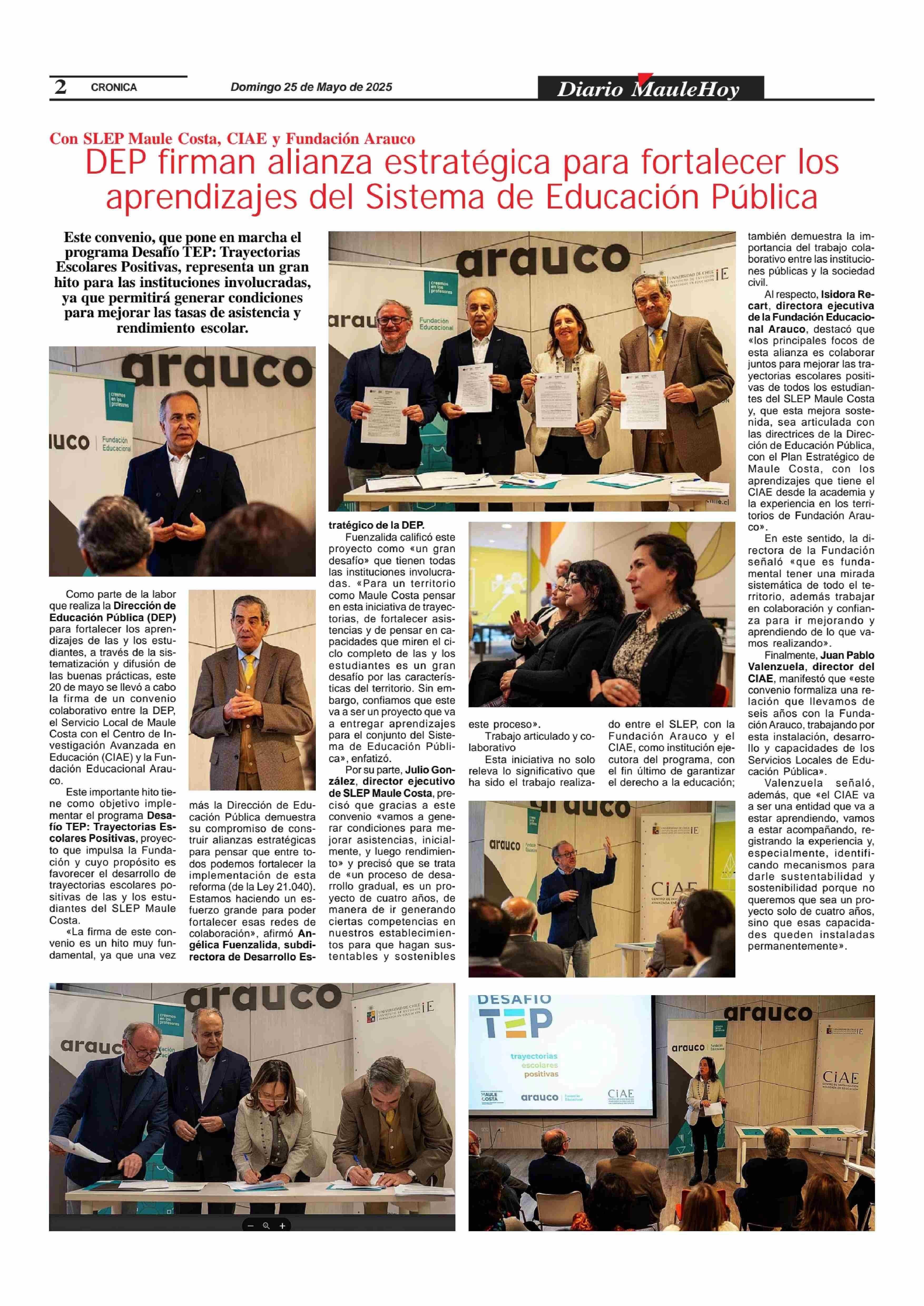 DEP firman alianza estratégica para fortalecer los aprendizajes del Sistema de Educación Pública 25-05-2025 Maule Hoy |