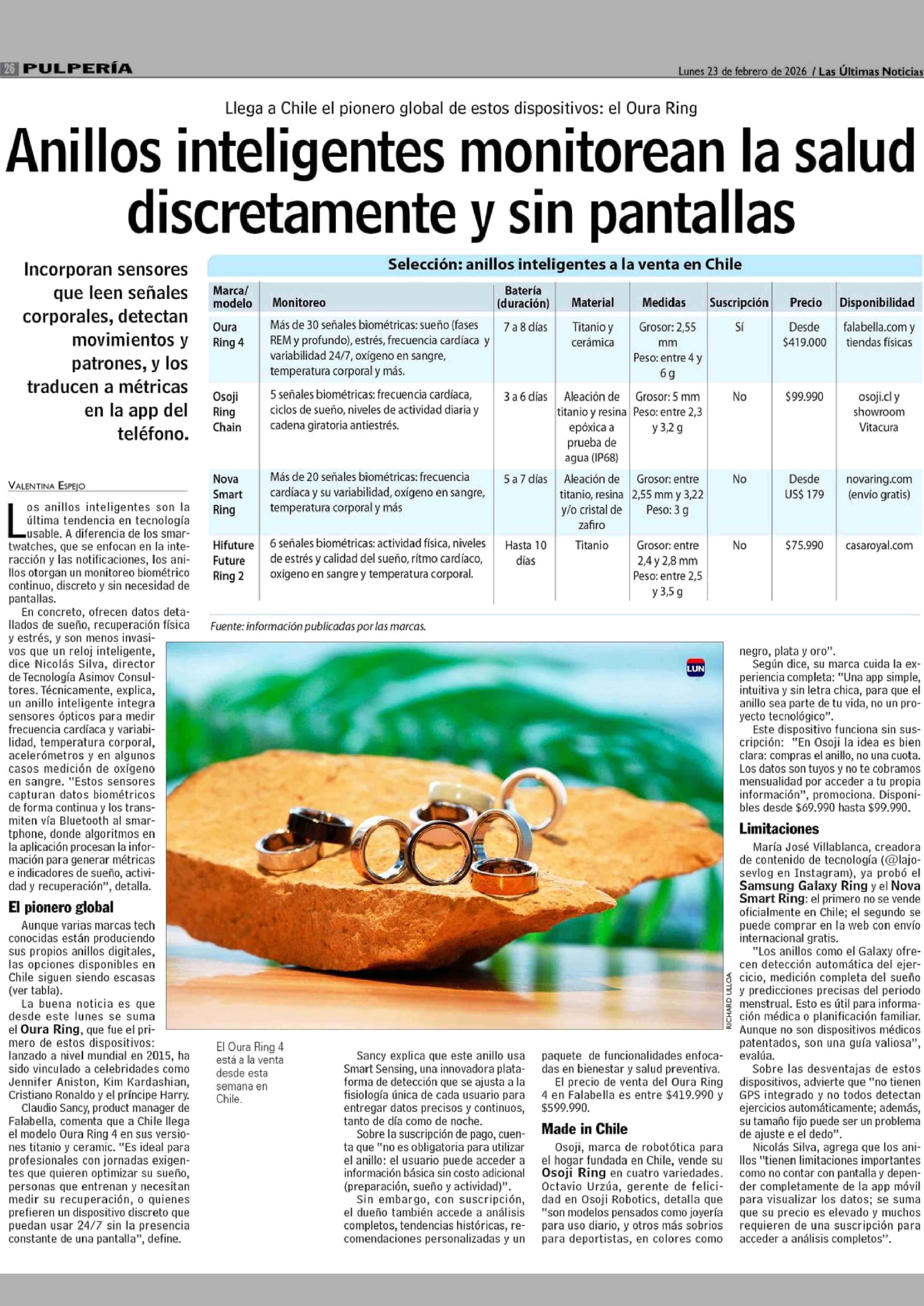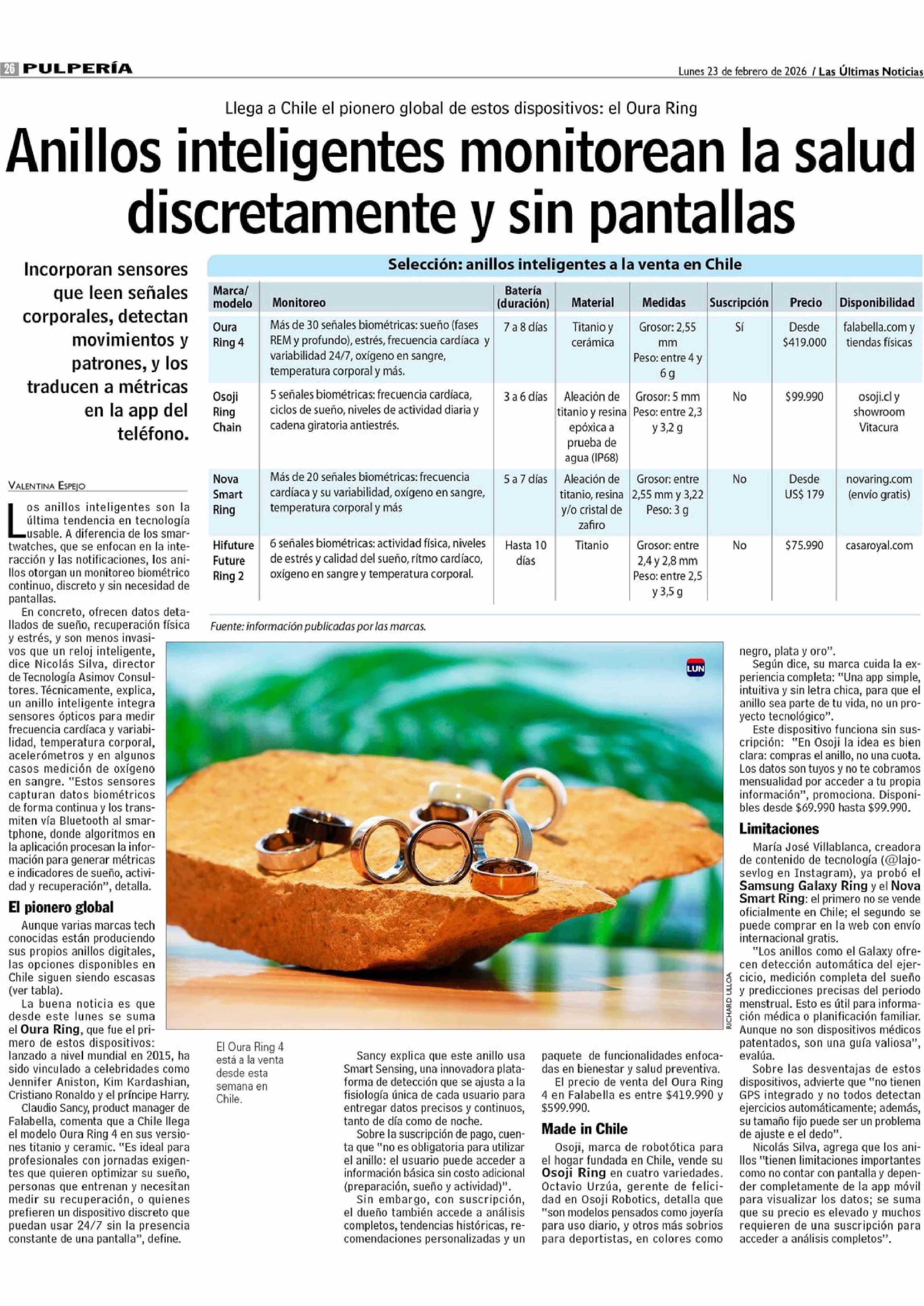 Anillos inteligentes monitorean la salud discretamente y sin pantallas 23-02-2026 Las Últimas Noticias |