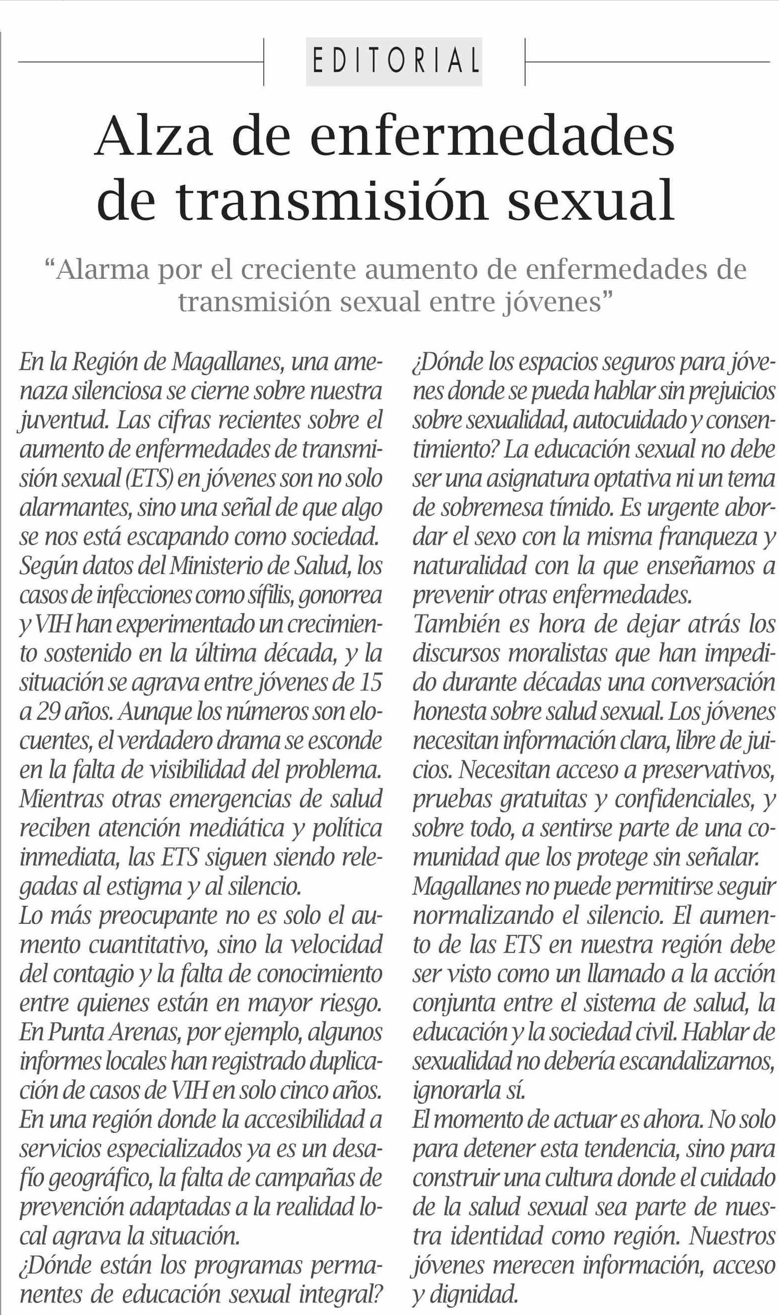 EDITORIAL: Alza de enfermedades de transmisión sexual 15-06-2025 El Pingüino |