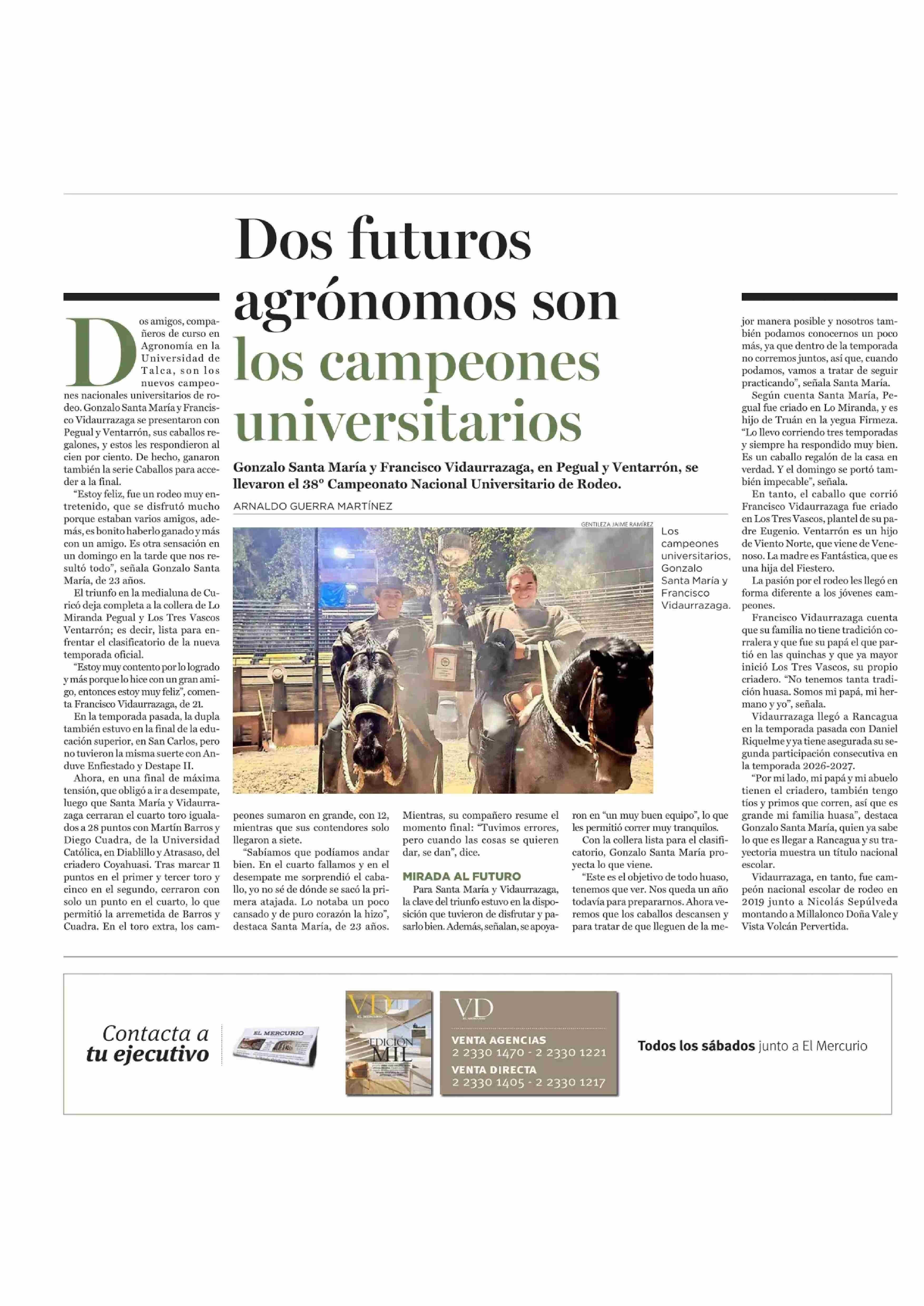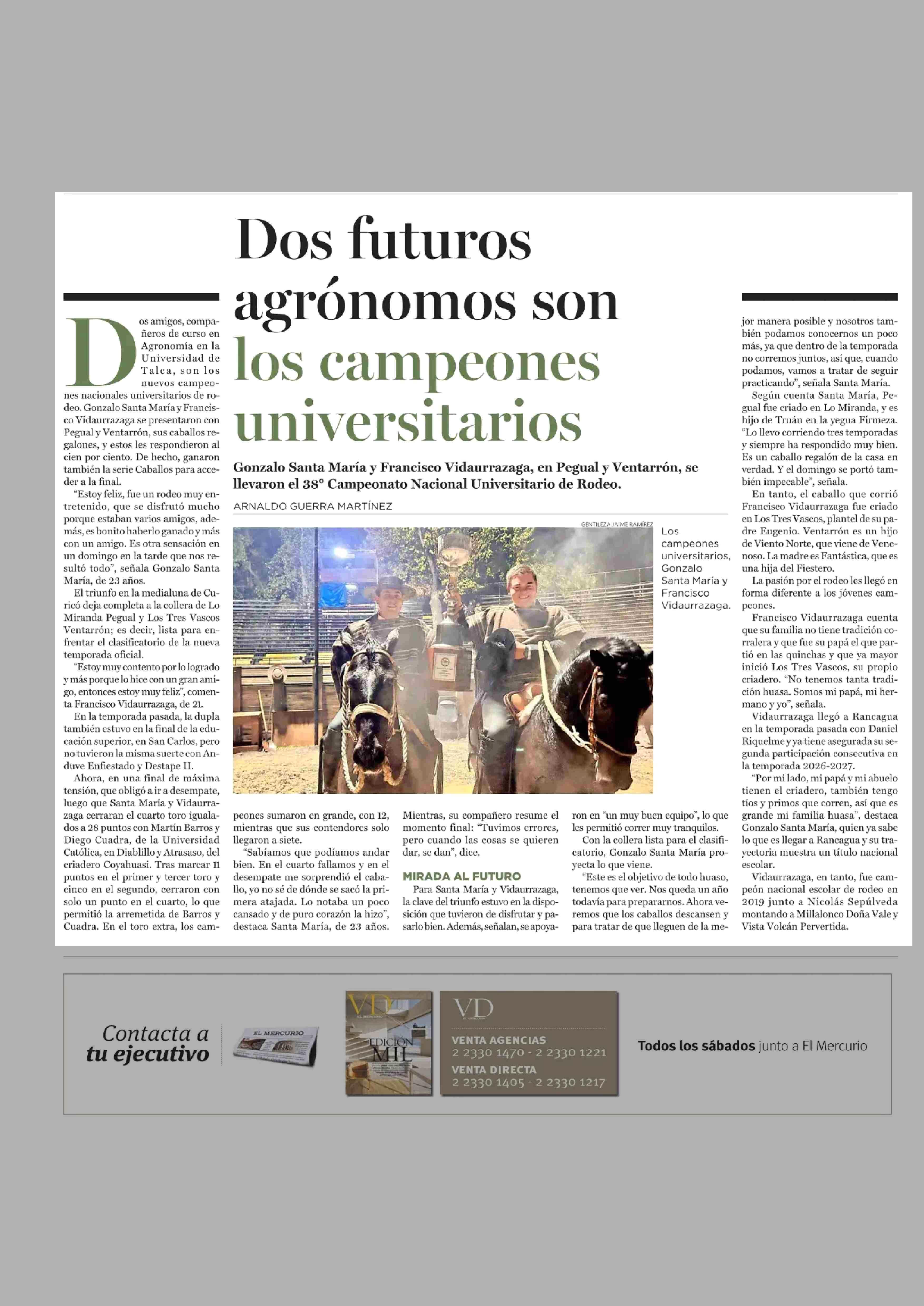 Dos futuros agrónomos son los campeones universitarios 27-04-2026 El Mercurio |