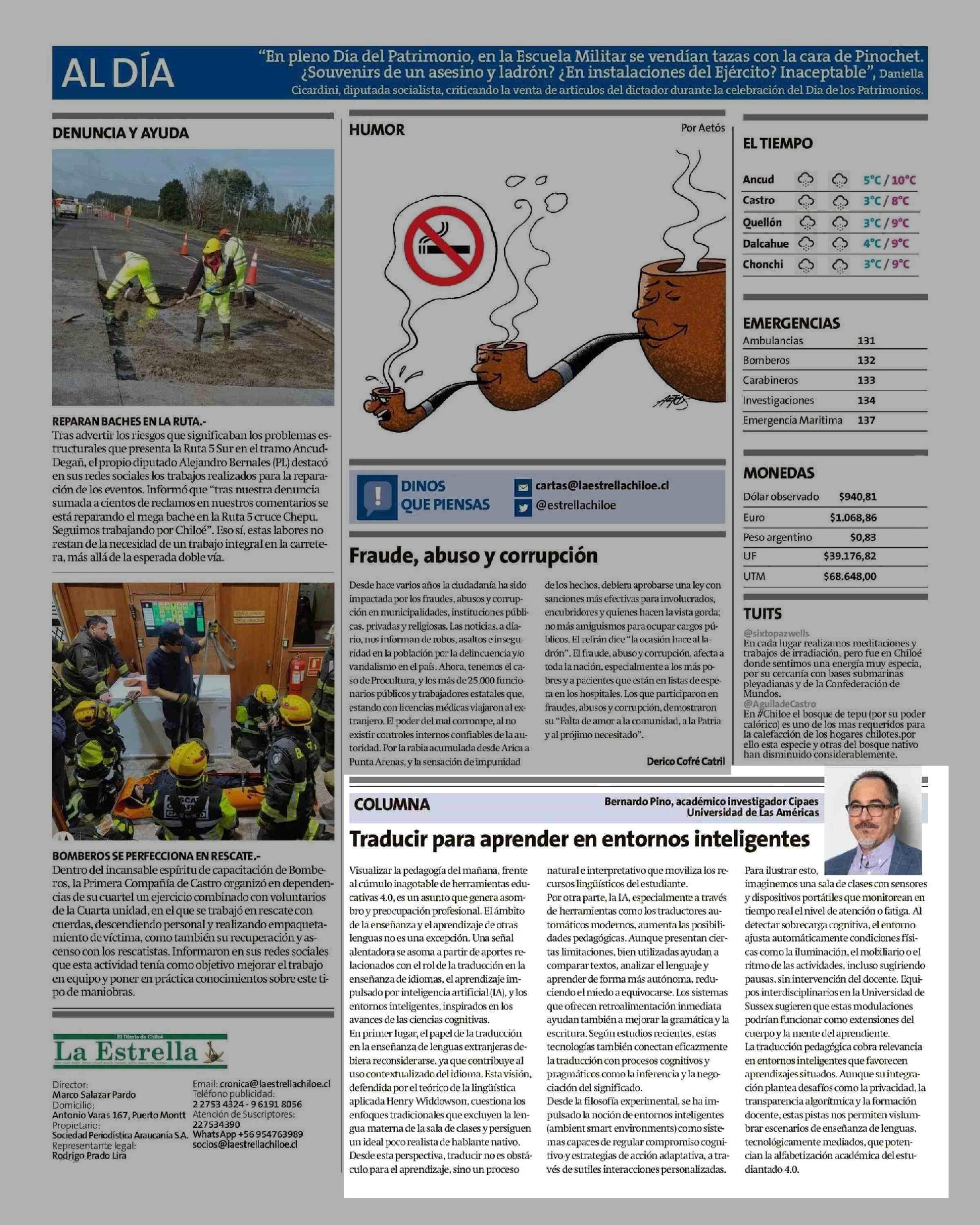 COLUMNAS DE OPINIÓN: Traducir para aprender en entornos inteligentes 26-05-2025 La Estrella de Chiloé |