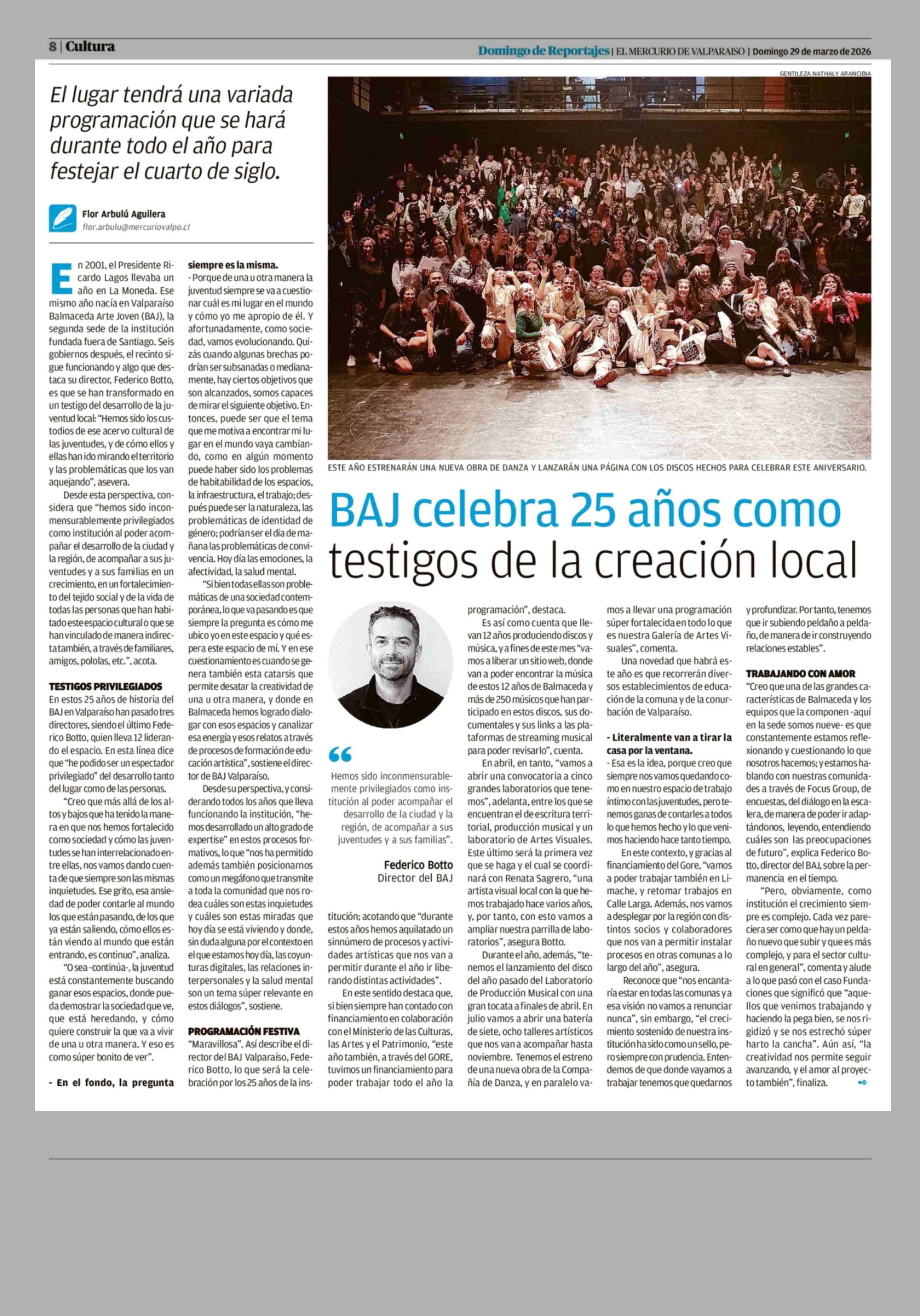 BAJ celebra 25 años como testigos de la creación local 29-03-2026 El Mercurio de Valparaíso |