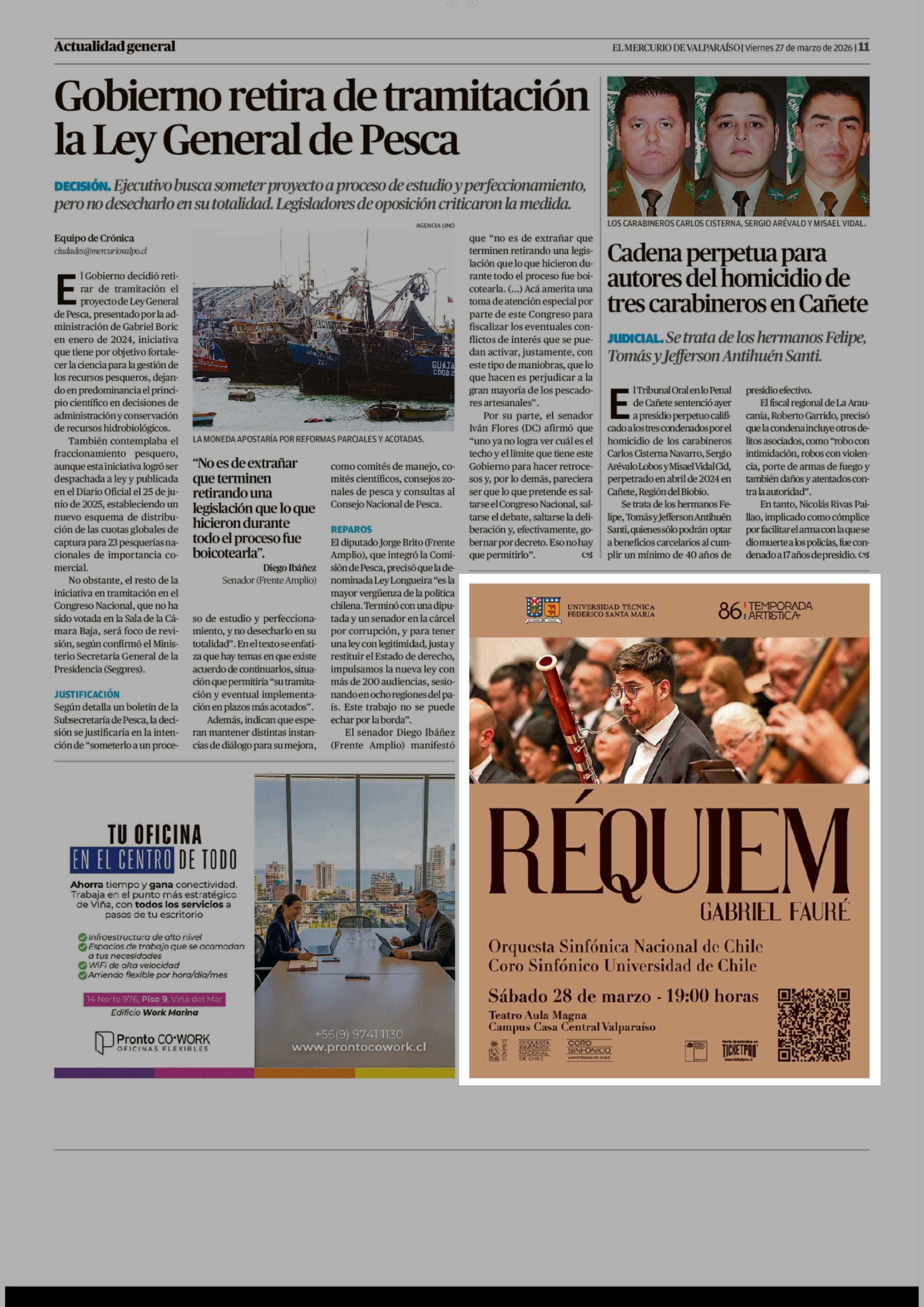 Aviso Publicitario: UNIVERSIDAD TECNICA FEDERICO SANTA MARIA 27-03-2026 El Mercurio de Valparaíso |