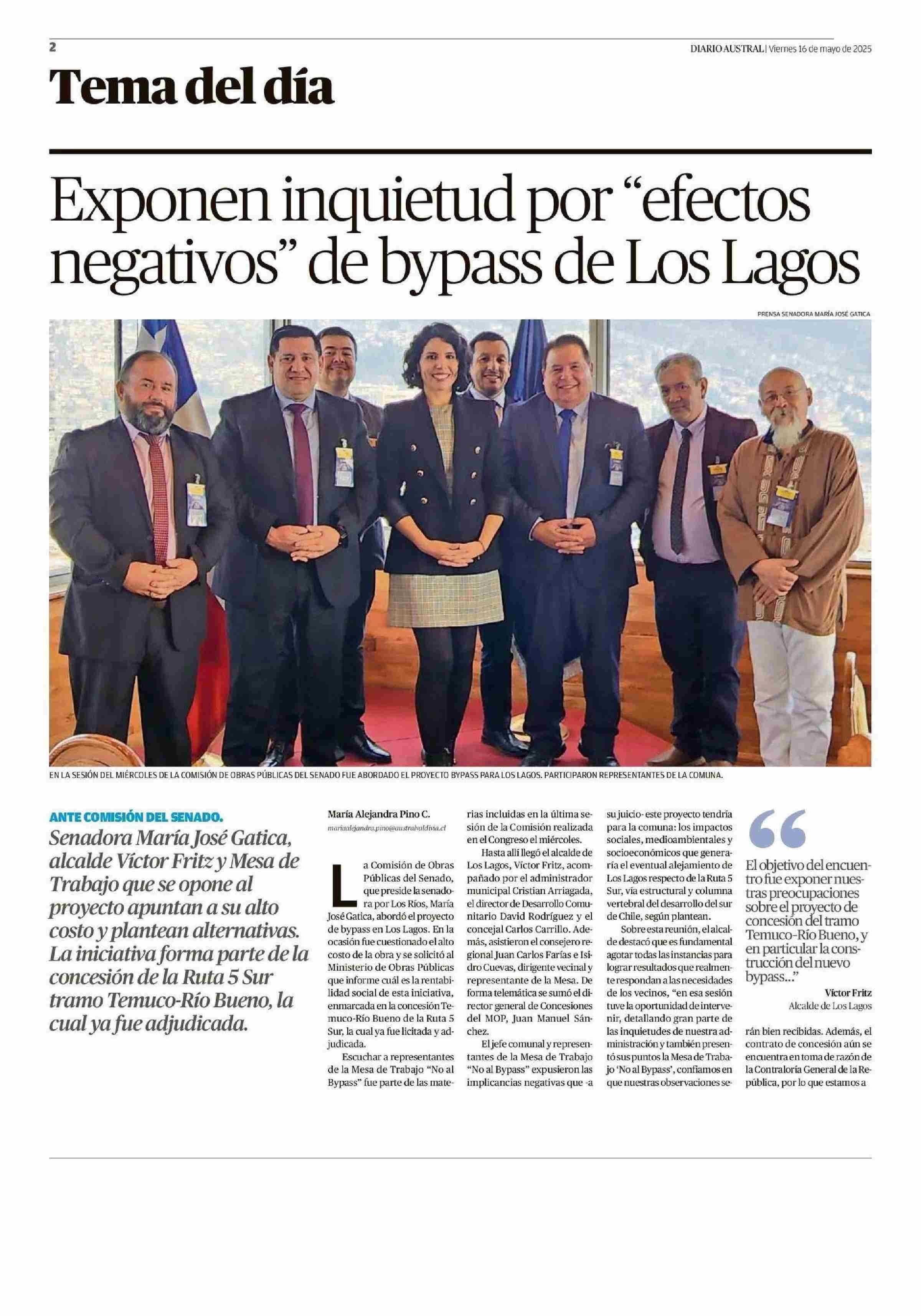 Exponen inquietud por “efectos negativos” de bypass de Los Lagos 16-05-2025 Diario Austral Región de Los Ríos |