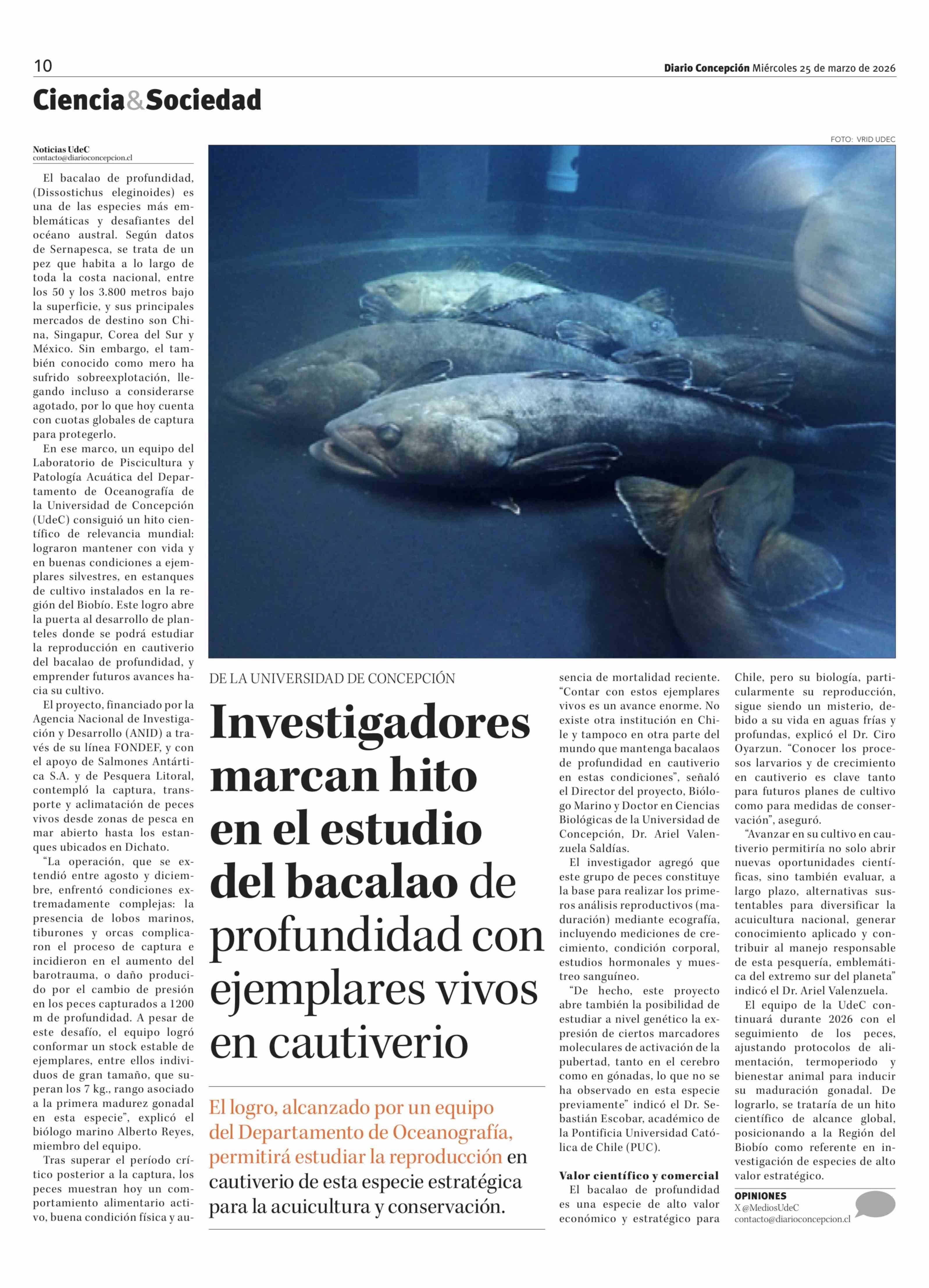 Título: Investigadores marcan hito en el estudio del bacalao de profundidad con ejemplares vivos en cautiverio