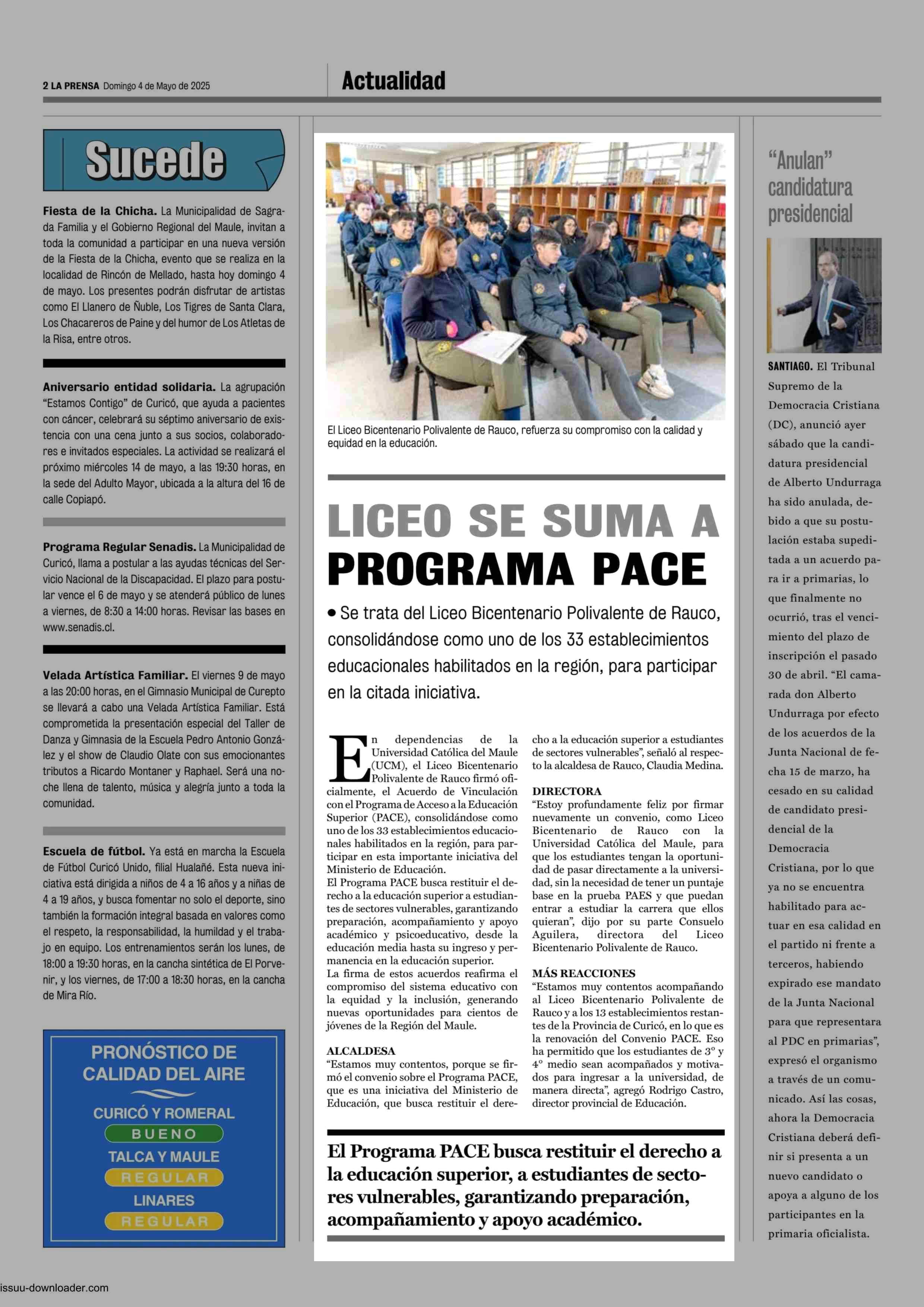 LICEO SE SUMA A PROGRAMA PACE 04-05-2025 La Prensa de Curicó |