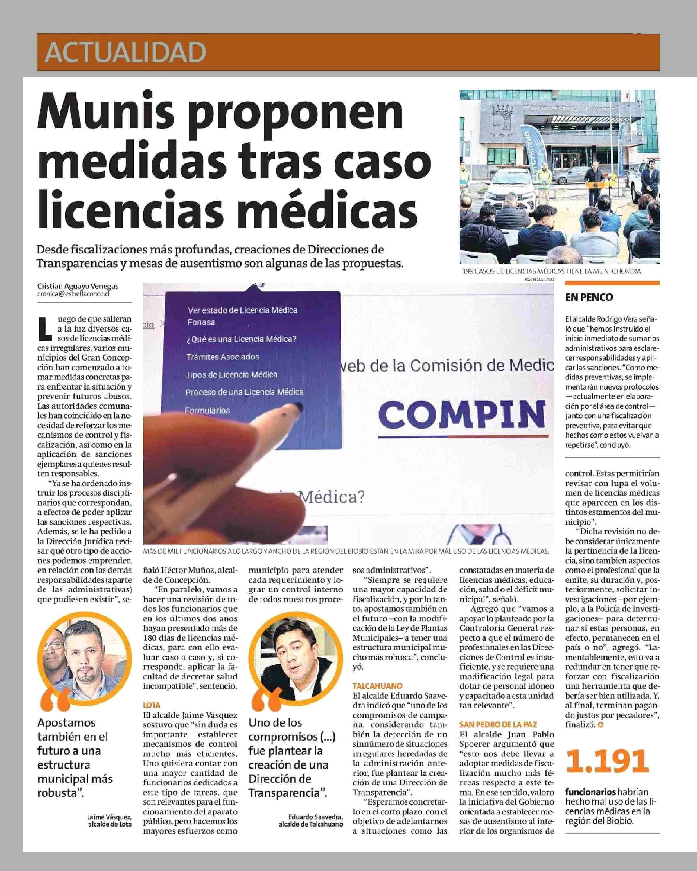 Munís proponen medidas tras caso licencias médicas 26-05-2025 La Estrella de Concepción |