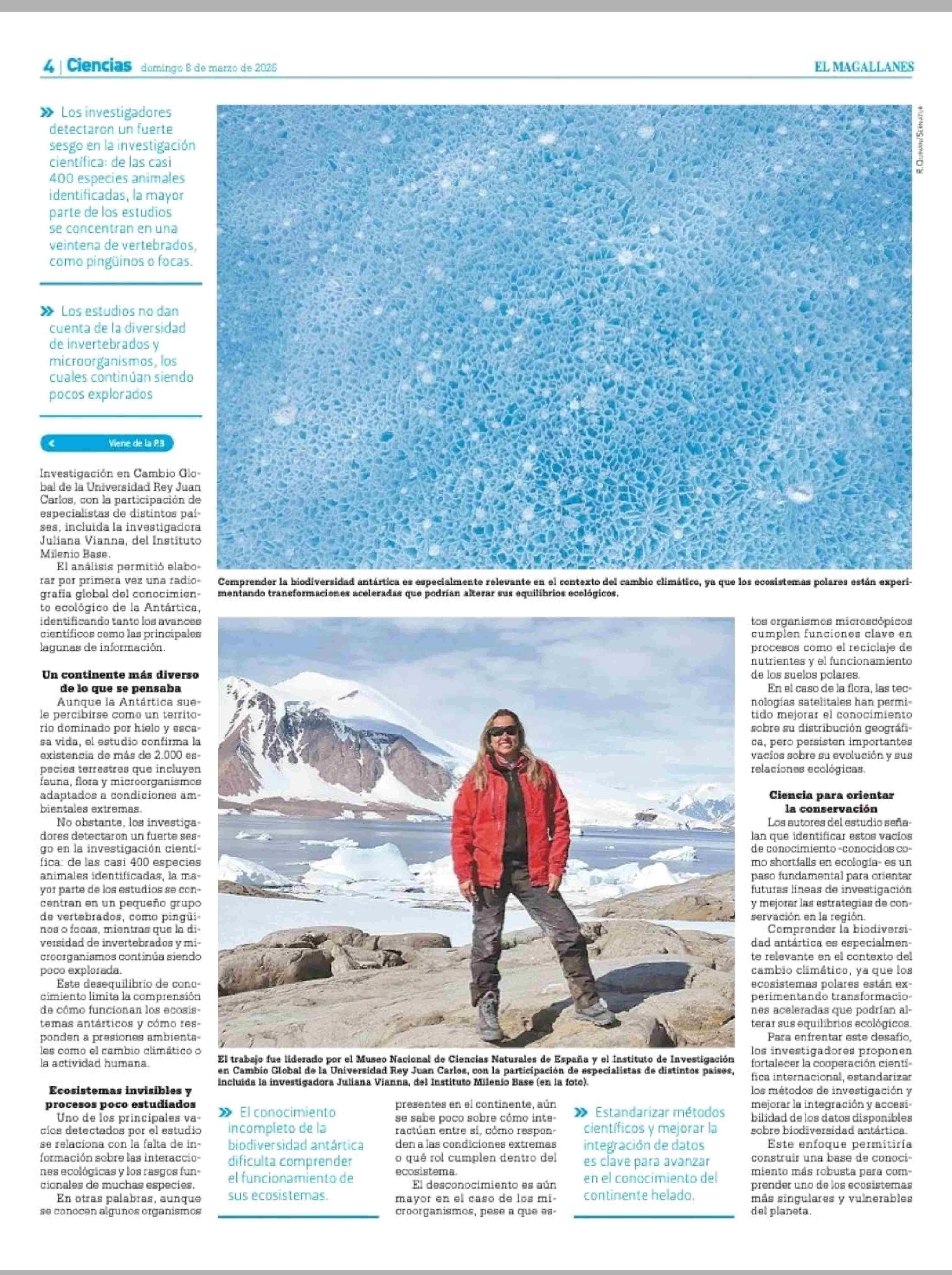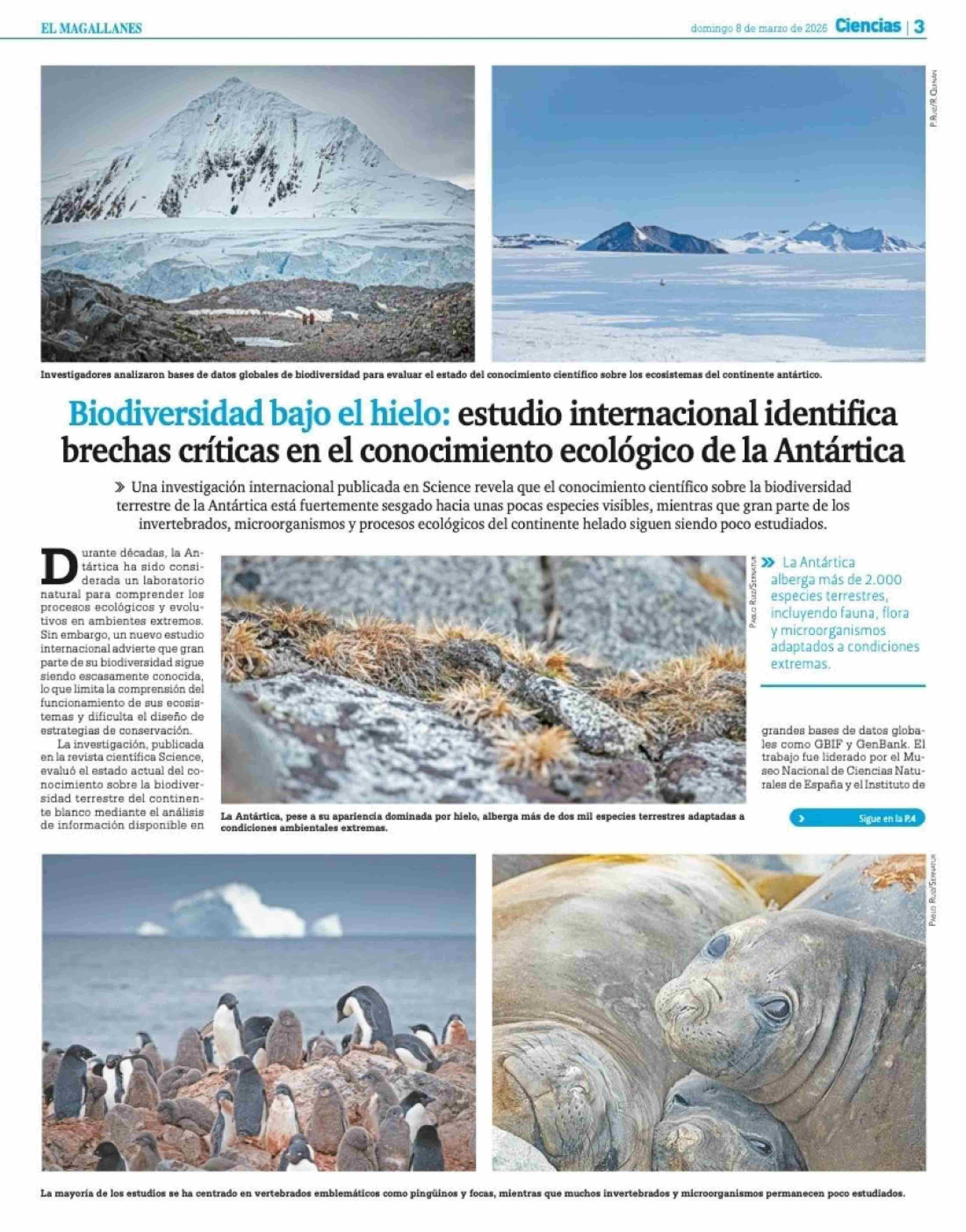 Título: Biodiversidad bajo el hielo: estudio internacional identifica brechas críticas en el conocimiento ecológico de la Antártica