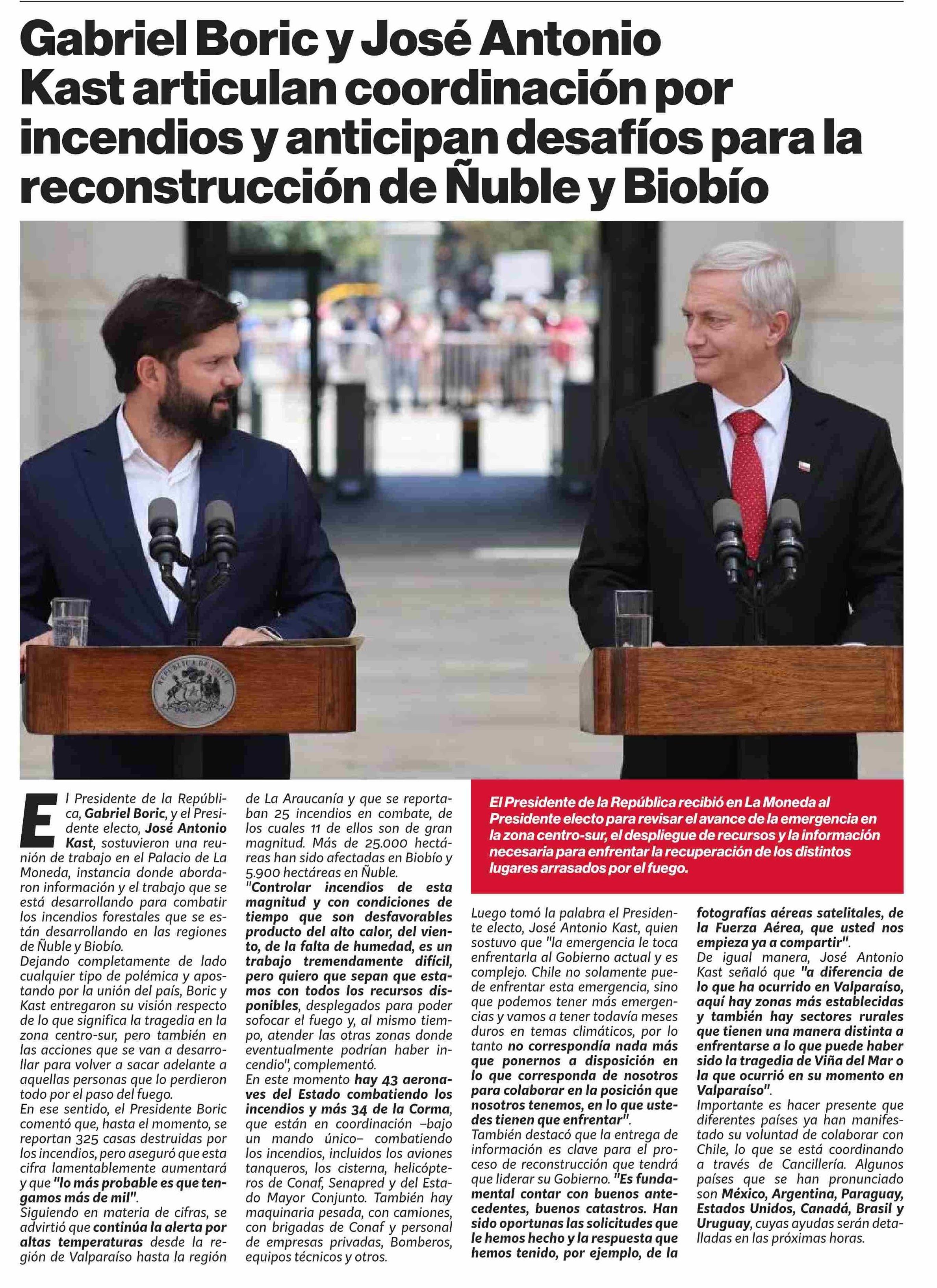| Título: | Gabriel Boric y José Antonio Kast articulan coordinación por incendios y anticipan desafíos para la reconstrucción de Nuble y Biobío |