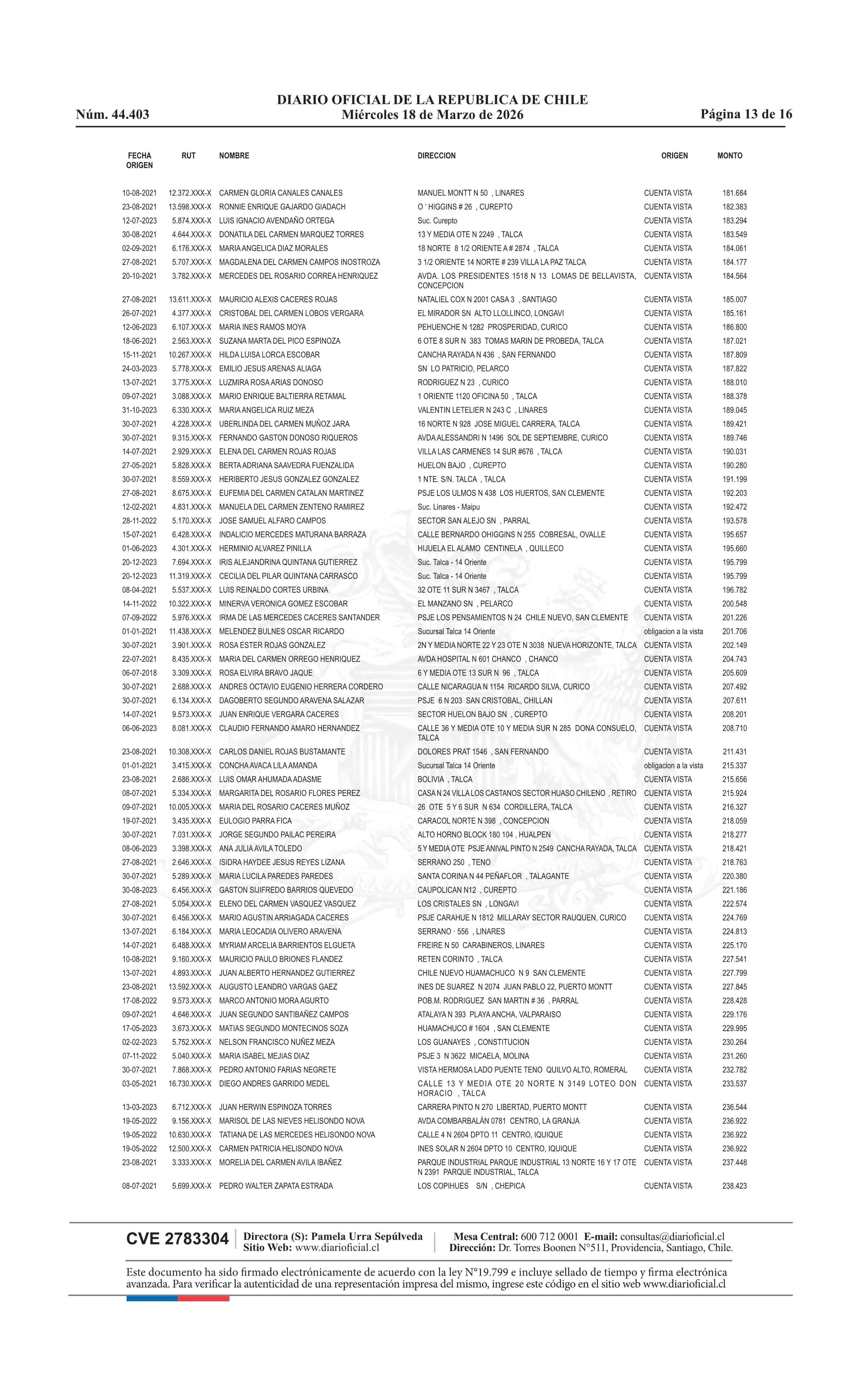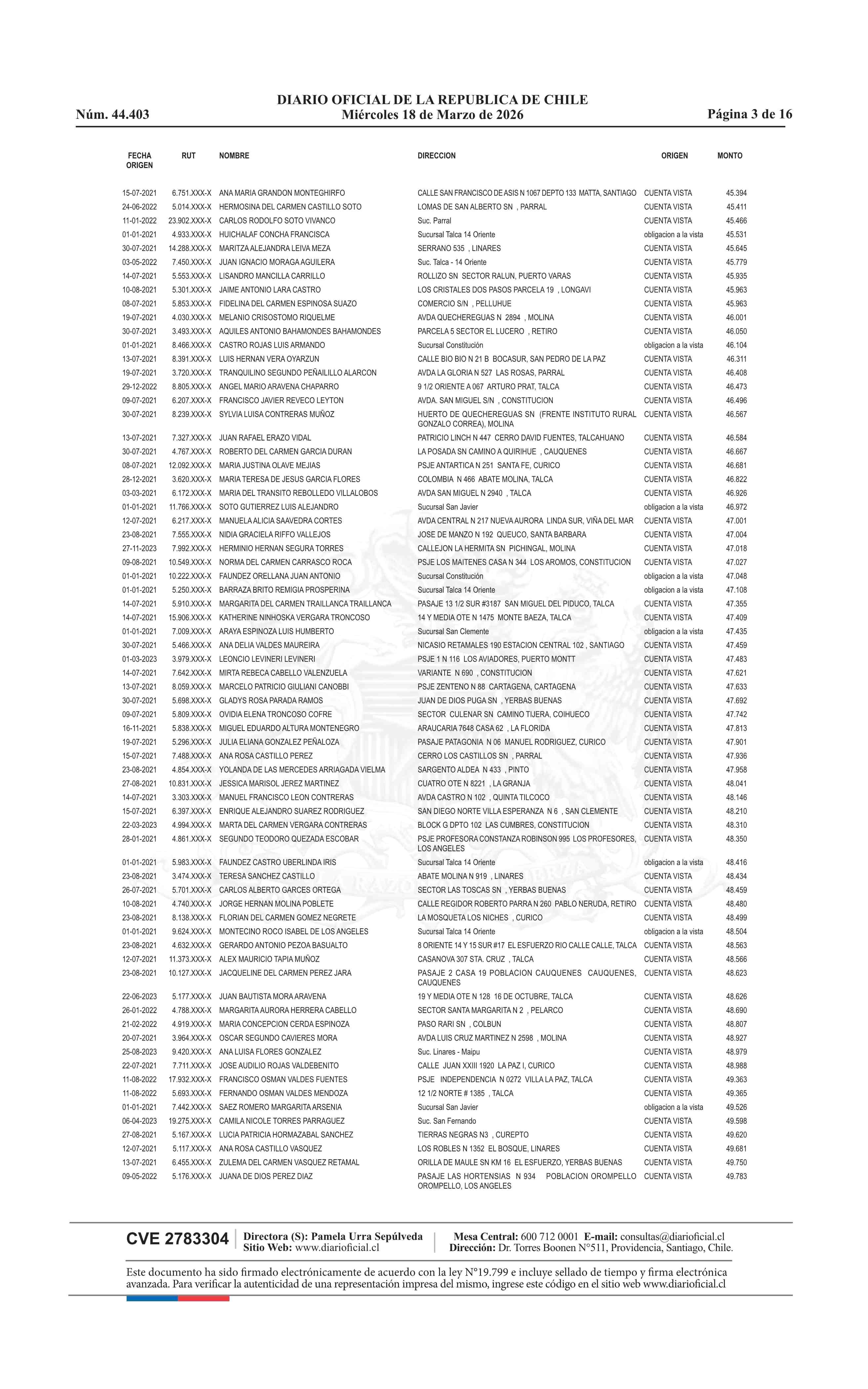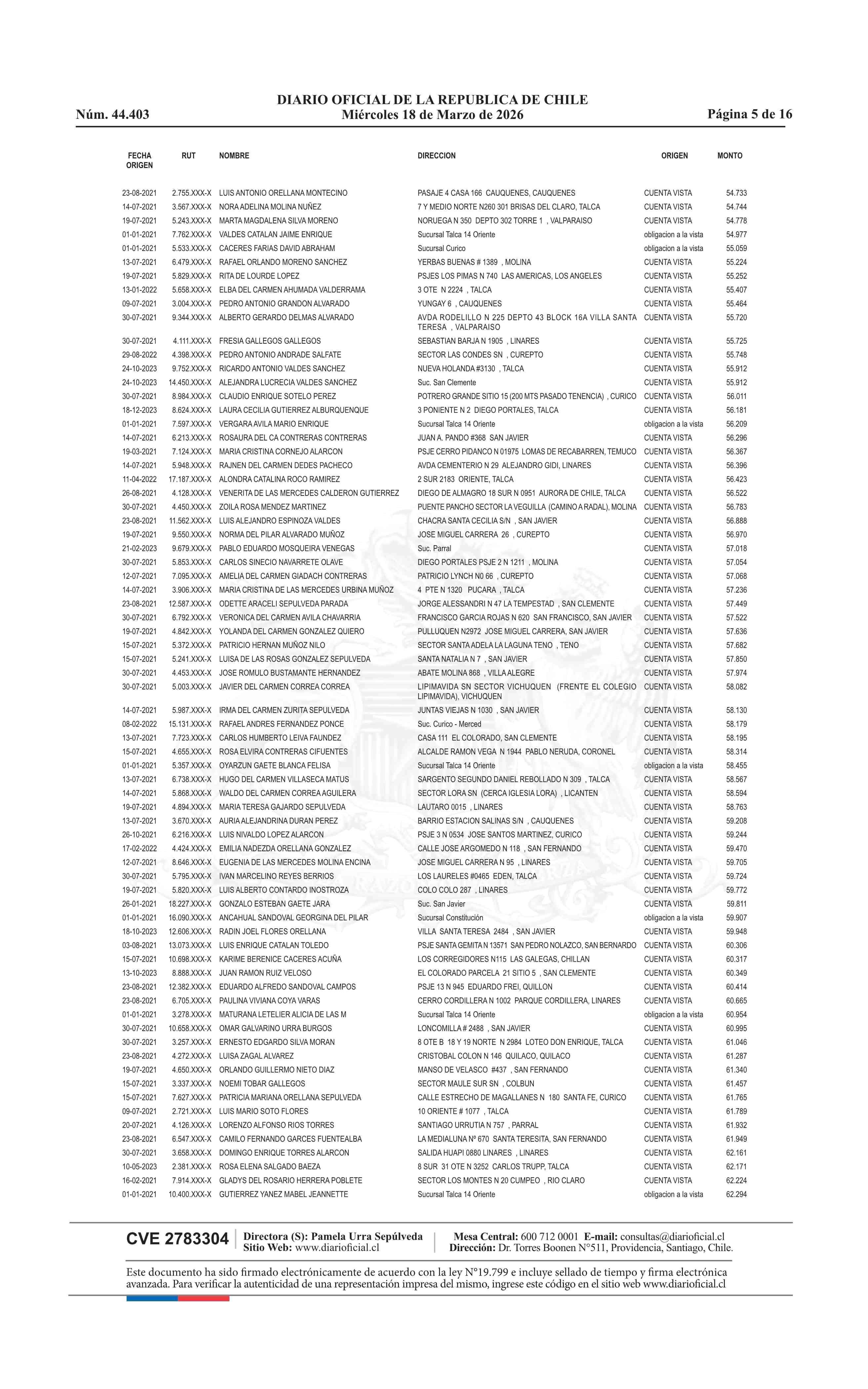 Fuente: Diario Oficial Edición Electrónica (Diario Oficial de Chile - 4 Avisos Destacados) Página(s): 60-75