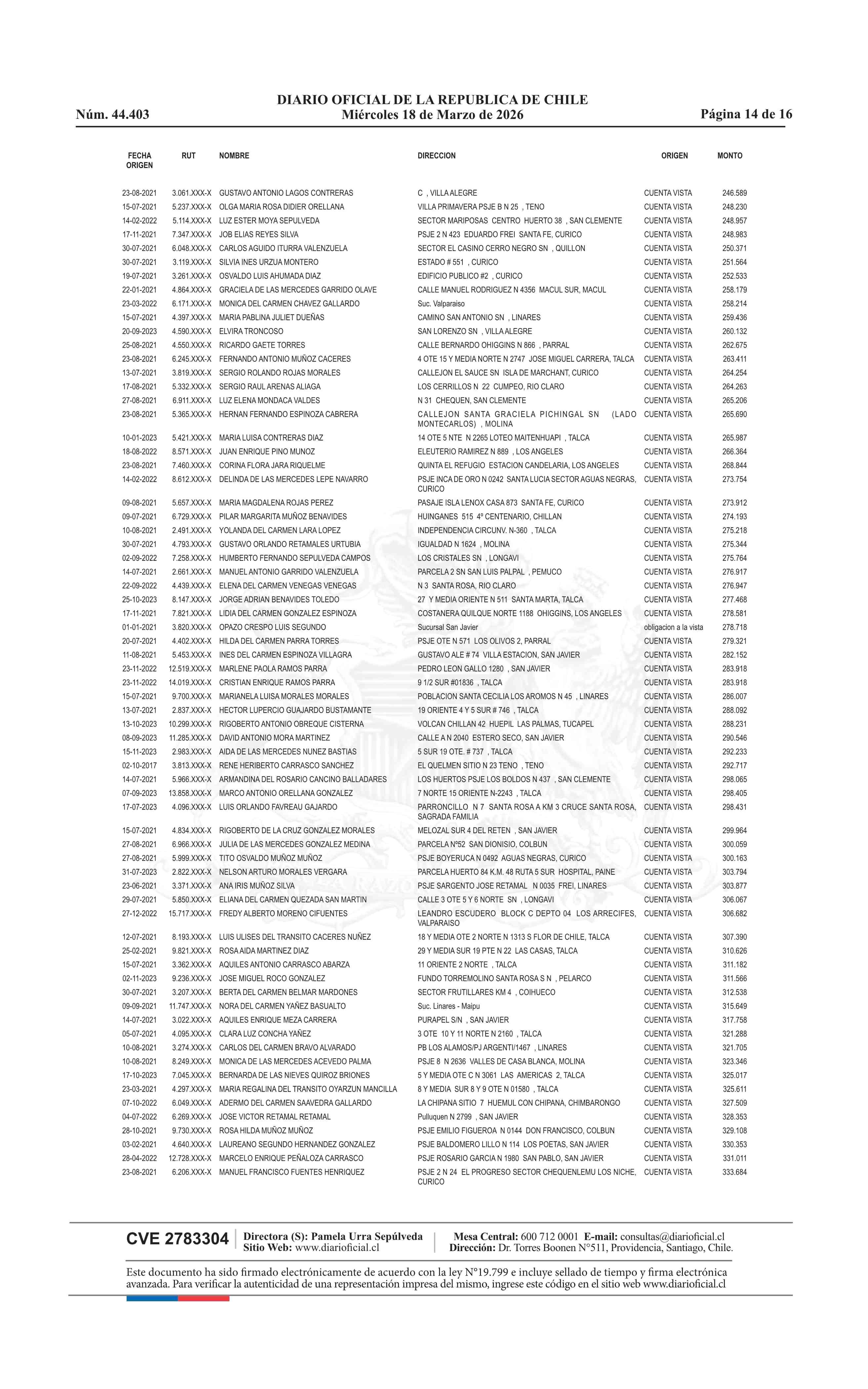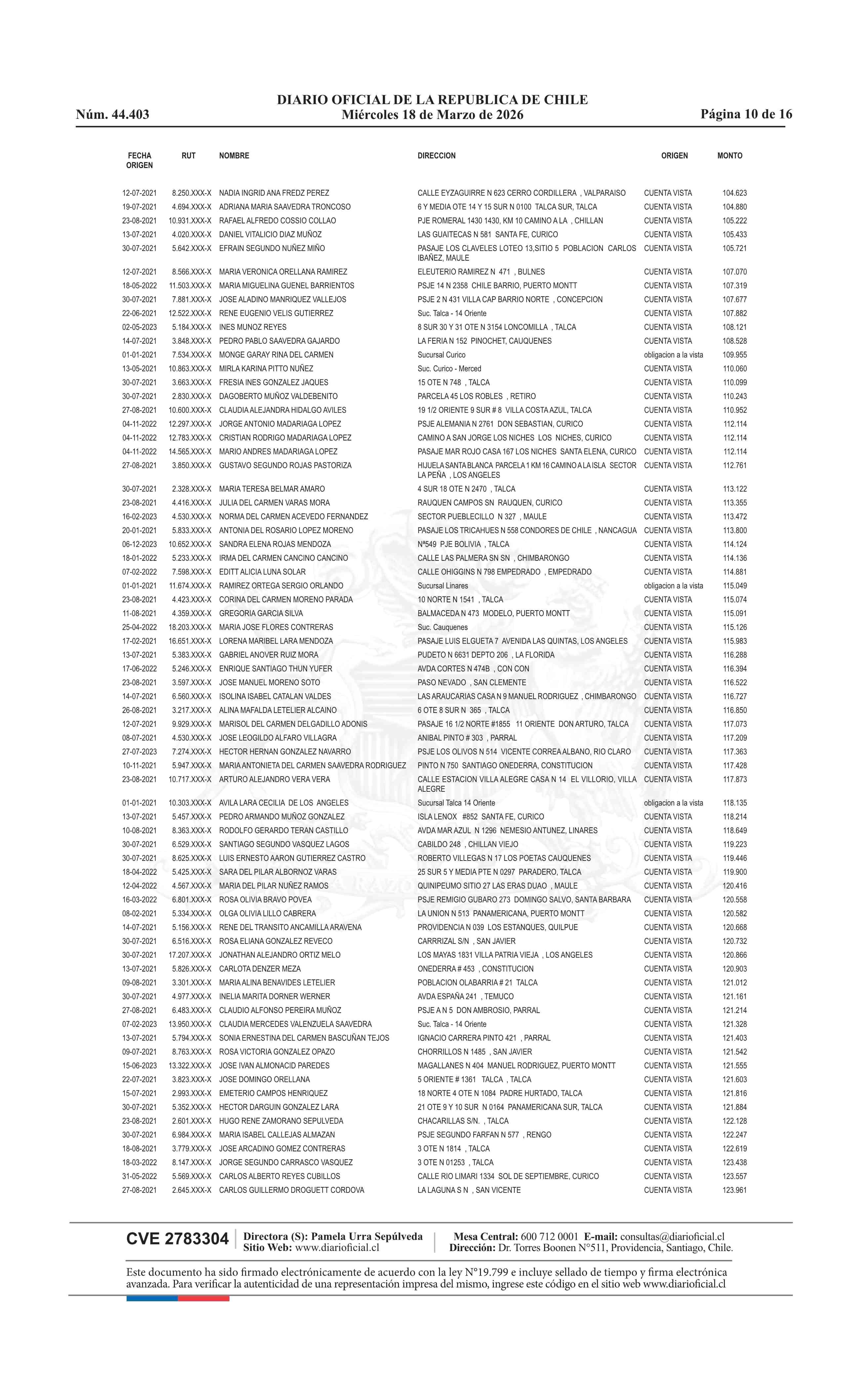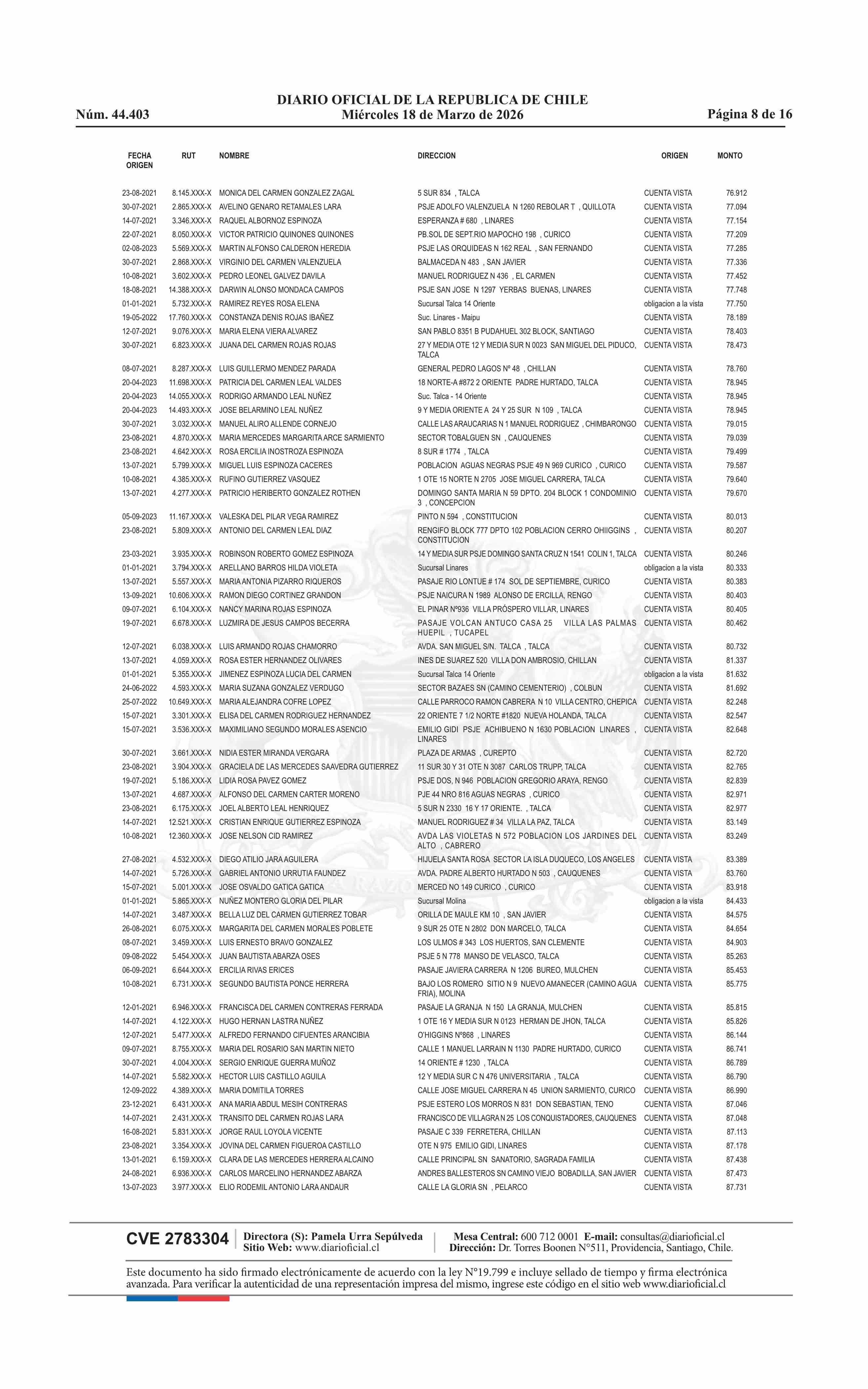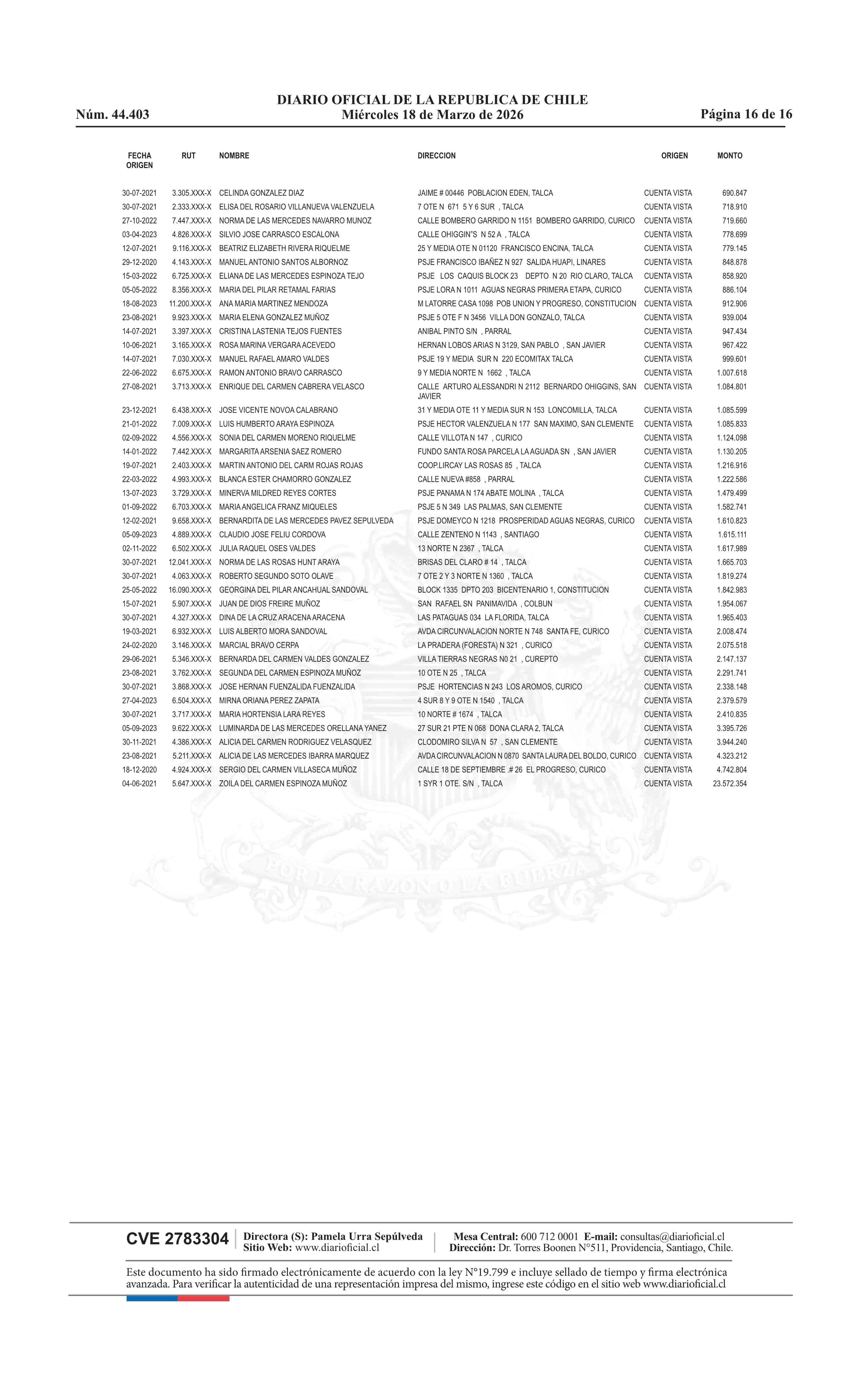 Fuente: Diario Oficial Edición Electrónica (Diario Oficial de Chile - 4 Avisos Destacados) Página(s): 60-75