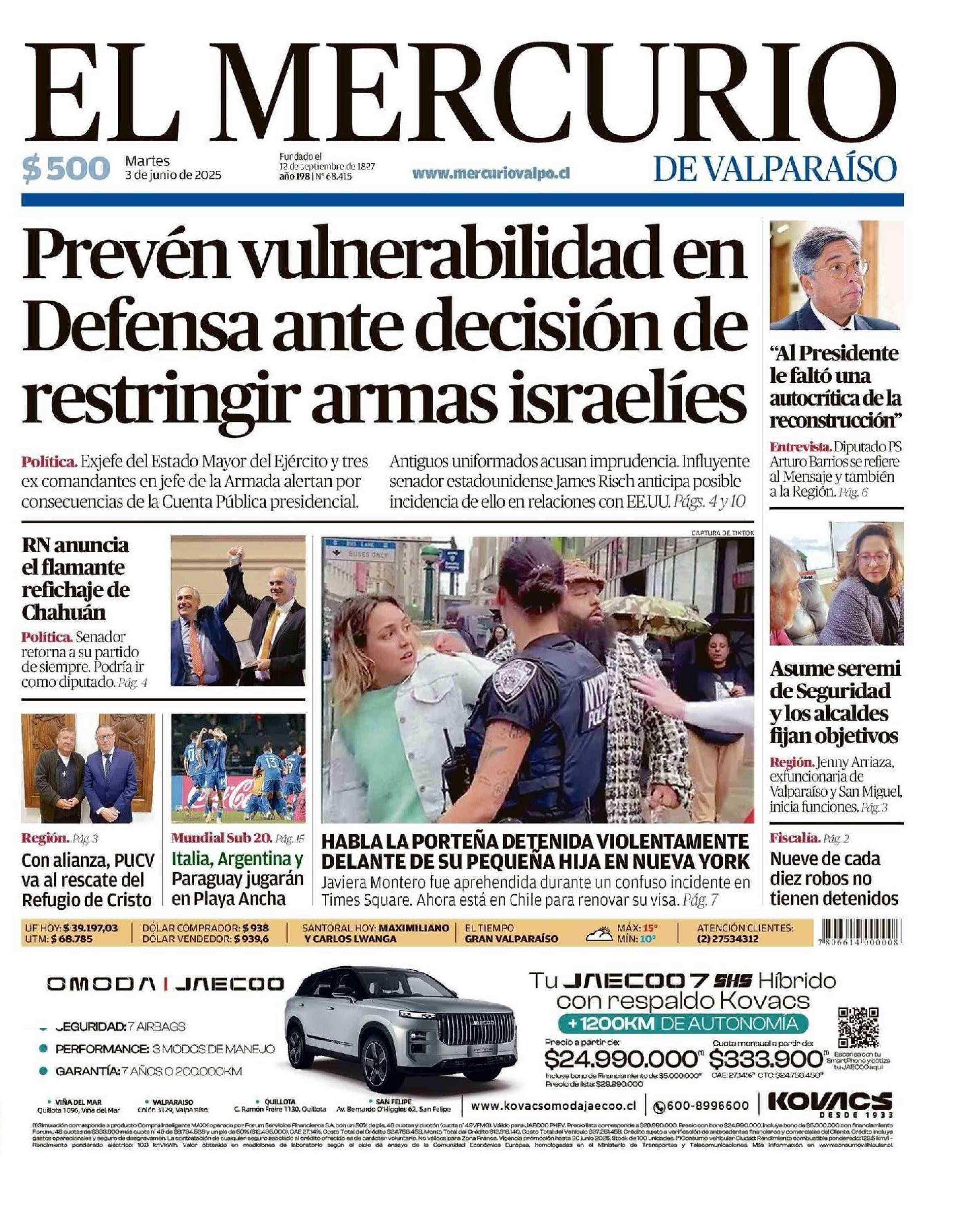 PORTADA EL MERCURIO DE VALPARAÍSO - CHILE 03-06-2025 El Mercurio de Valparaíso |
