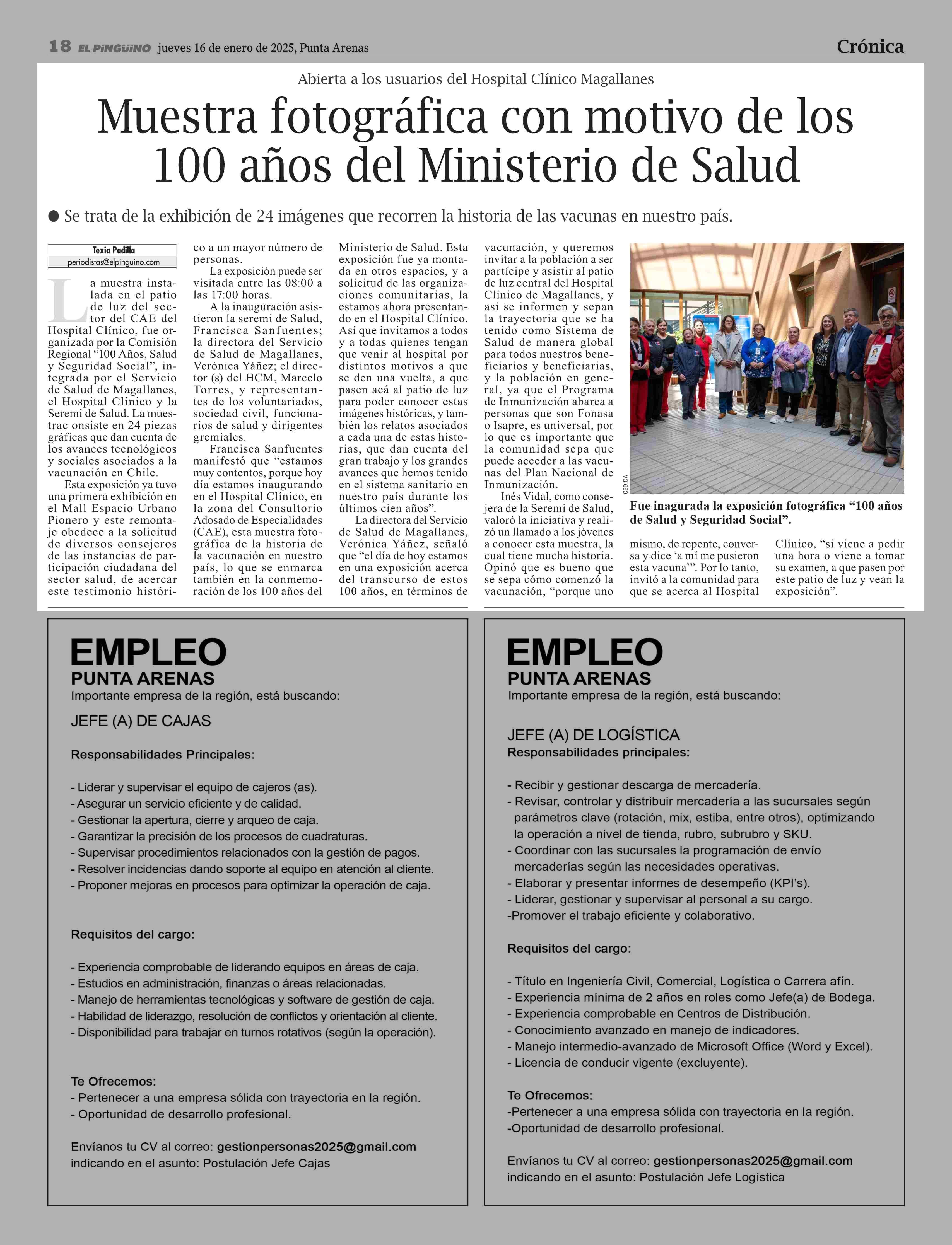 | Fecha: | 16-01-2025 | Sector: | Noticia general | Región: | Región de Magallanes y de la Antártica Chilena |