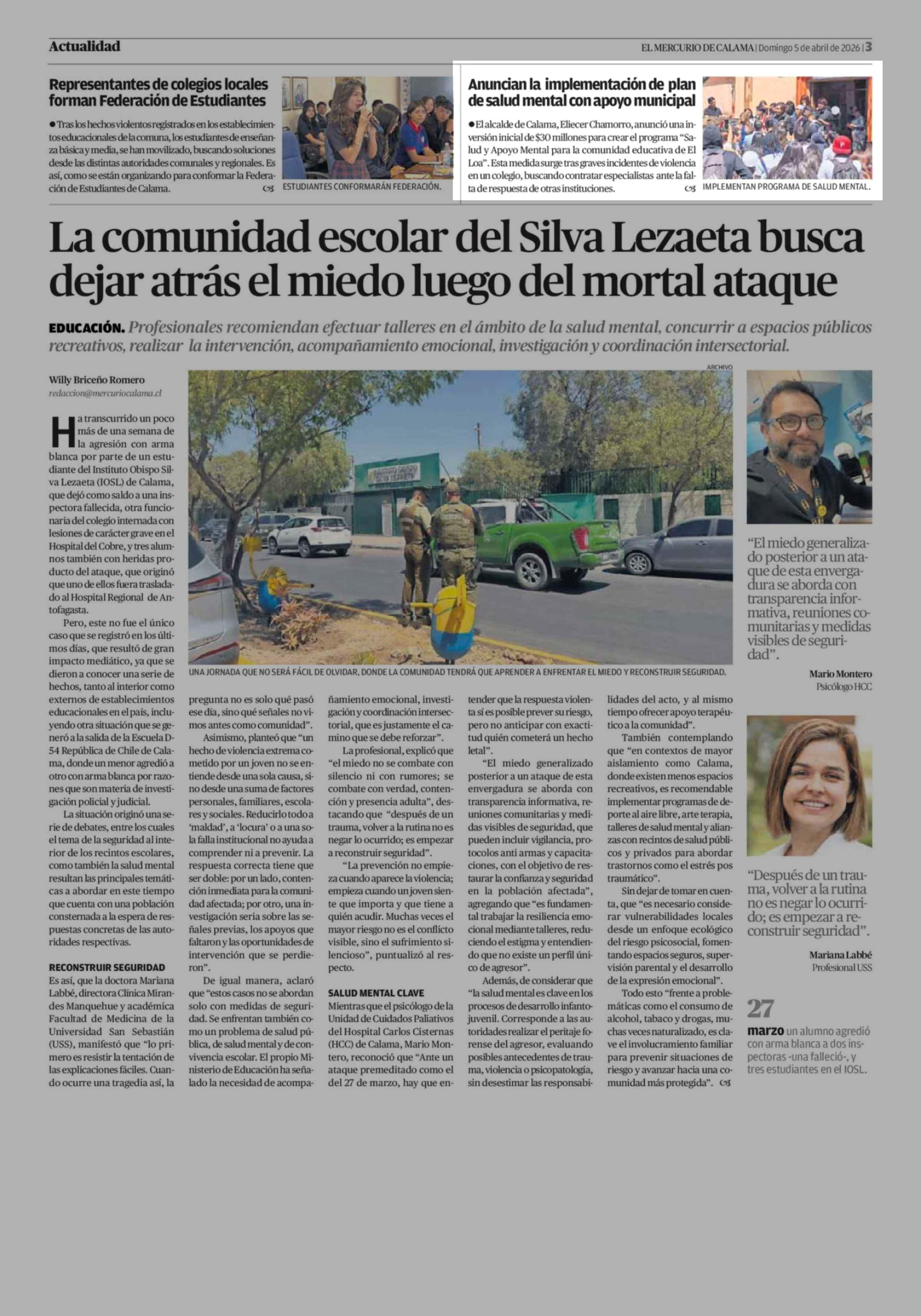 Anuncian la implementación de plan de salud mental con apoyo municipal 05-04-2026 El Mercurio de Calama |