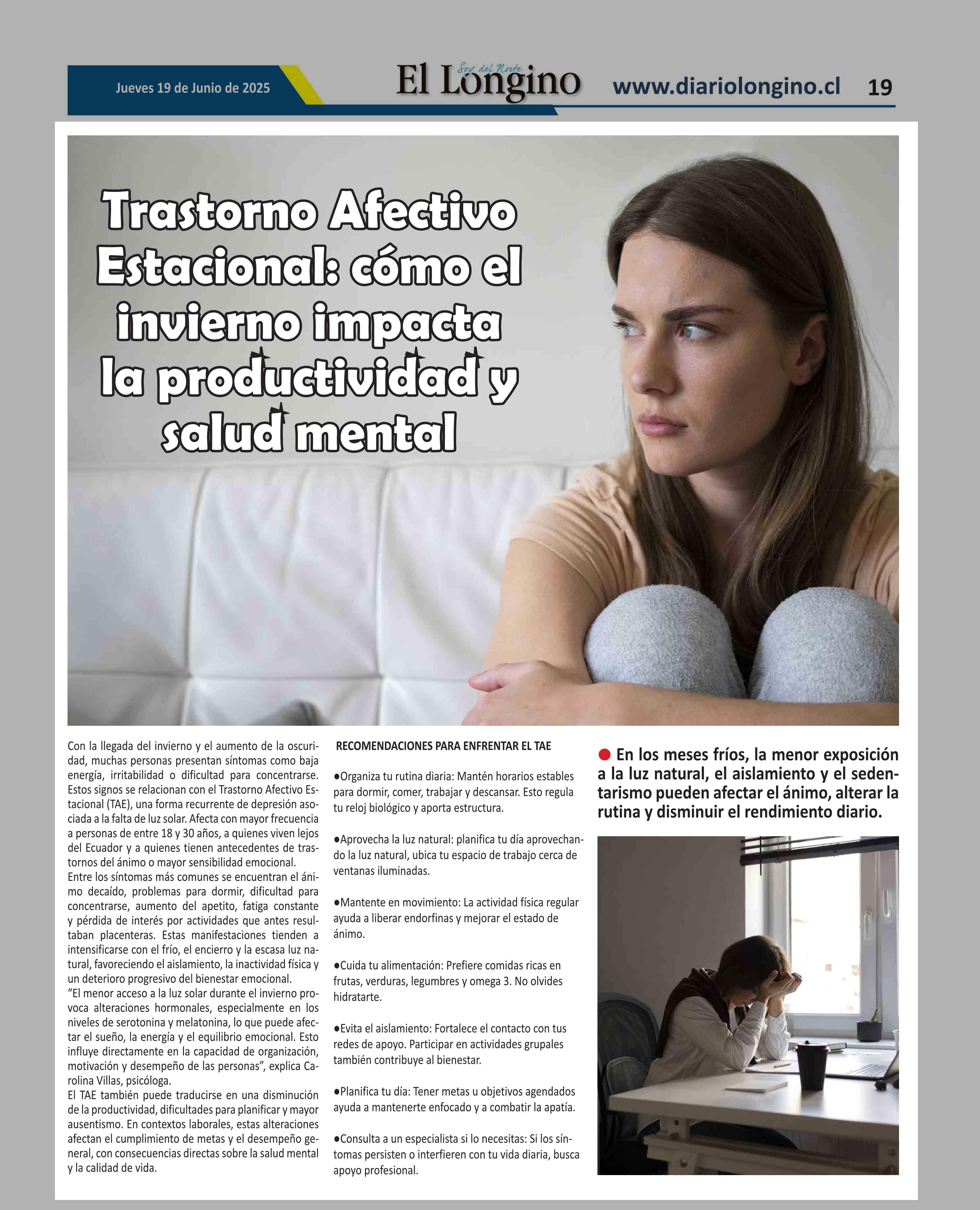 Trastorno Afectivo Trastorno Afectivo Estacional: cómo el Estacional: cómo el invierno impacta invierno impacta la productividad y la productividad y salud mental salud mental 19-06-2025 El Longino |