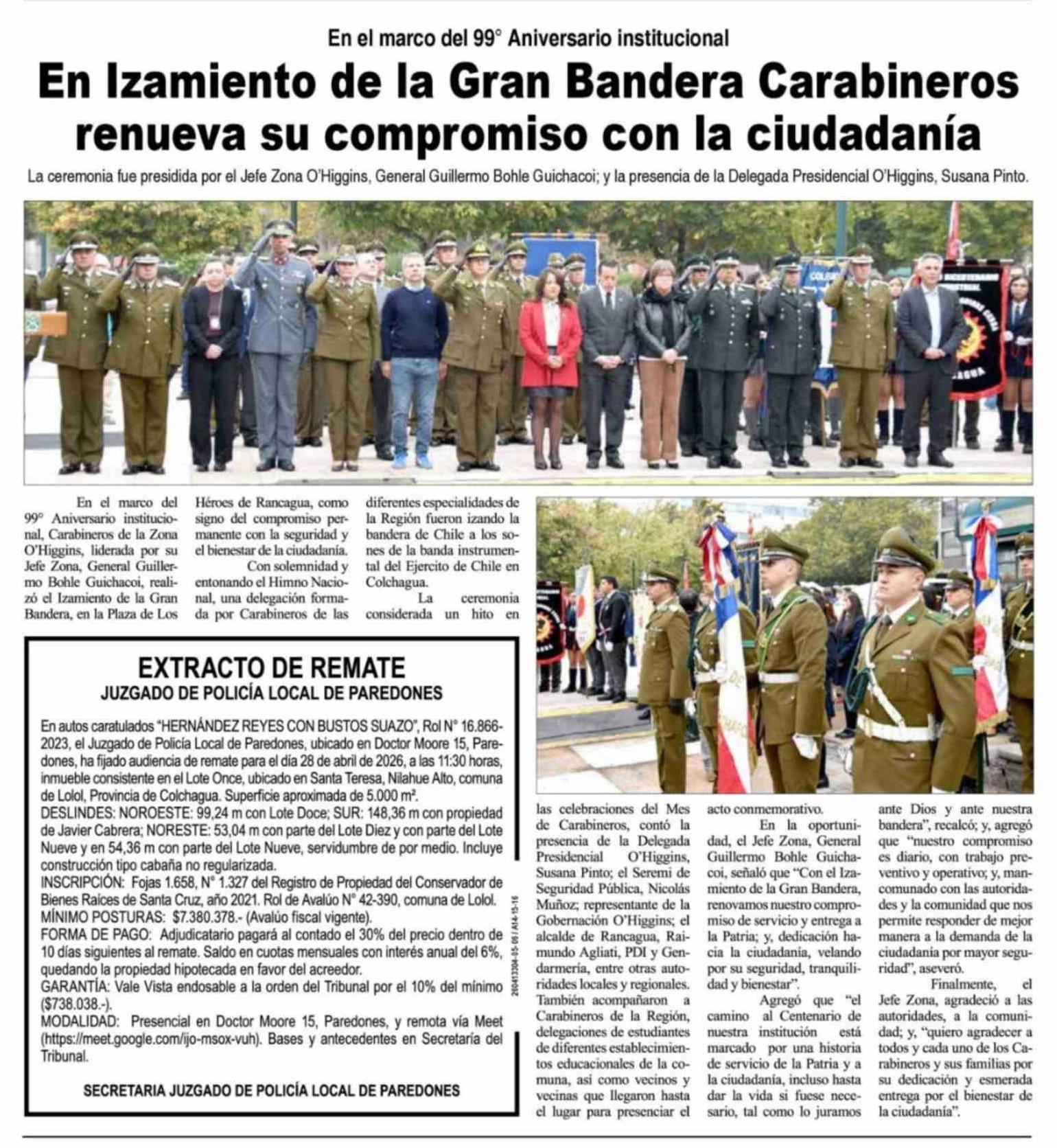 Fecha: 14-04-2026 Sector: Noticia general Región: Región del Libertador General Bernardo O'Higgins