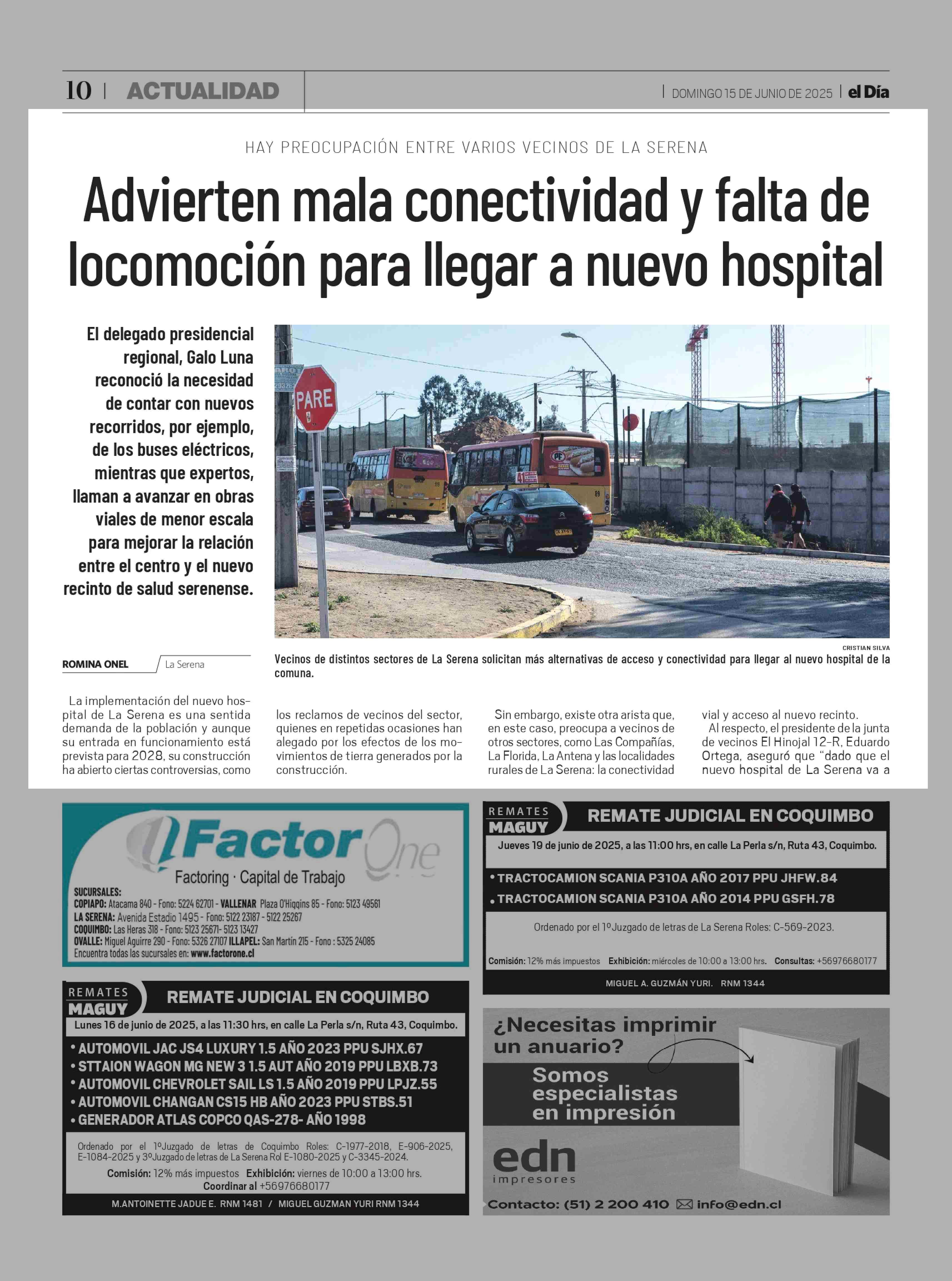 Advierten mala conectividad y falta de locomoción para llegar a nuevo hospital 15-06-2025 El Día |