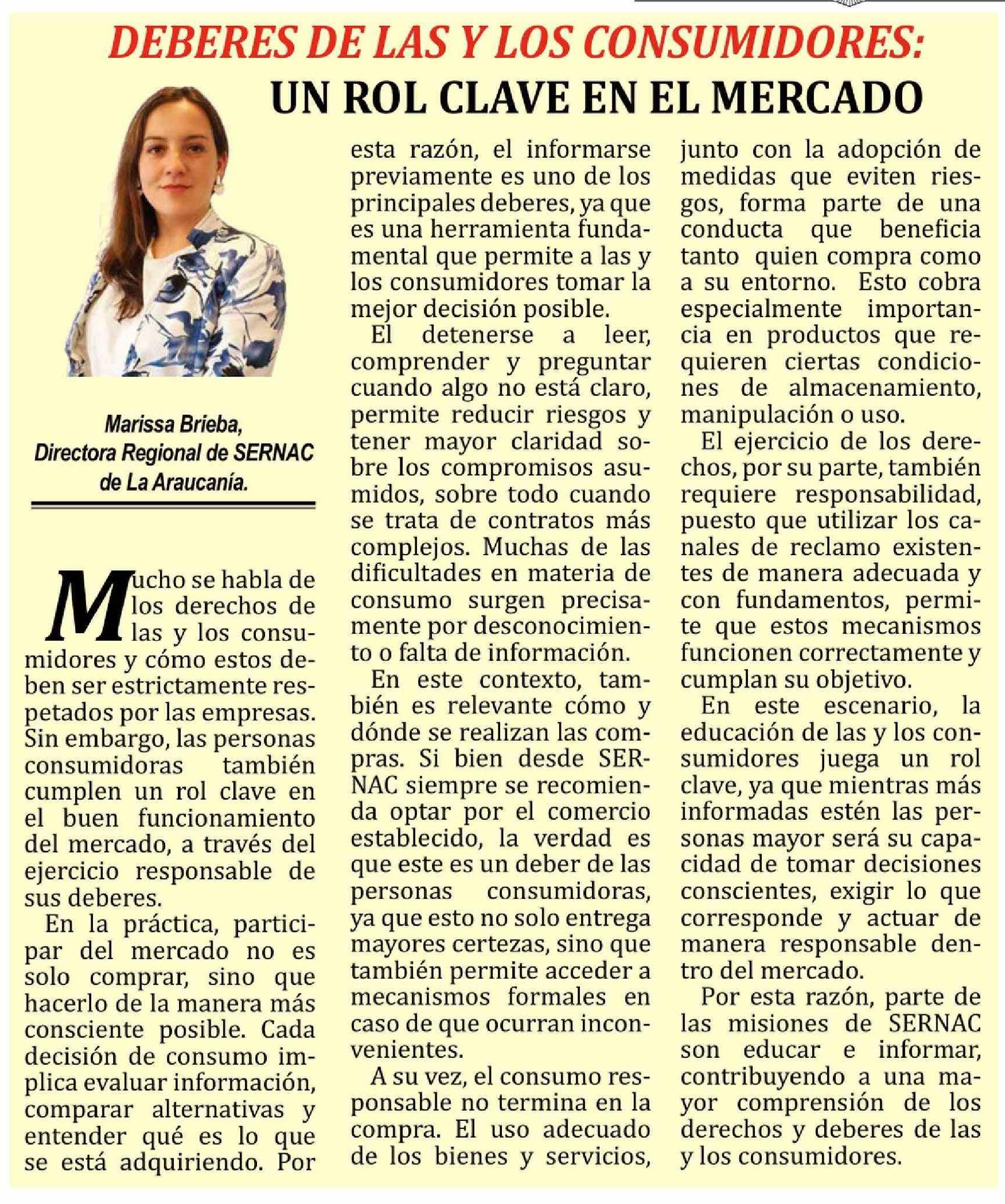 | Título: | Columnas de Opinión: DEBERES DE LAS Y LOS CONSUMIDORES: UN ROL CLAVE EN EL MERCADO |