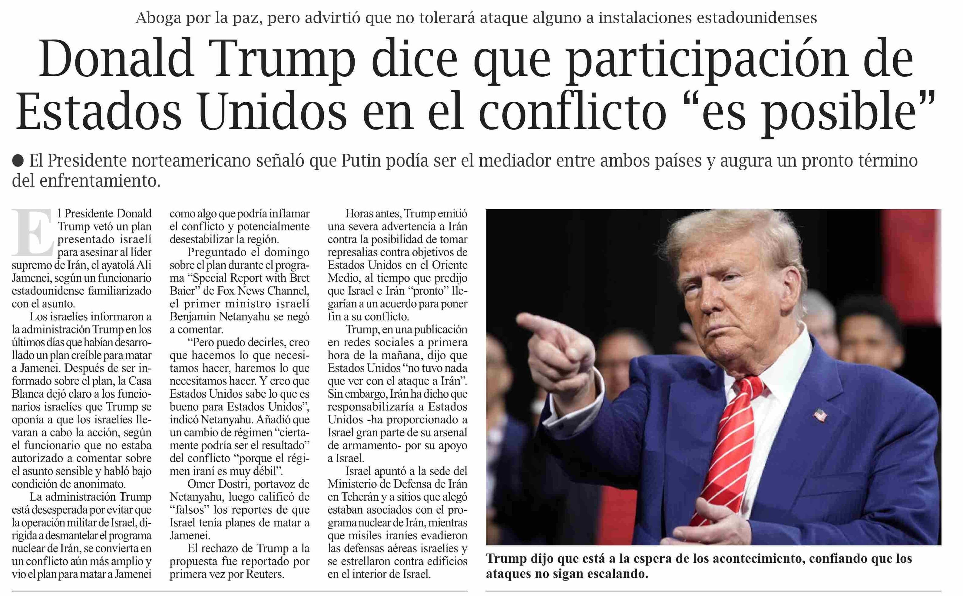 Donald Trump dice que participación de Estados Unidos en el conflicto “es posible” 16-06-2025 El Pingüino |