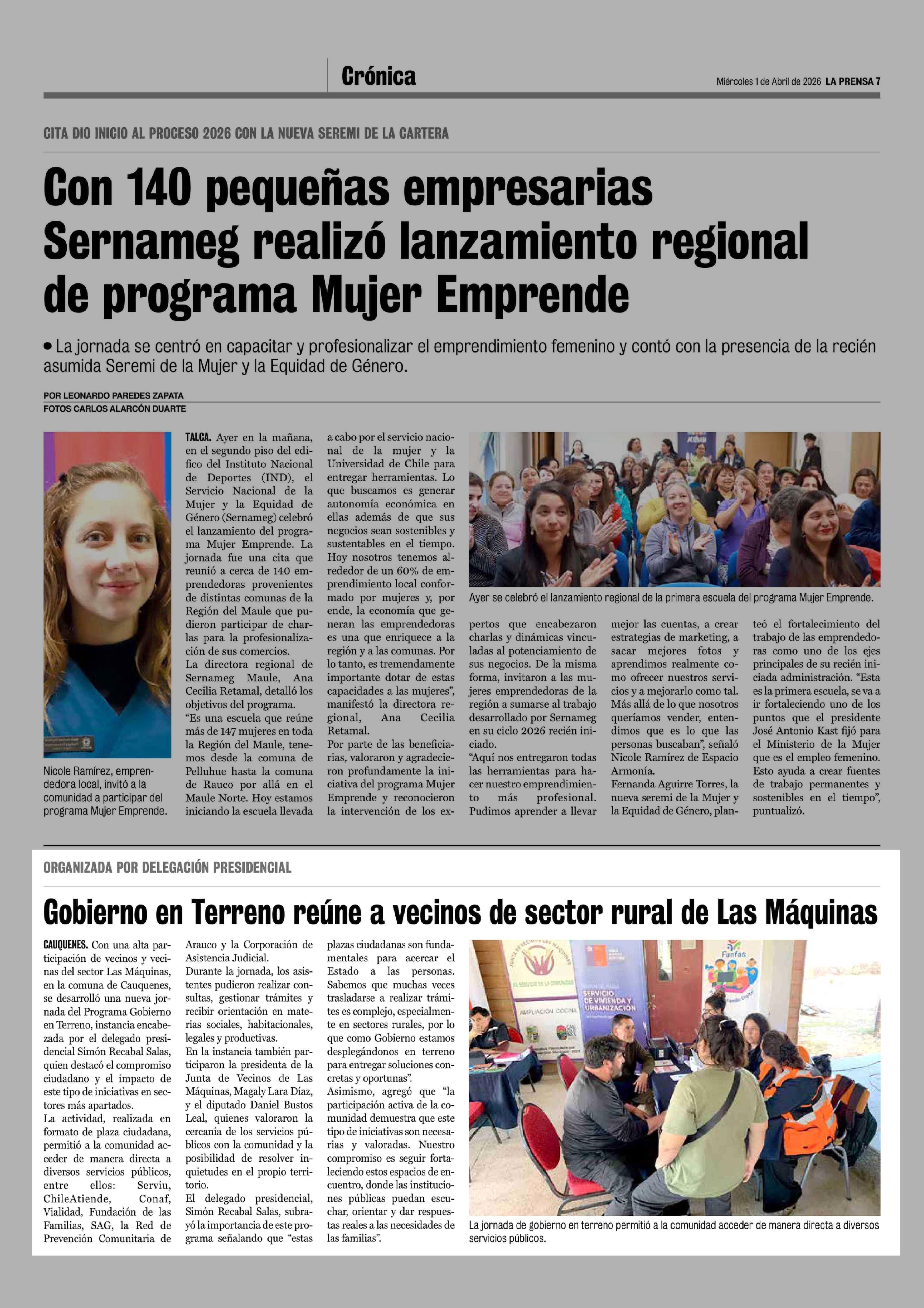 | Fecha: | 01-04-2026 | Sector: | Noticia general | Región: | Región del Maule |