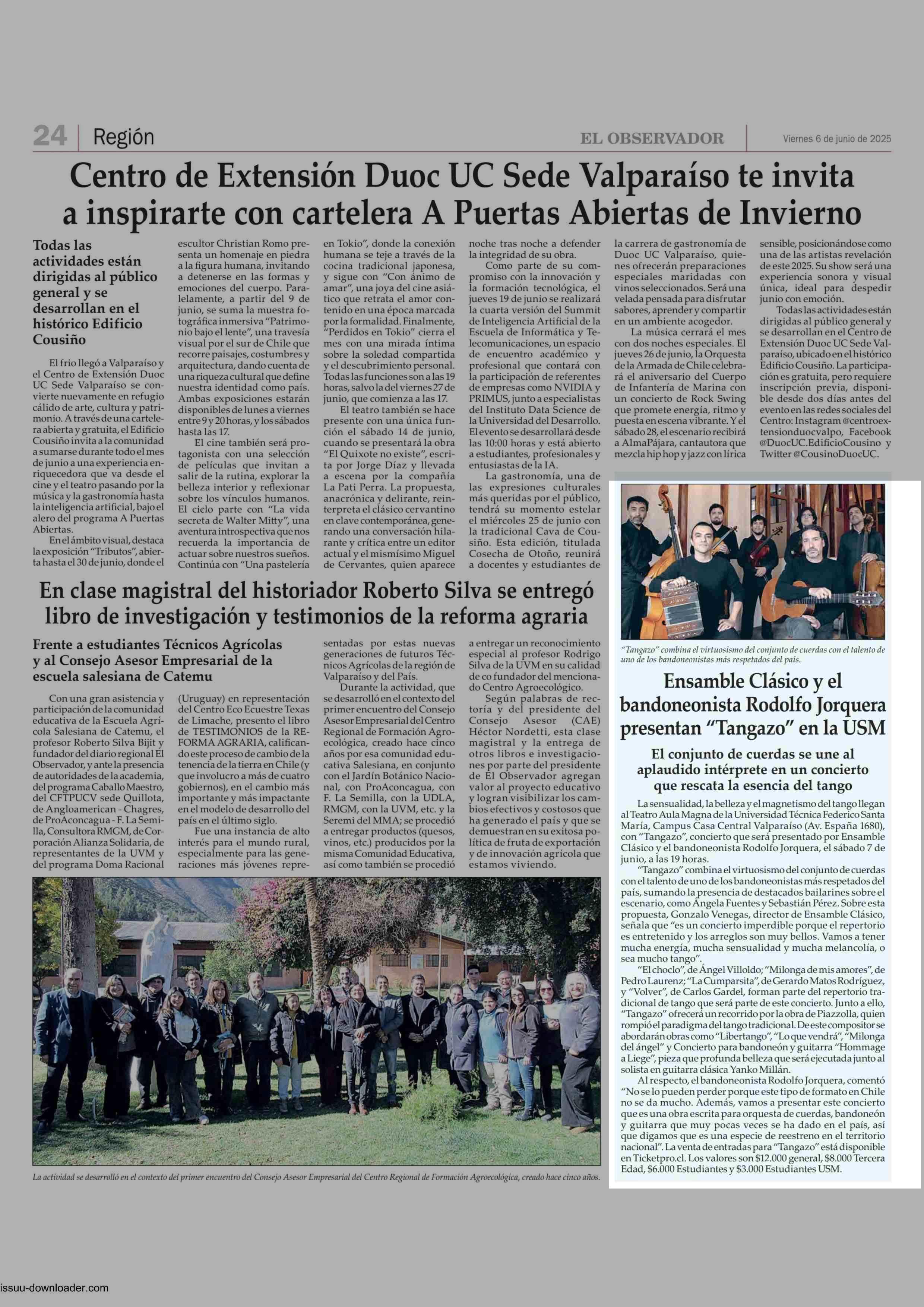 Ensamble Clásico y el bandoneonista Rodolfo Jorquera presentan la USM 06-06-2025 El Observador |