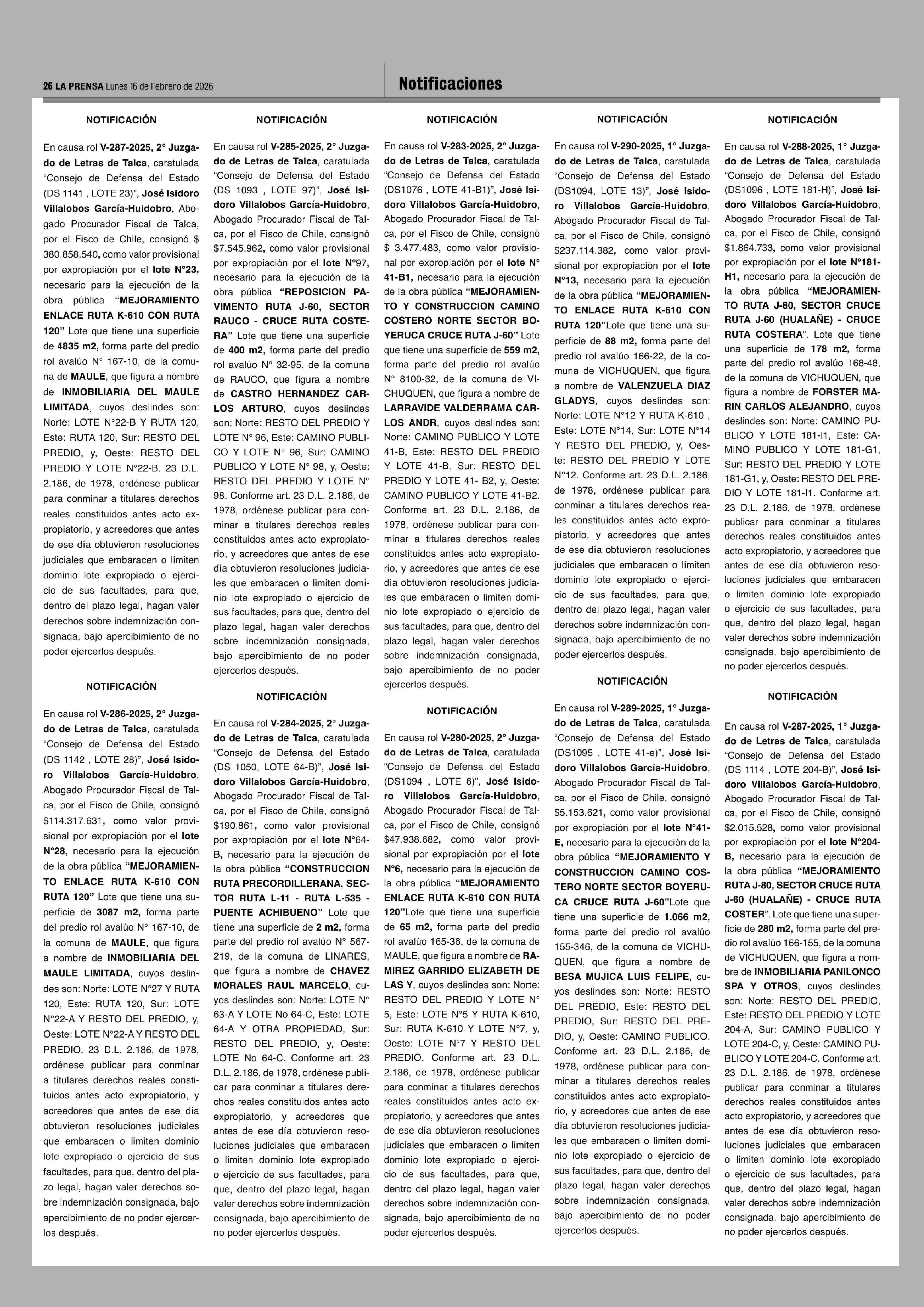 16-02-2026 La Prensa de Curicó