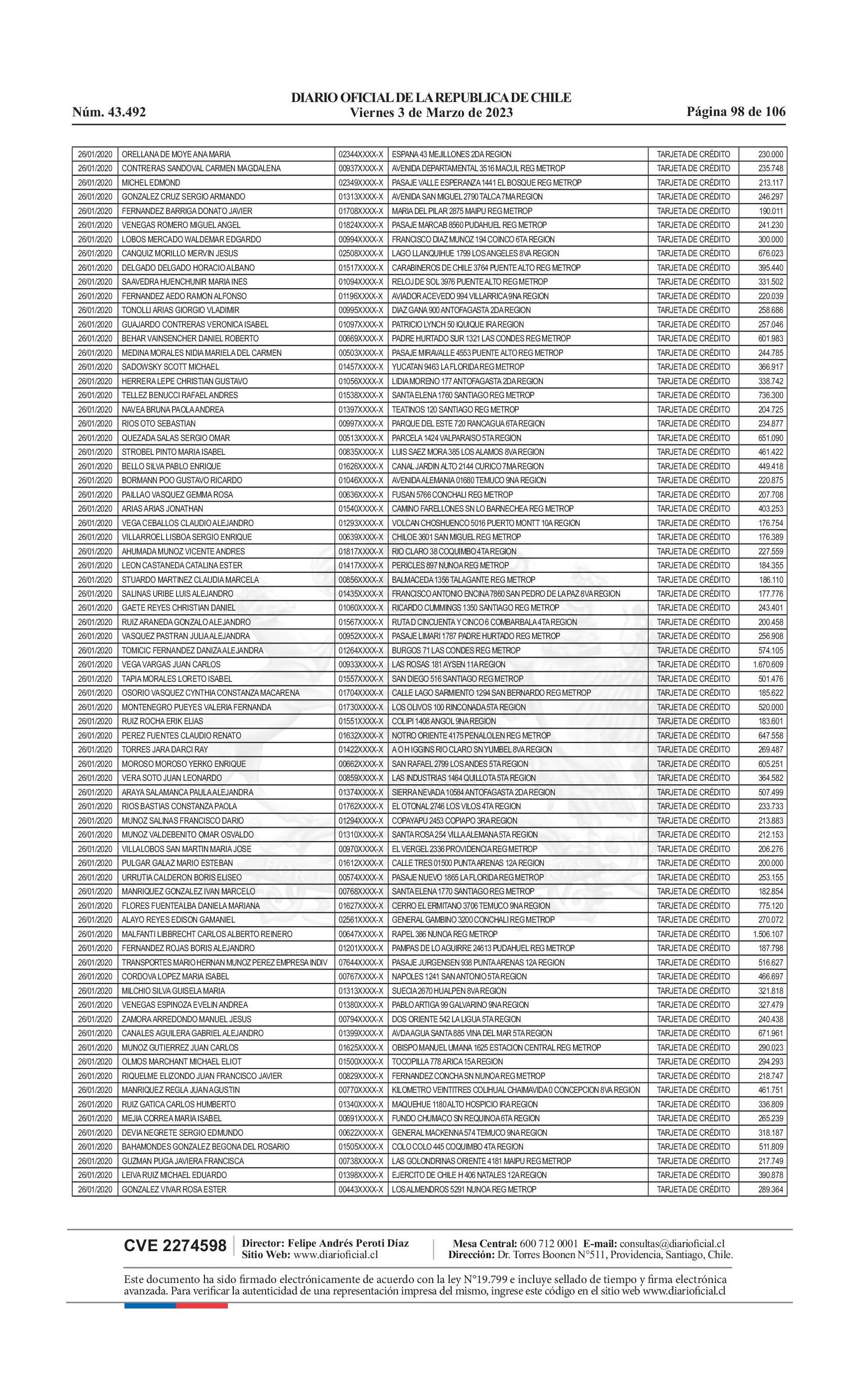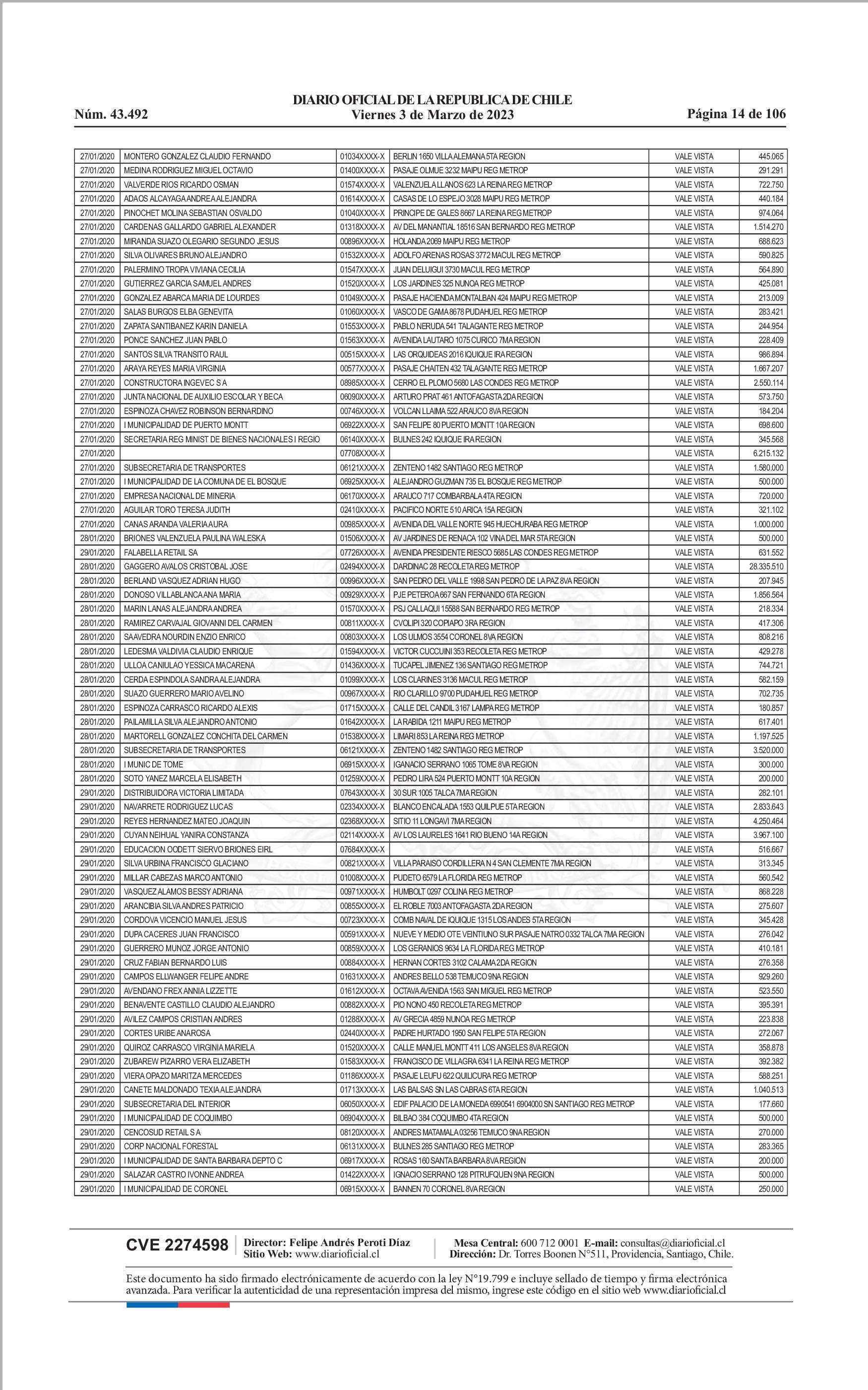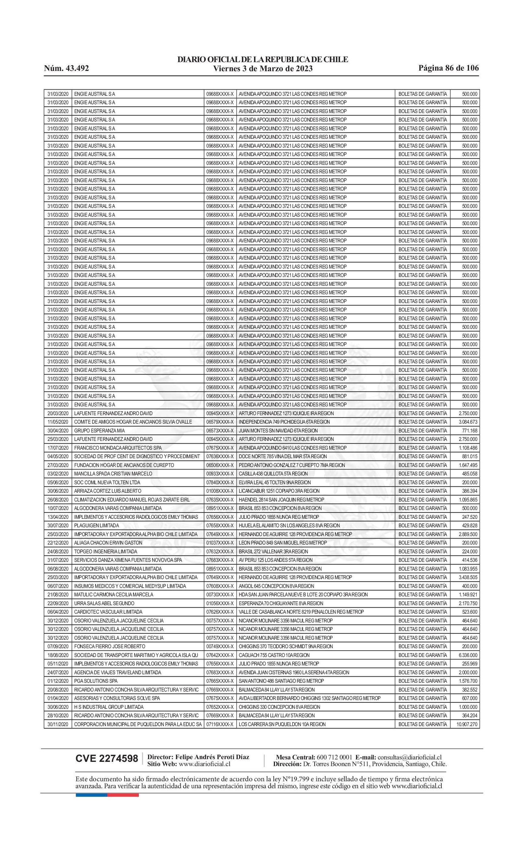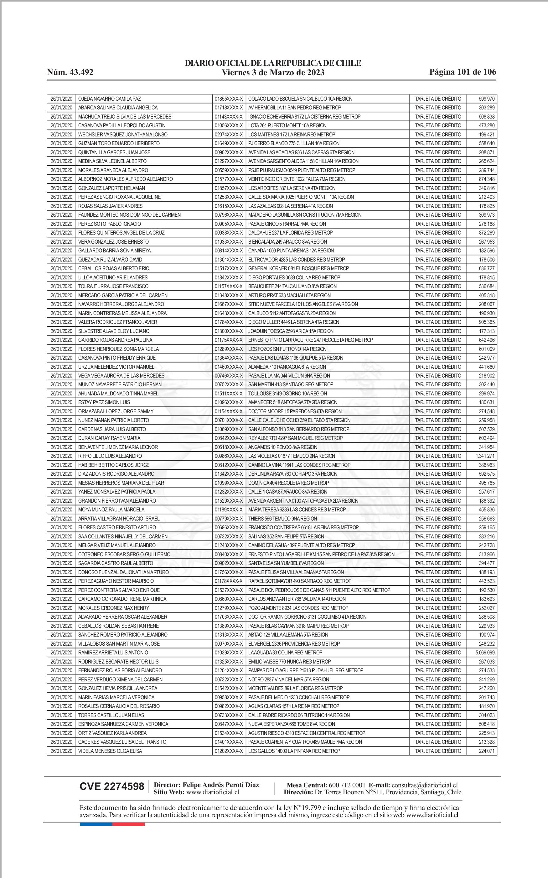 | Fuente: | Diario Oficial Edición Electrónica (Diario Oficial - Otras Secciones (Stgo - Chile)) | Página(s): | 10-115 |