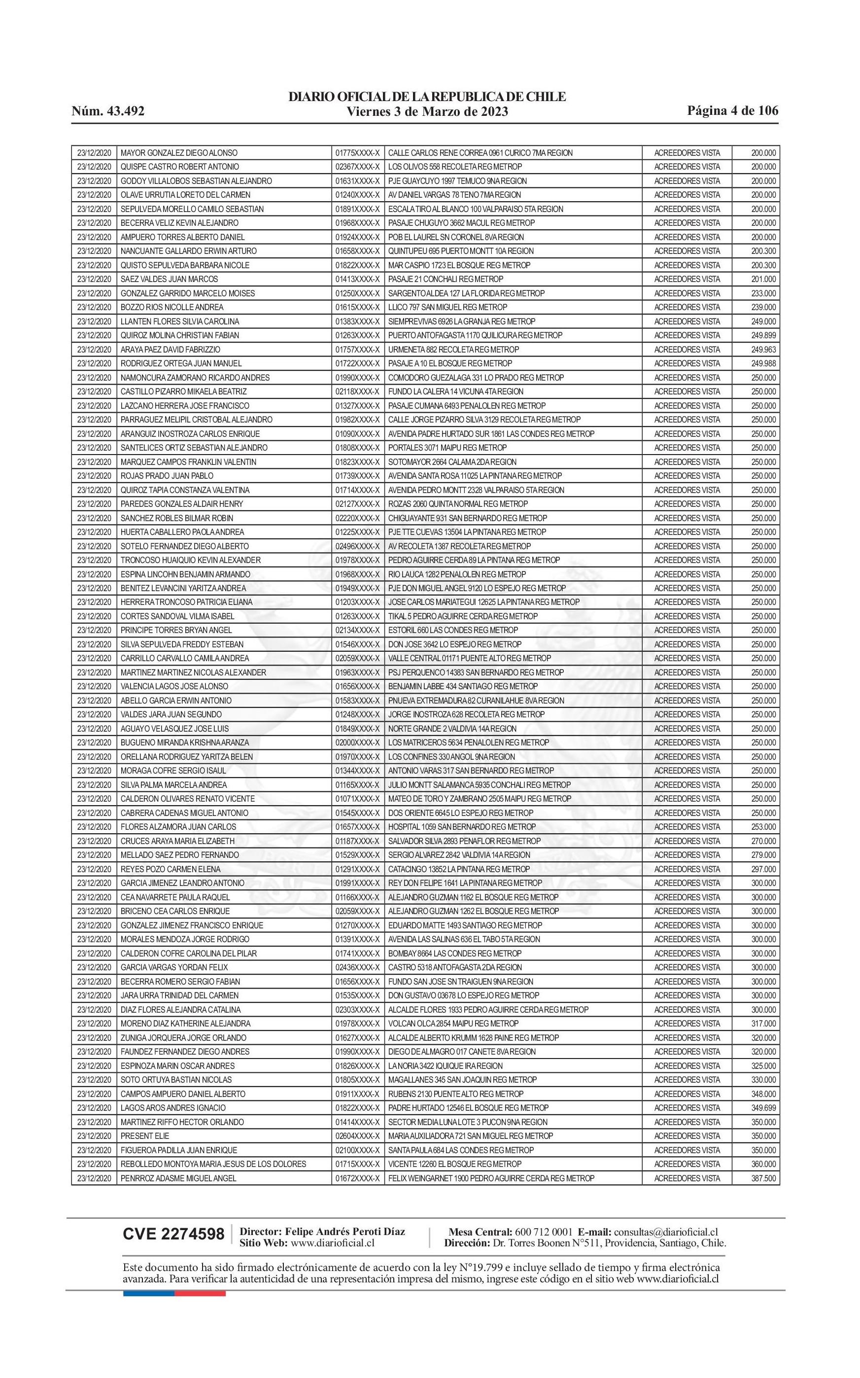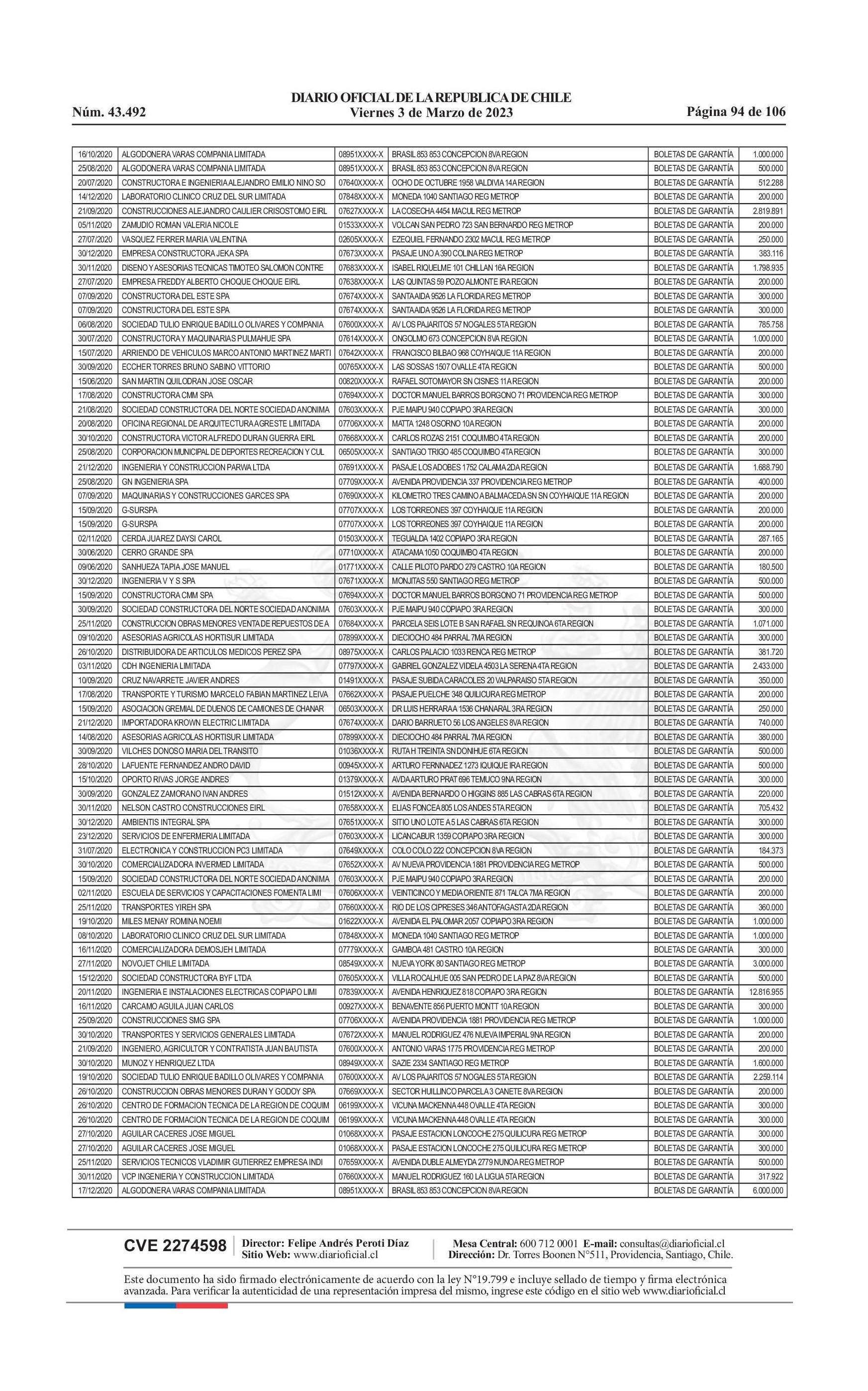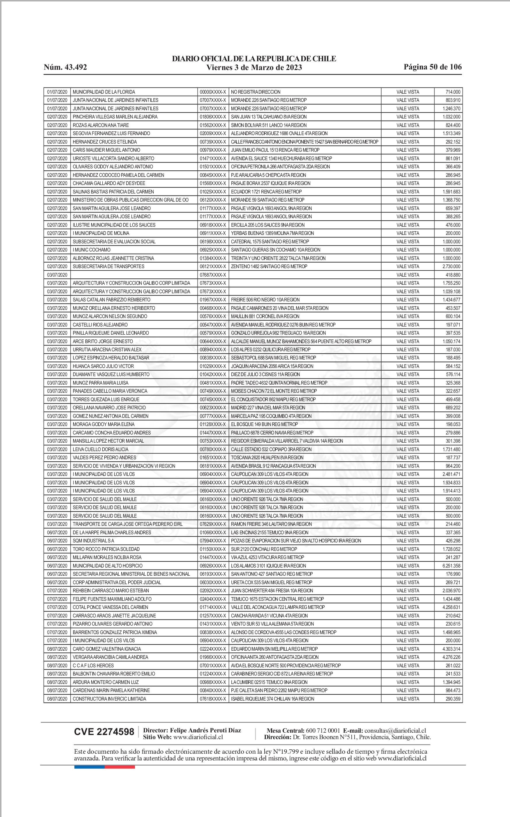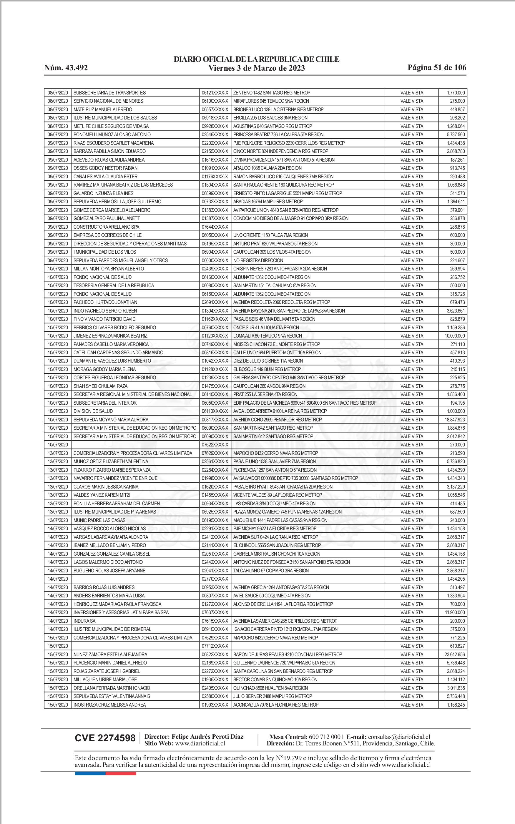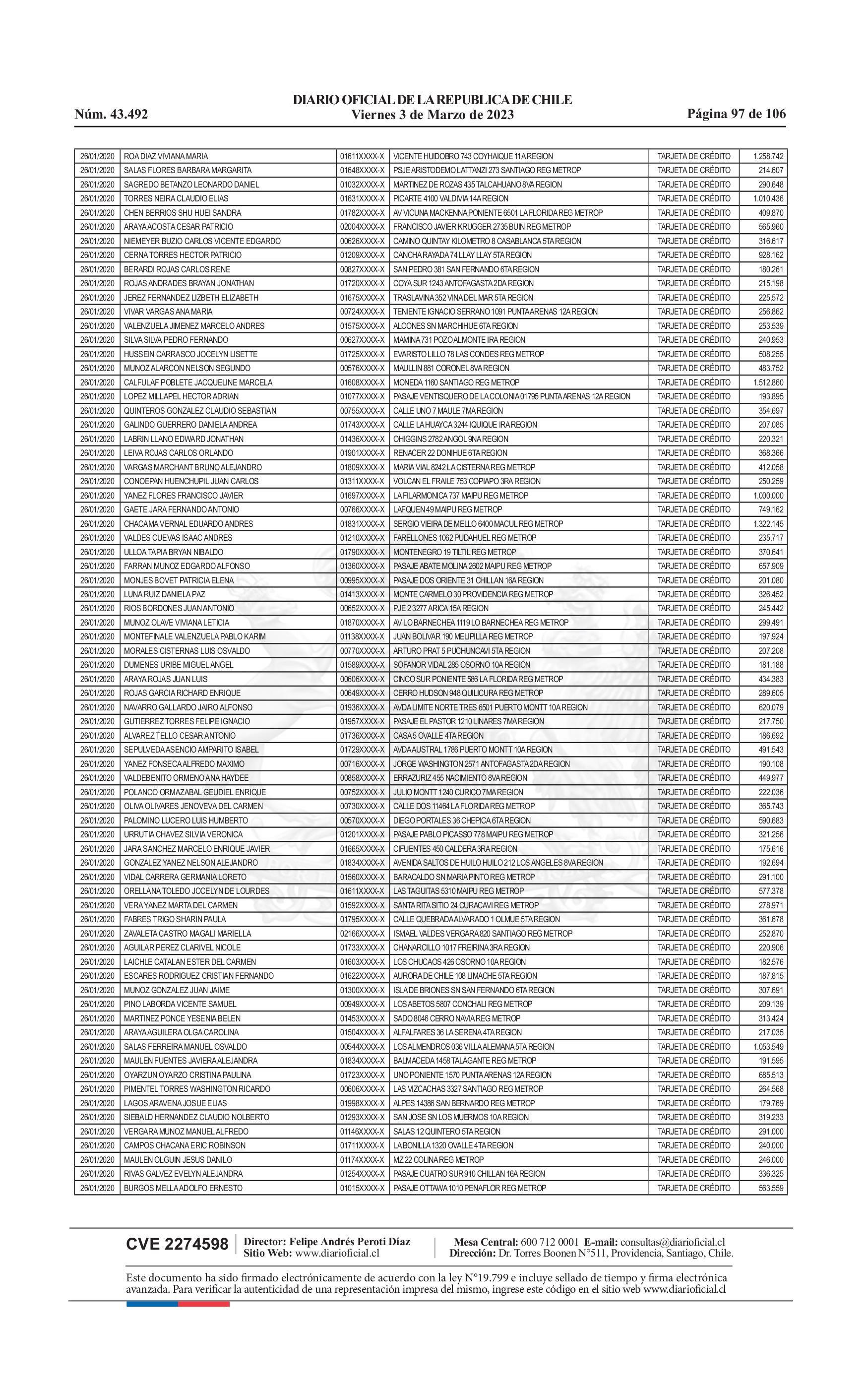 | Fuente: | Diario Oficial Edición Electrónica (Diario Oficial - Otras Secciones (Stgo - Chile)) | Página(s): | 10-115 |