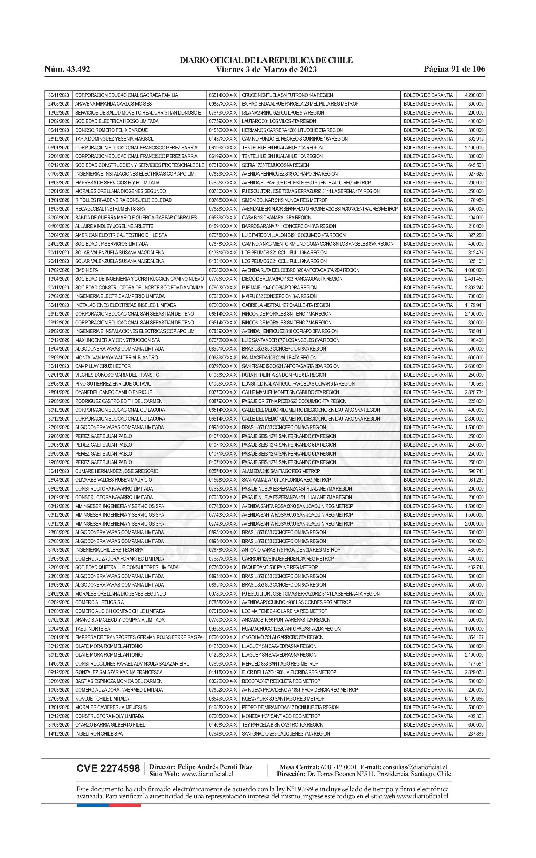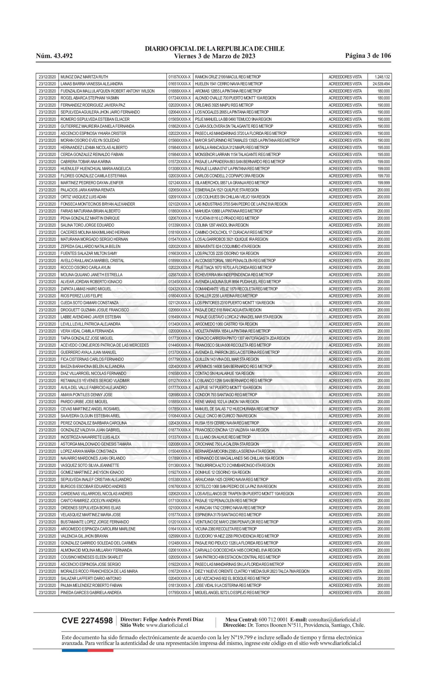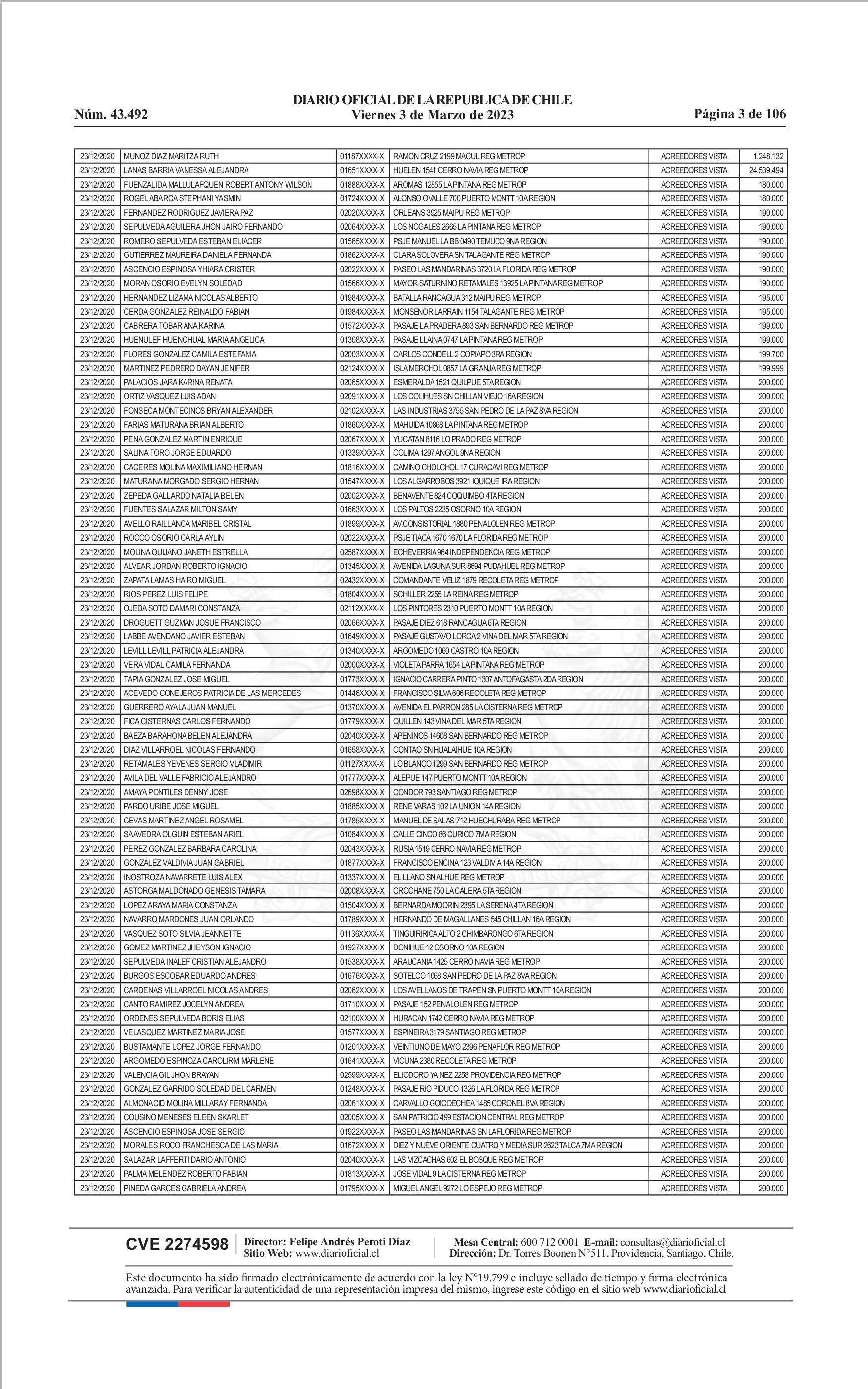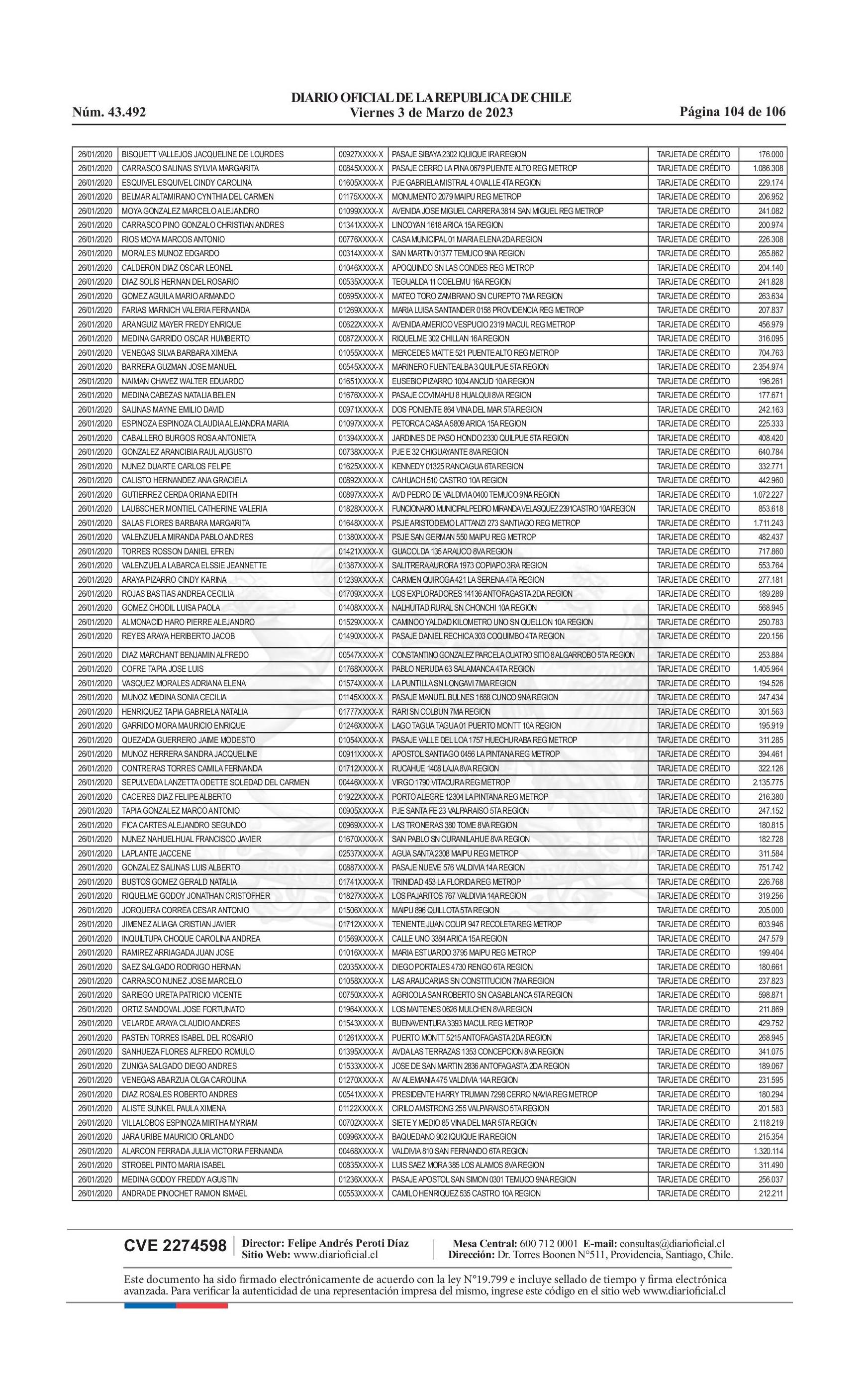 | Fuente: | Diario Oficial Edición Electrónica (Diario Oficial - Otras Secciones (Stgo - Chile)) | Página(s): | 10-115 |