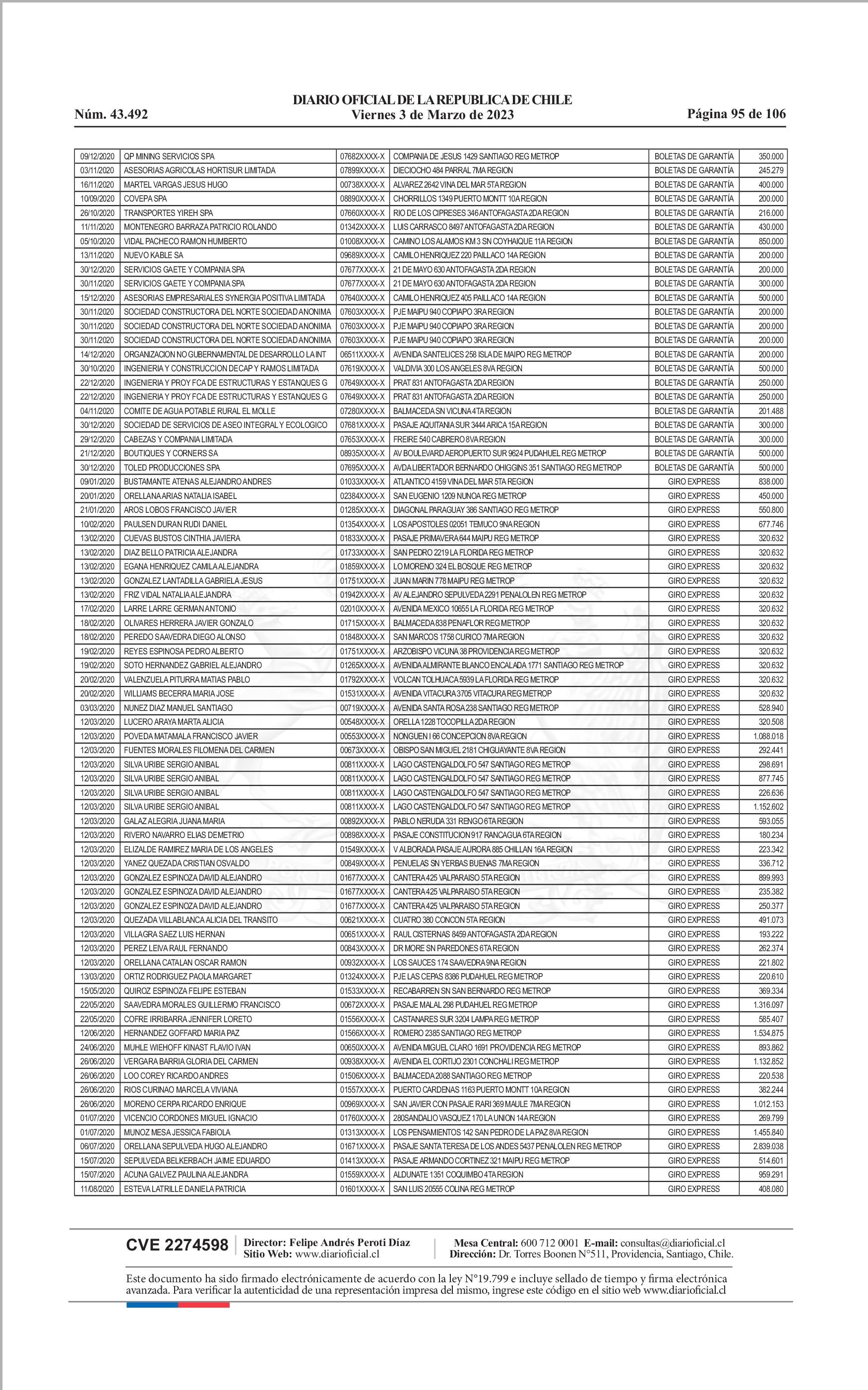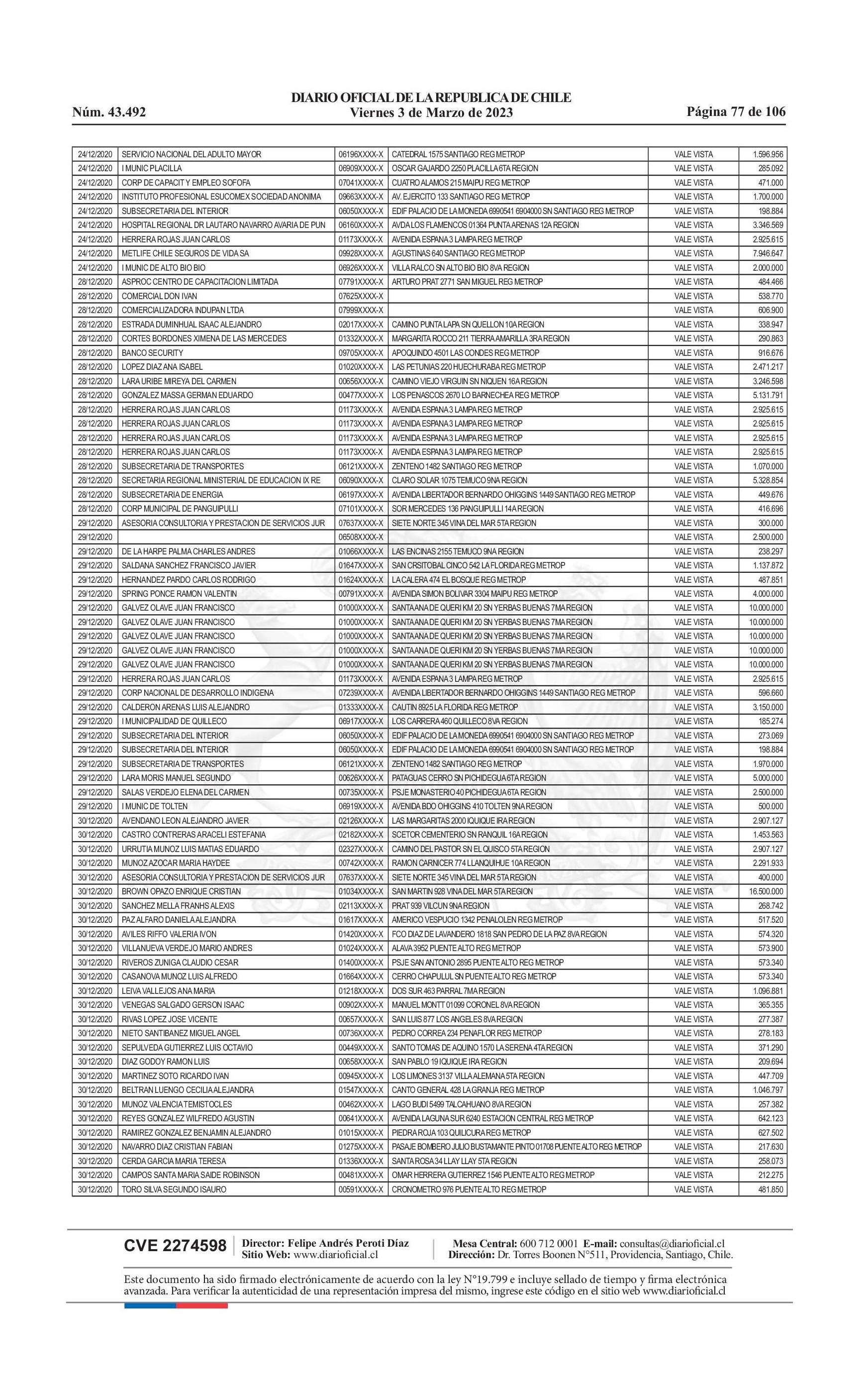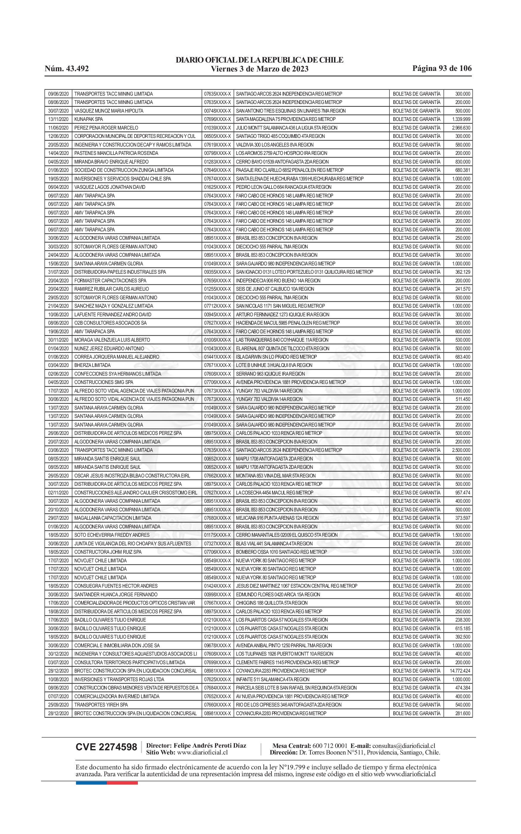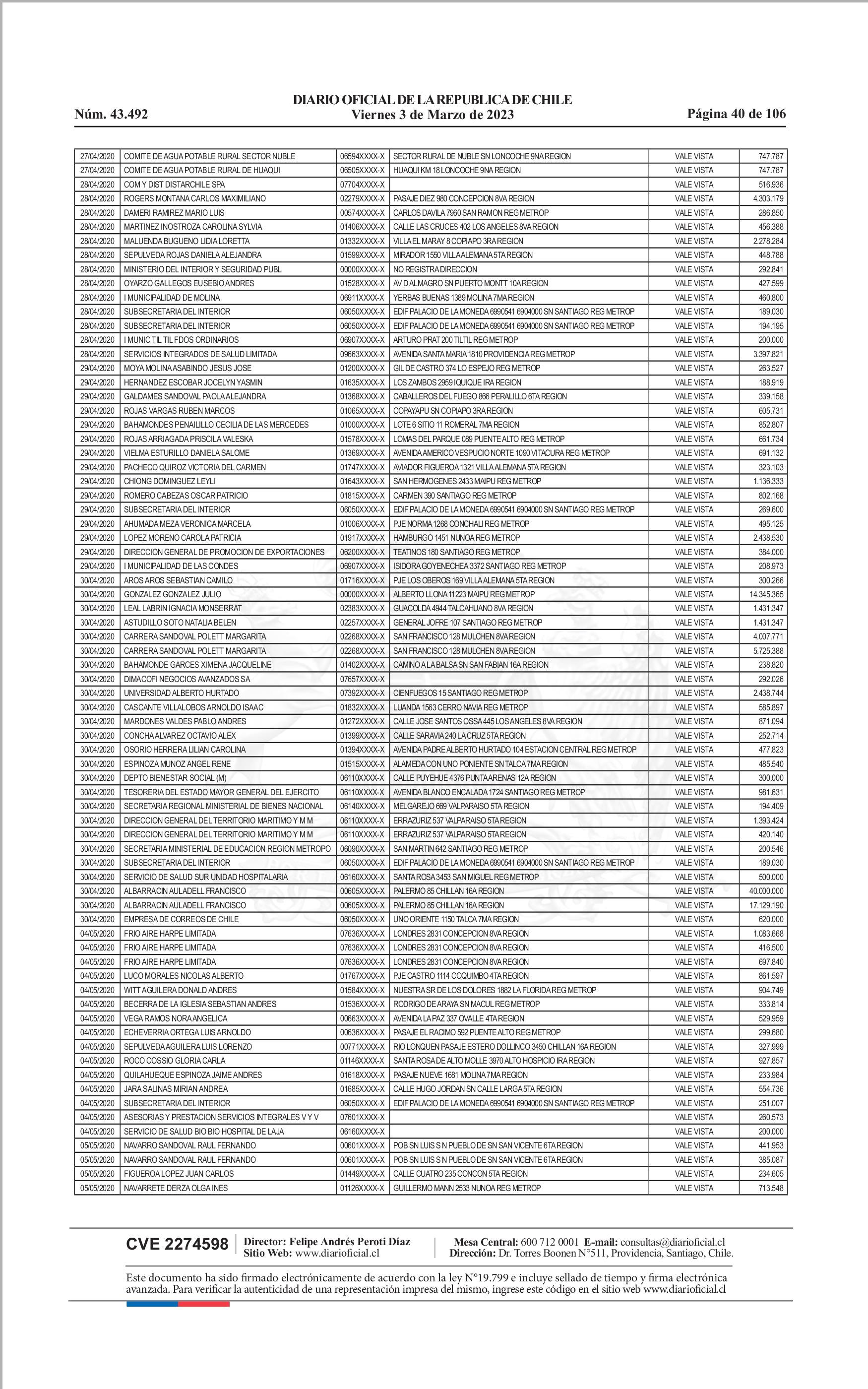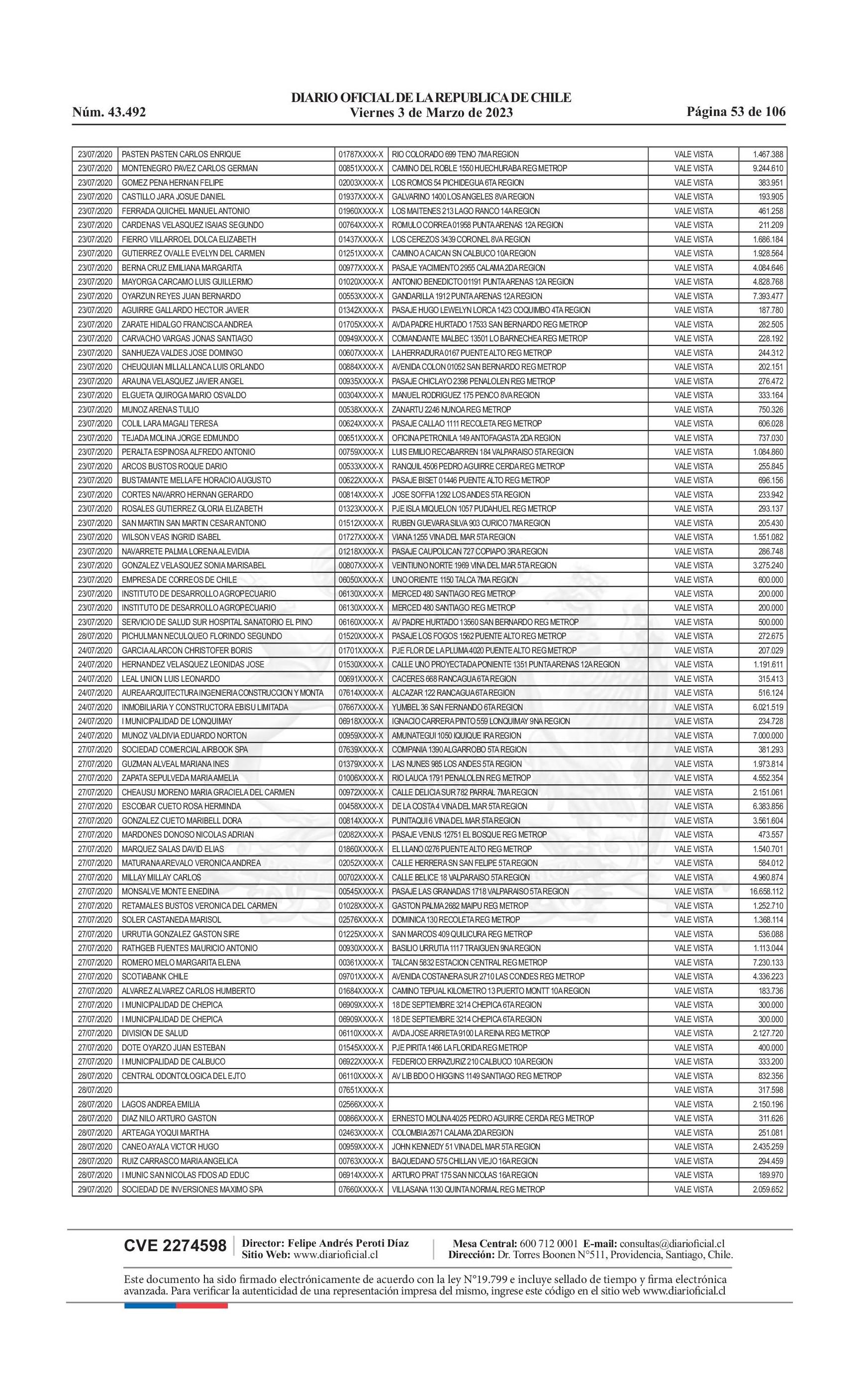 | Fuente: | Diario Oficial Edición Electrónica (Diario Oficial - Otras Secciones (Stgo - Chile)) | Página(s): | 10-115 |