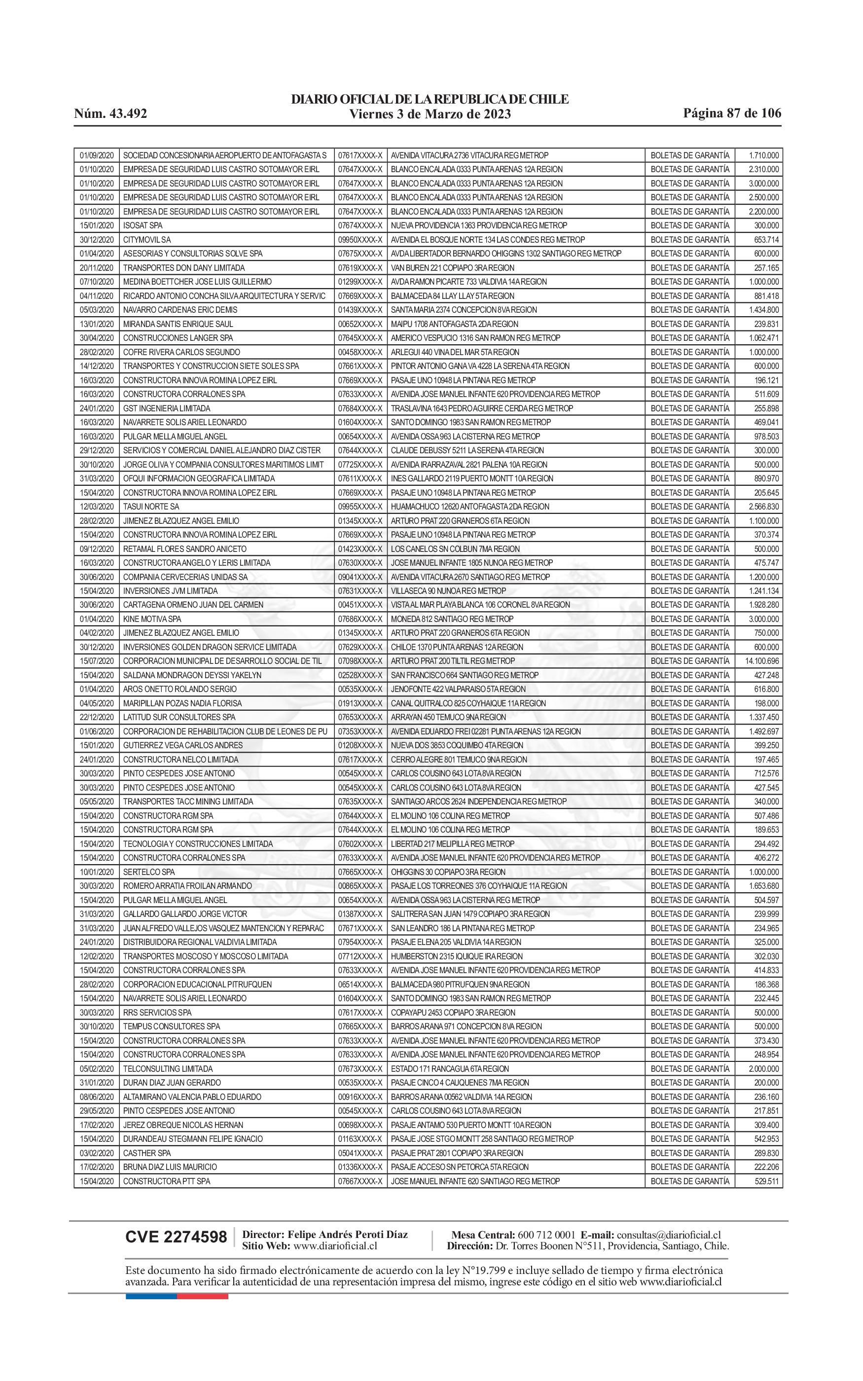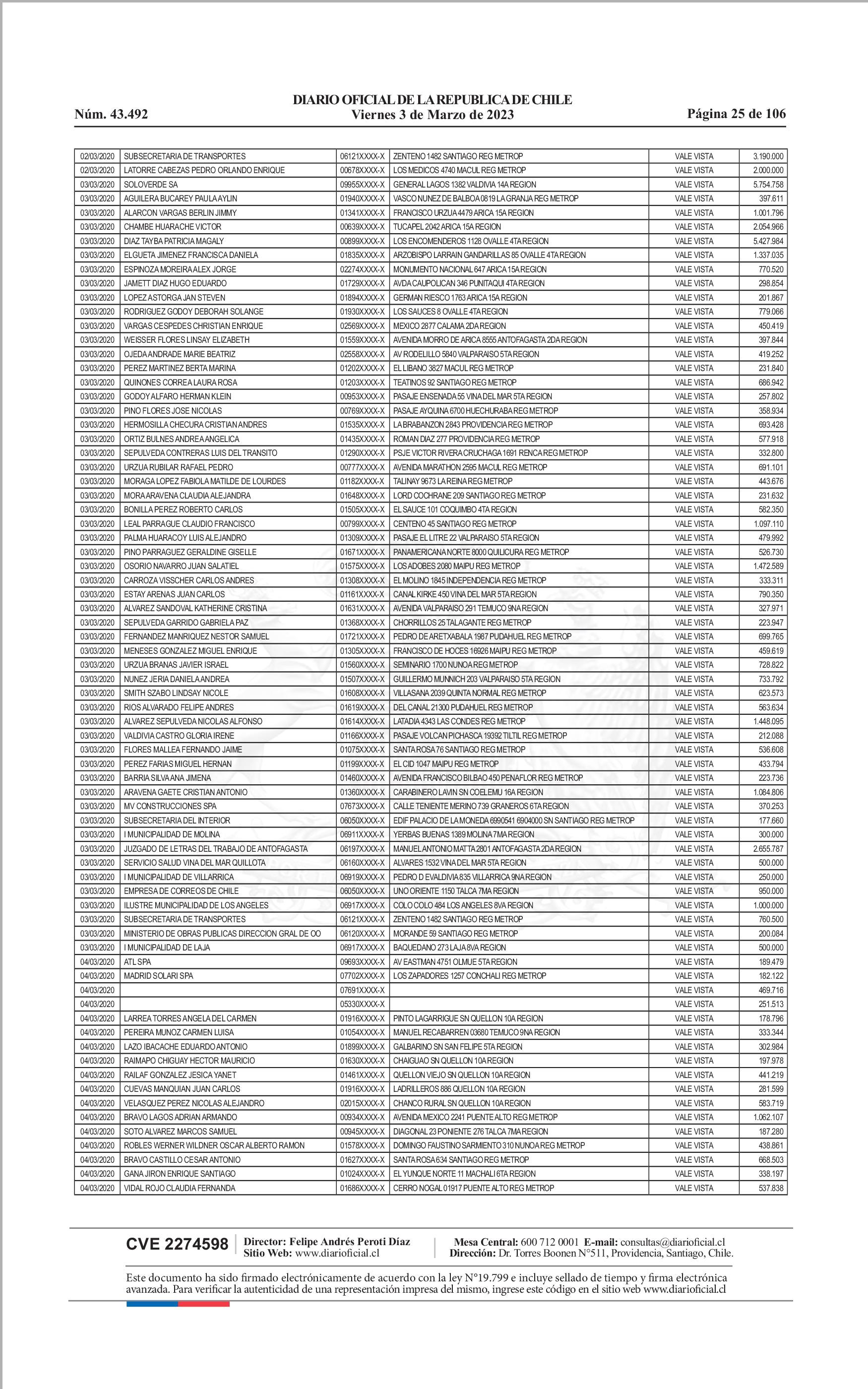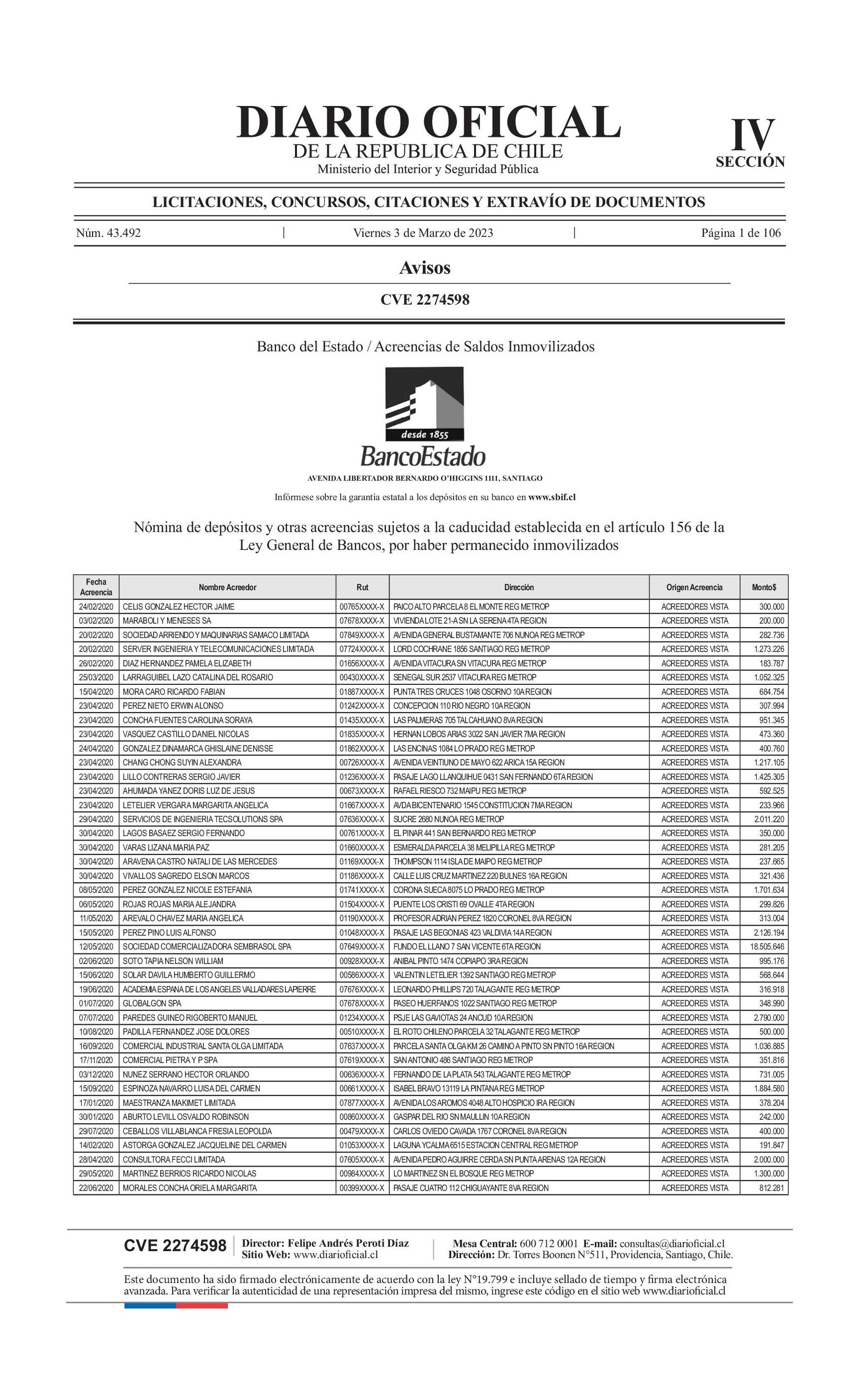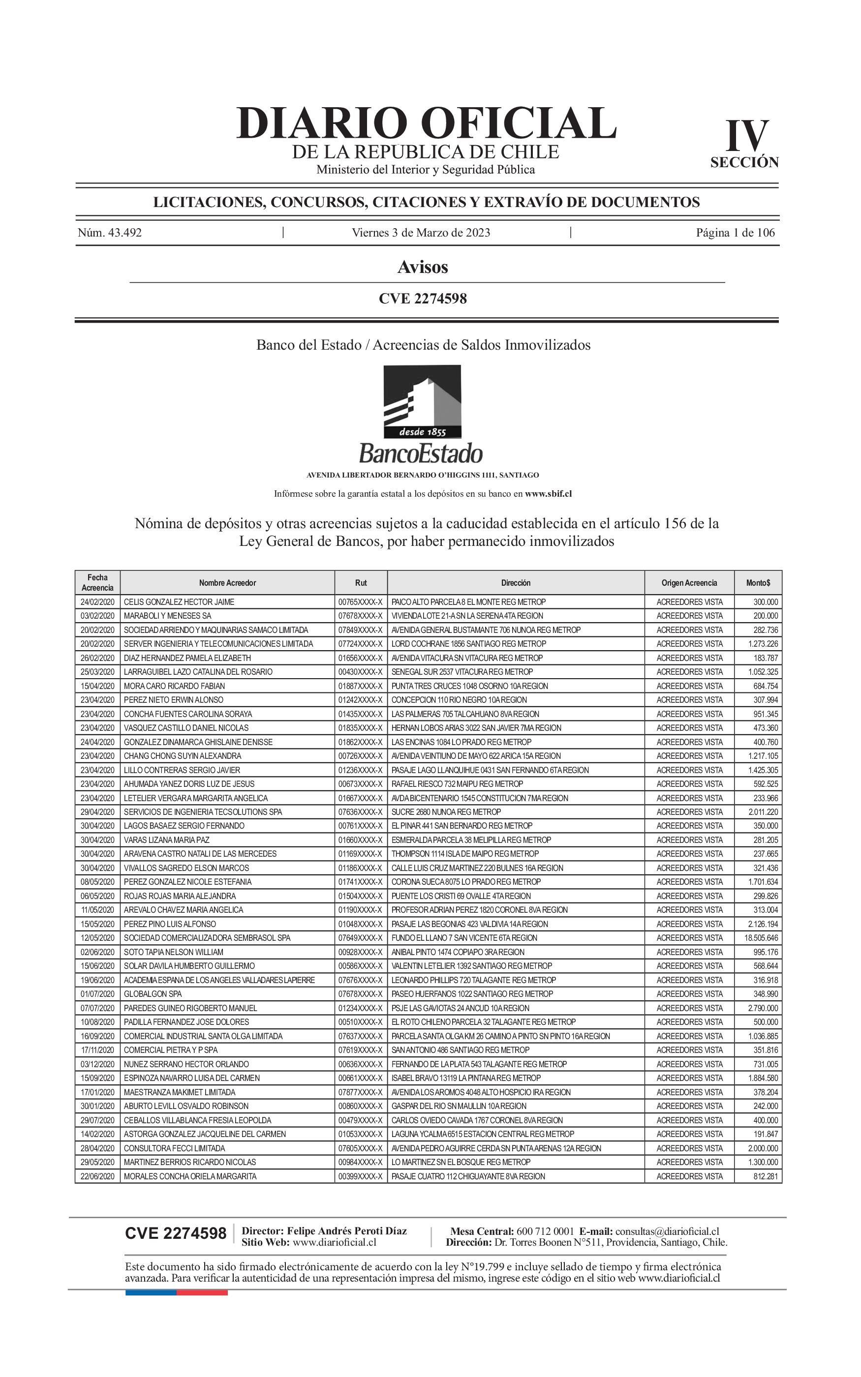 Avisos Avenida Libertador Bernardo O’higgins 1111, Santiago 03-03-2023 Diario Oficial Edición Electrónica |