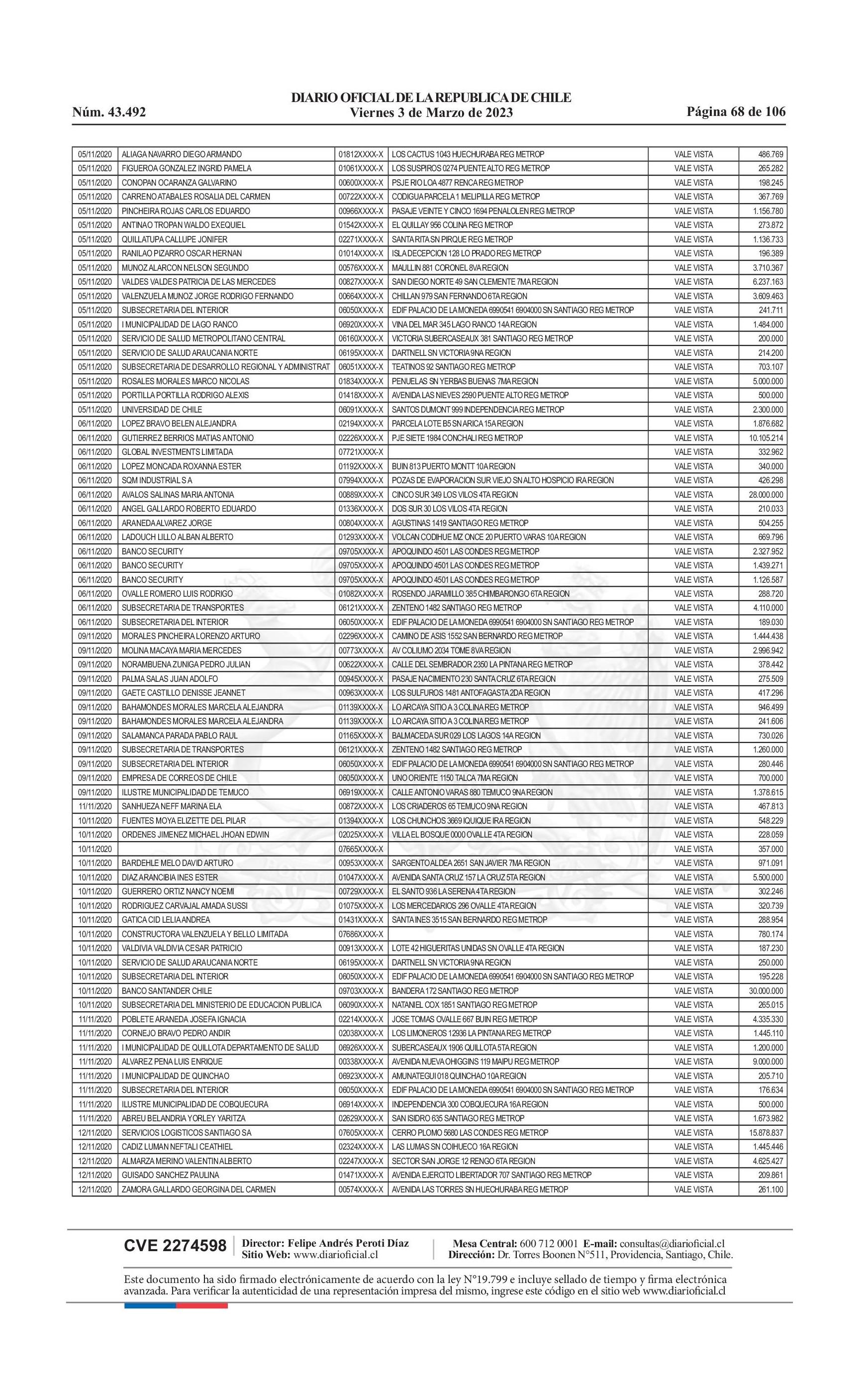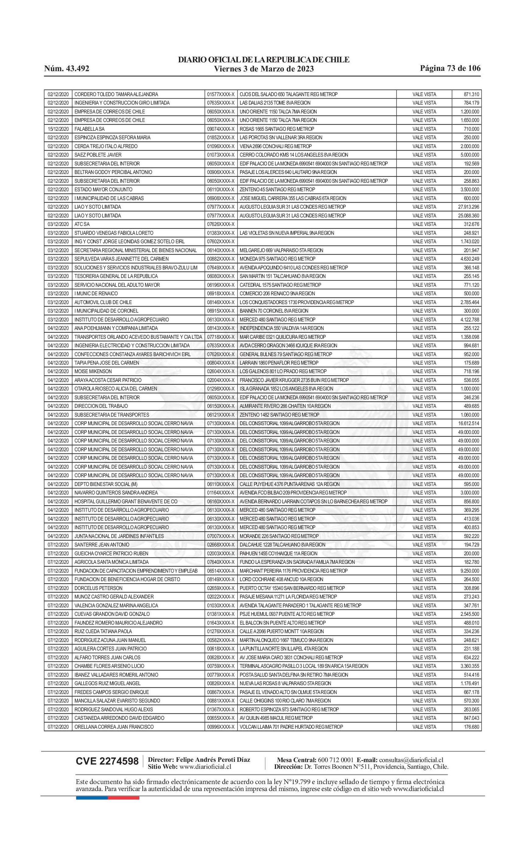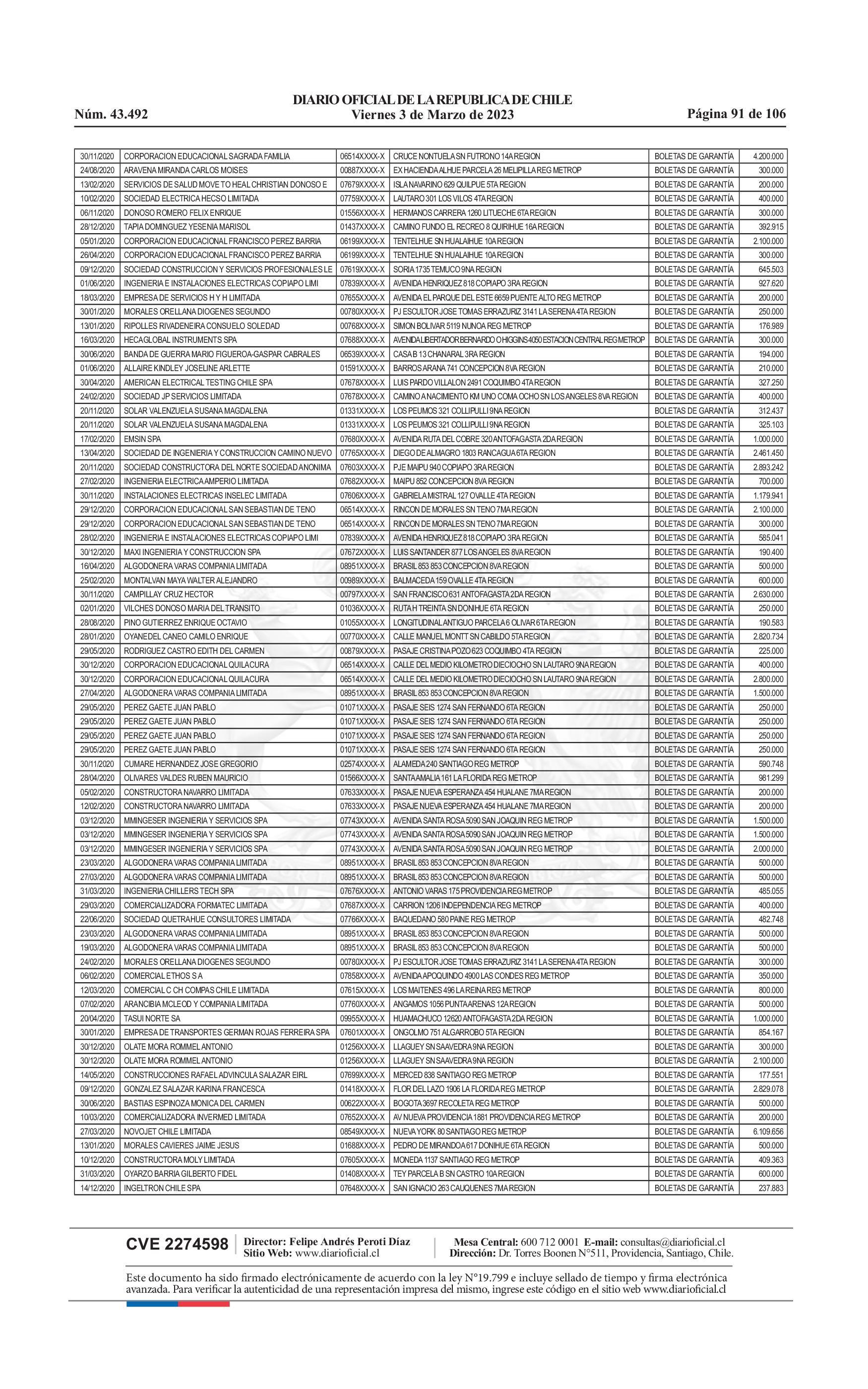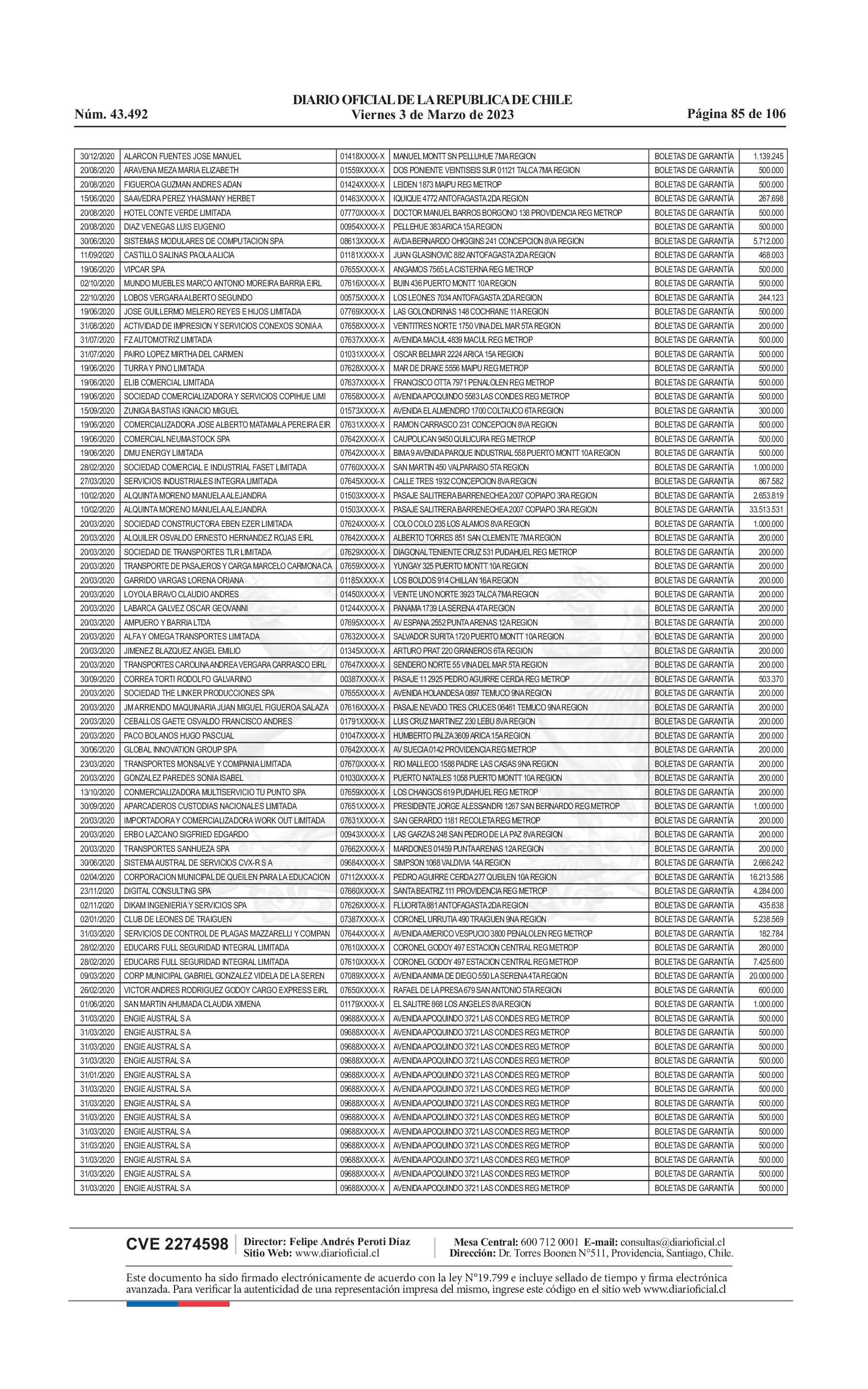 Avisos Avenida Libertador Bernardo O’higgins 1111, Santiago 03-03-2023 Diario Oficial Edición Electrónica |