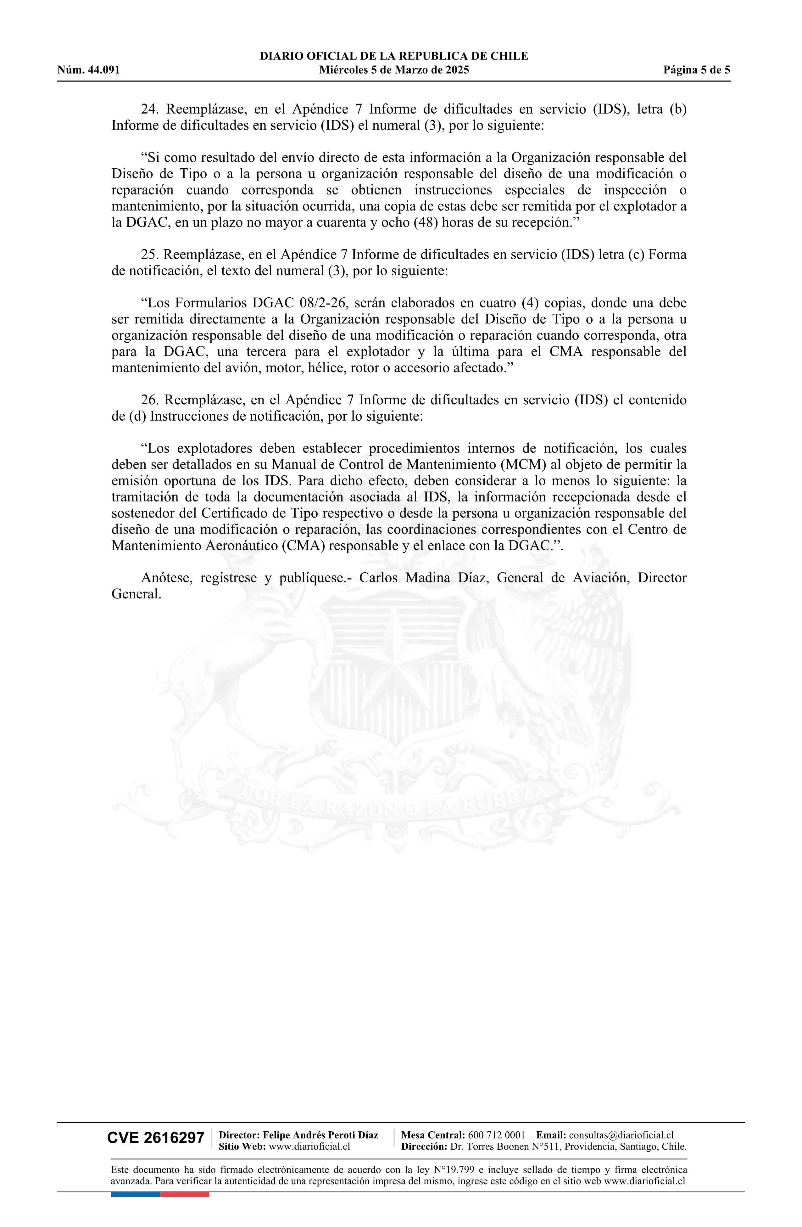 | Título: | Resolución exenta número 04/3/0148/1967, de 2024.- Modifica norma aeronáutica Requisitos de operación: regulares y no regulares para aviones de hasta 19 asientos de pasajeros, DAN 135 Volumen I |
