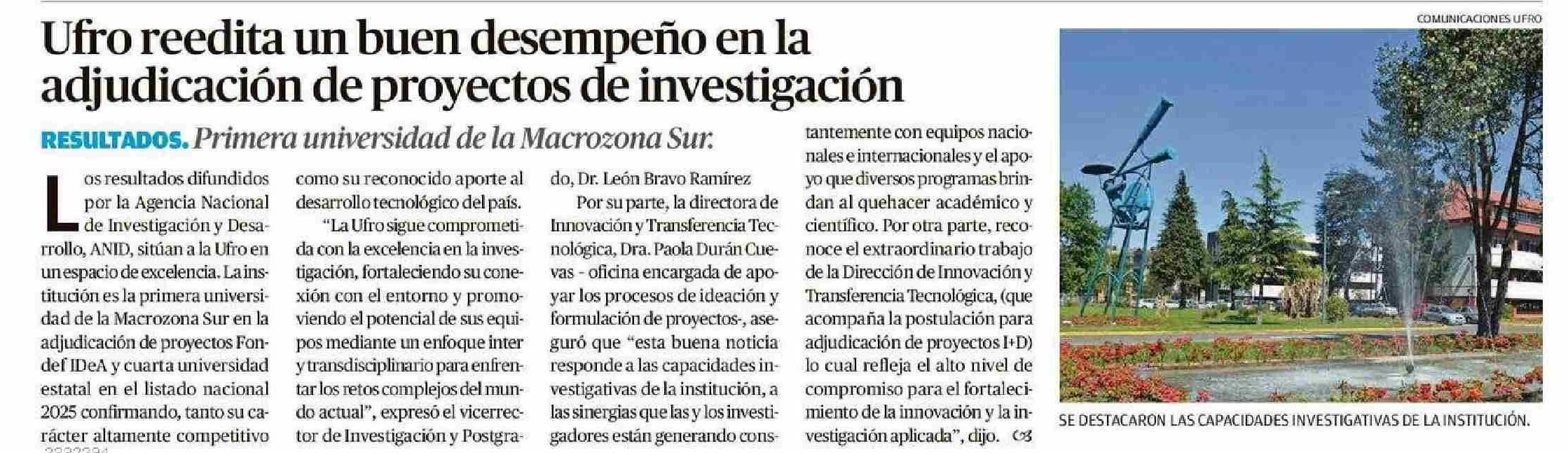 Título: Ufro reedita un buen desempeño en la adjudicación de proyectos de investigación