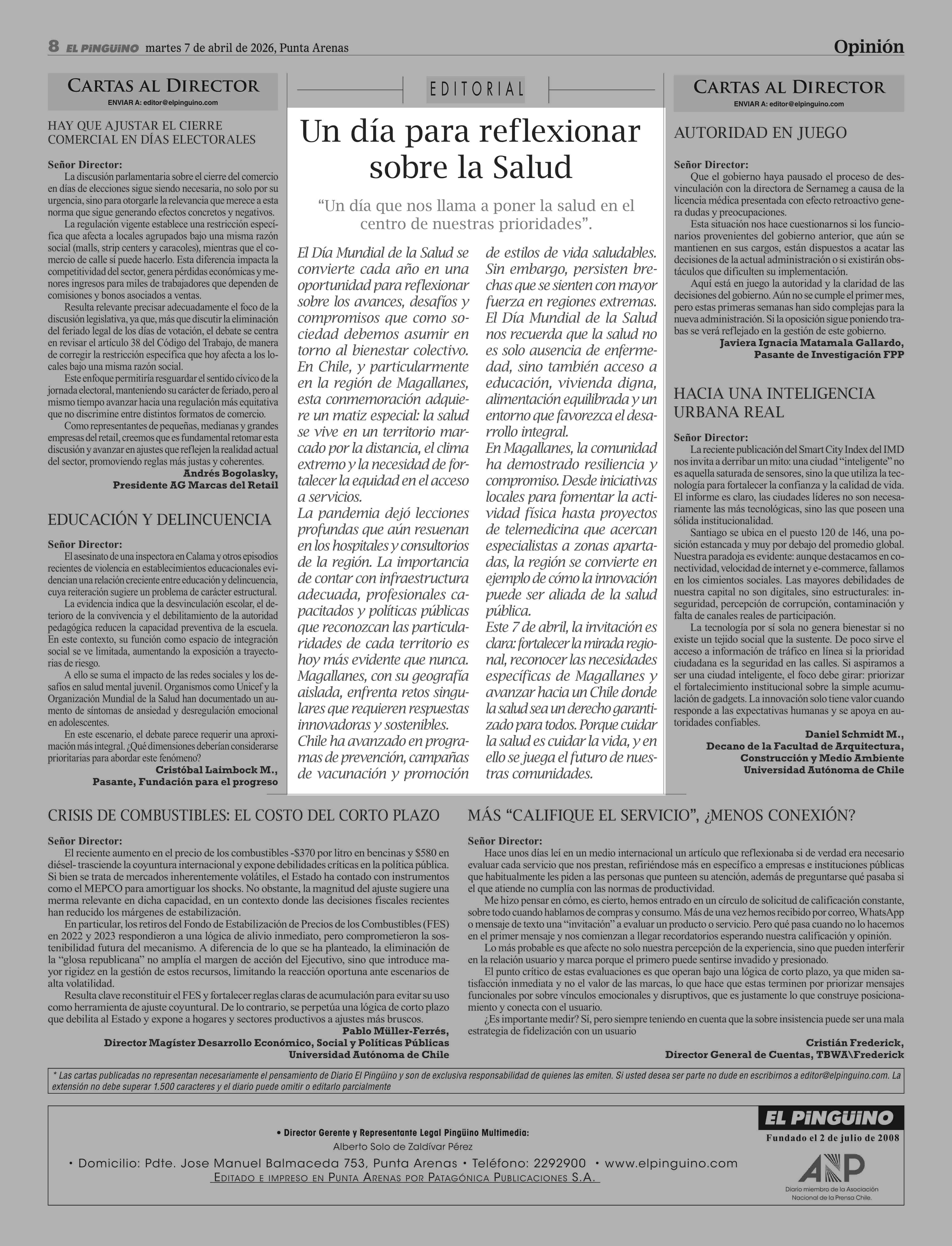Editorial: Un día para reflexionar sobre la salud 07-04-2026 El Pingüino |