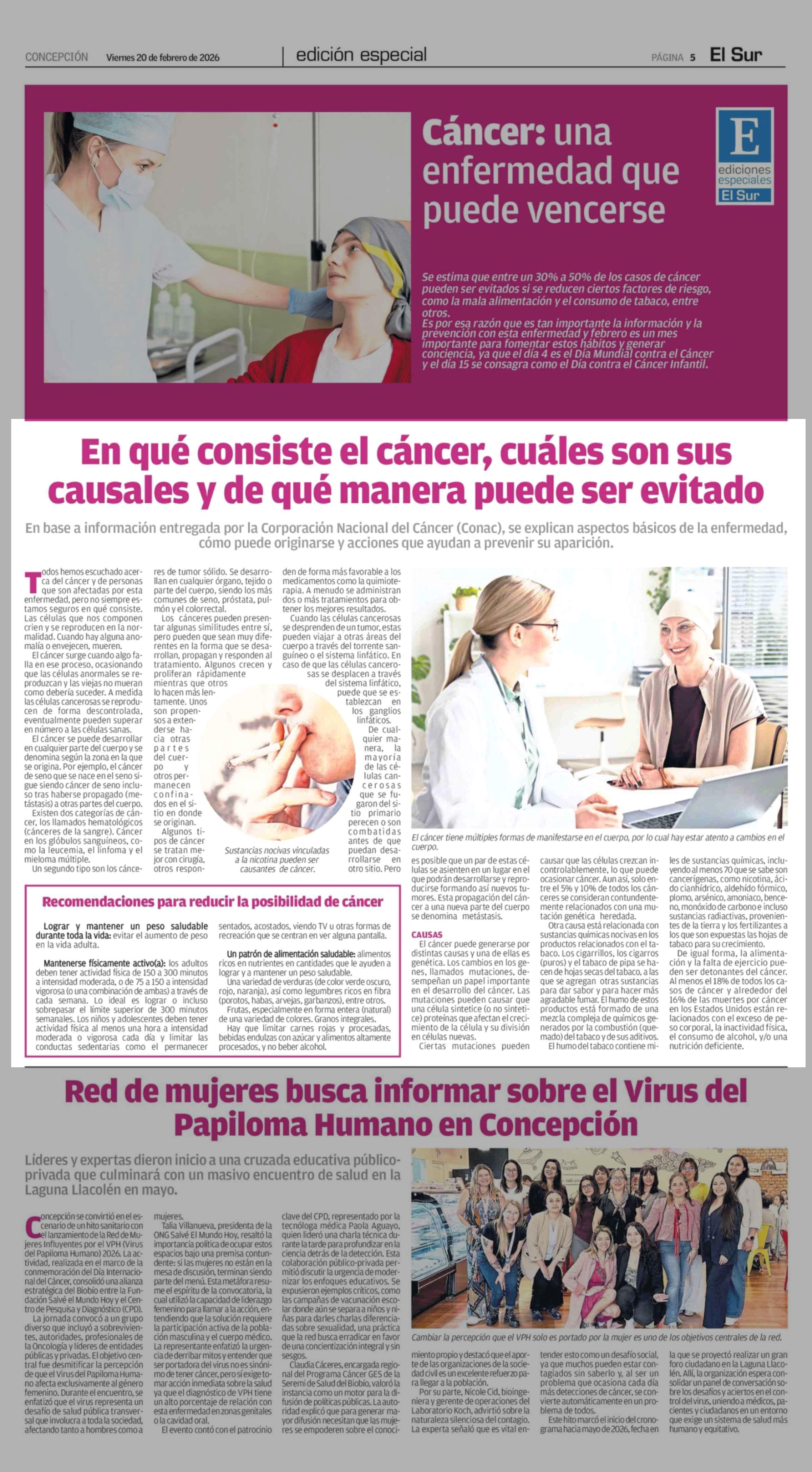 En qué consiste el cáncer, cuáles son sus causales y de qué manera puede ser evitado 20-02-2026 El Sur |