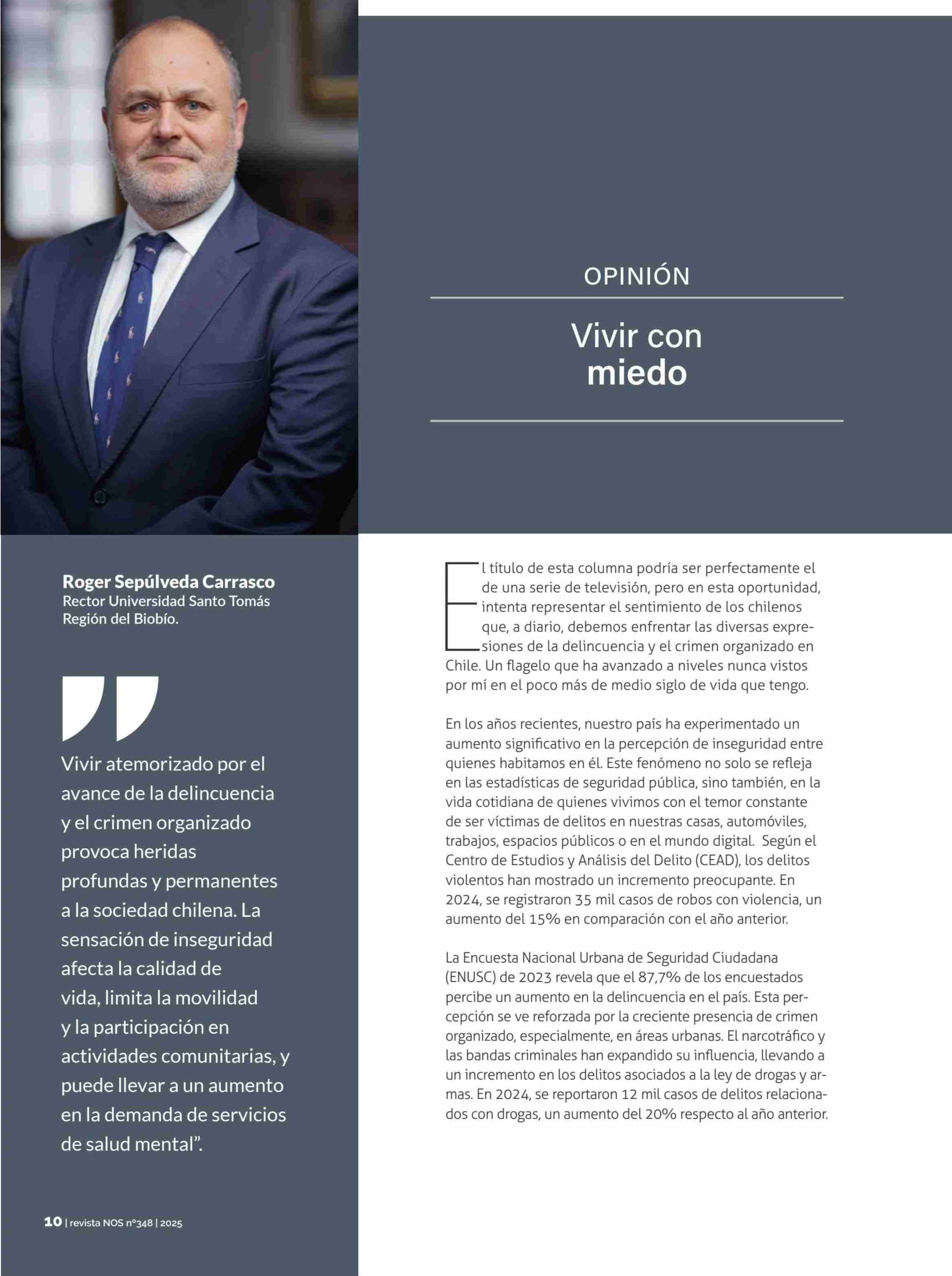 COLUMNAS DE OPINIÓN: Vivir con miedo 25-04-2025 Revista Nos Concepción |