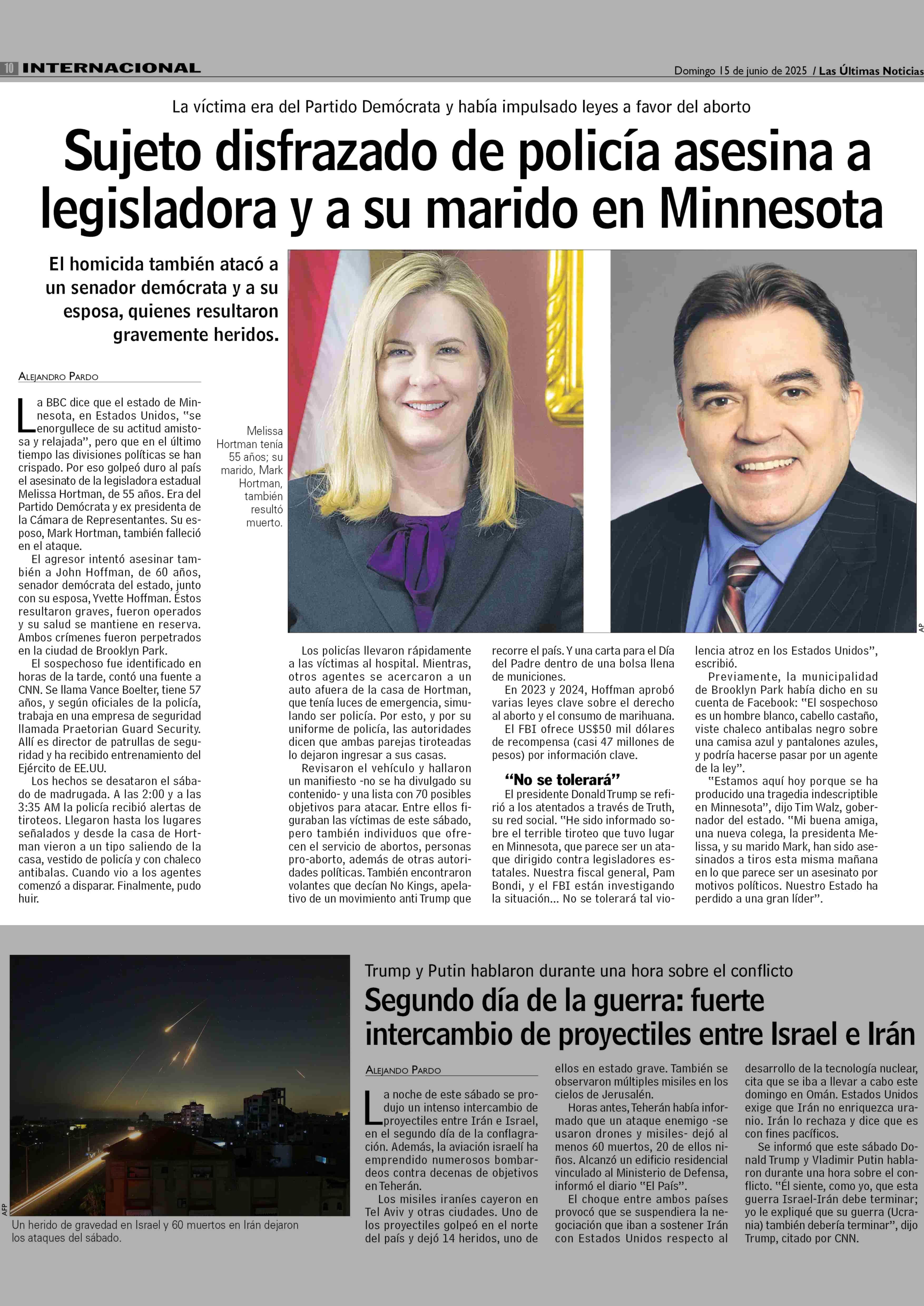 Sujeto disfrazado de policia asesina a legisladora y a su marido en Minnesota 15-06-2025 Las Últimas Noticias |