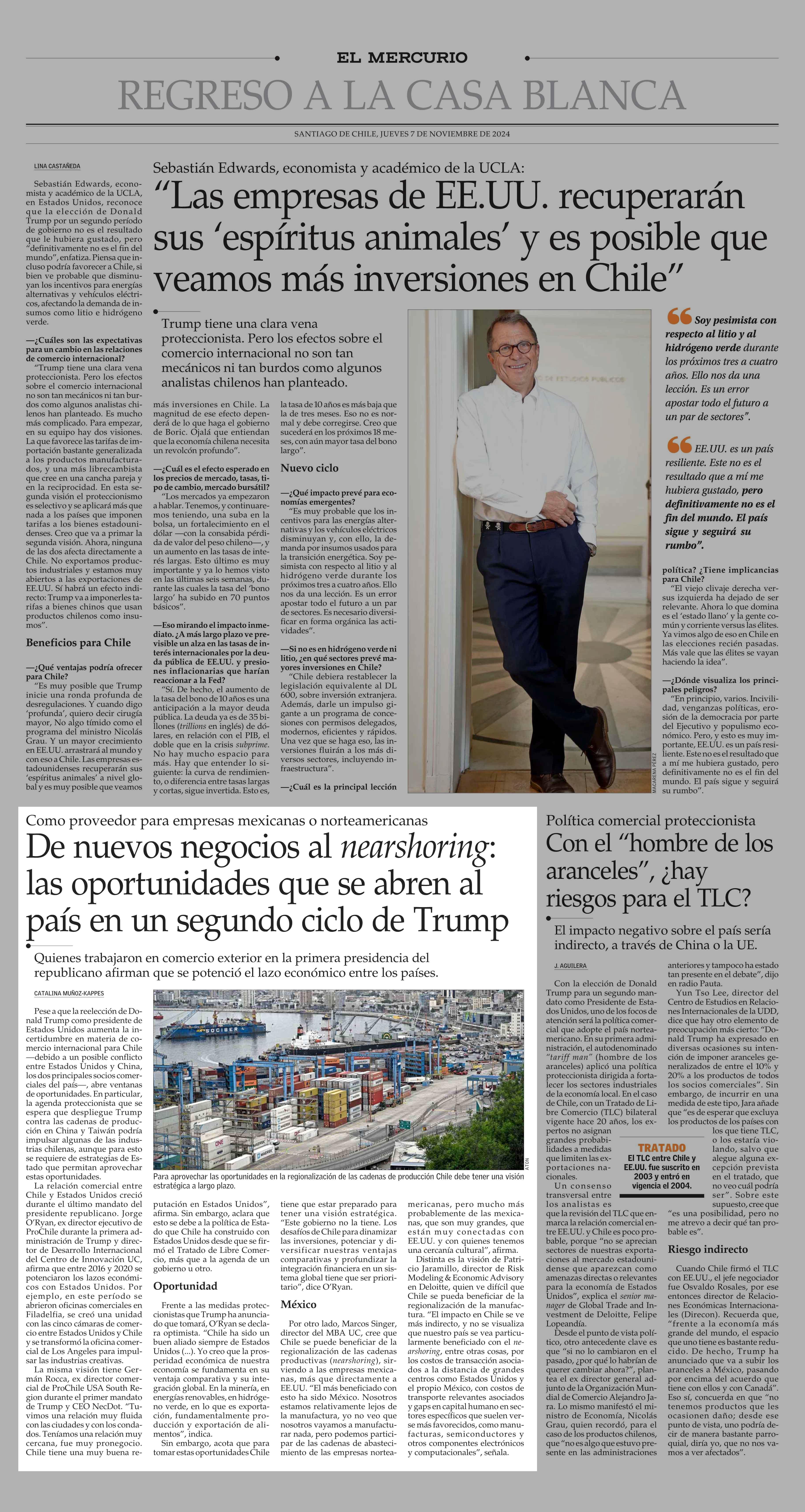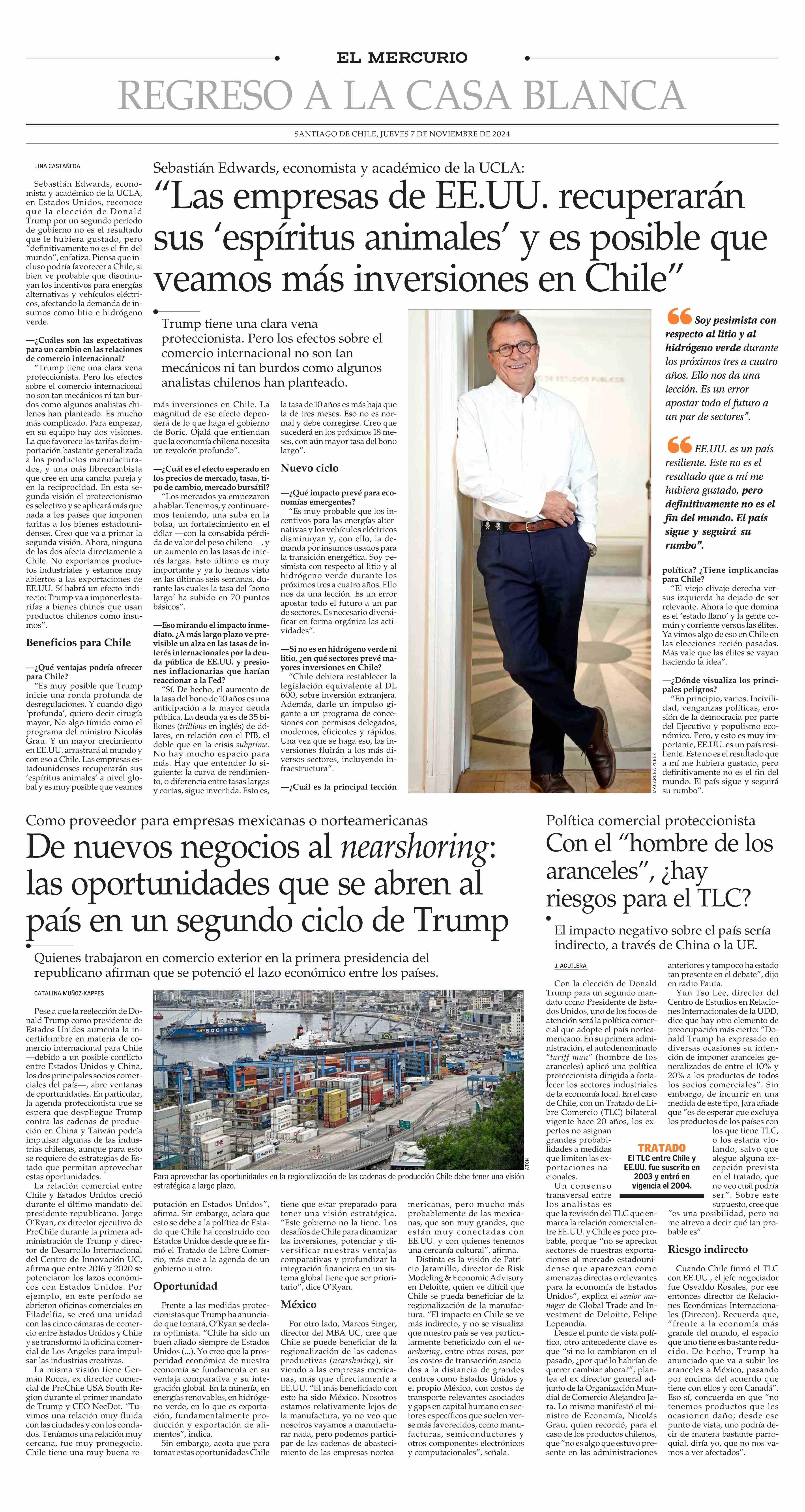 De nuevos negocios al nearshoring: las oportunidades que se abren al país en un segundo ciclo de Trump 07-11-2024 El Mercurio |