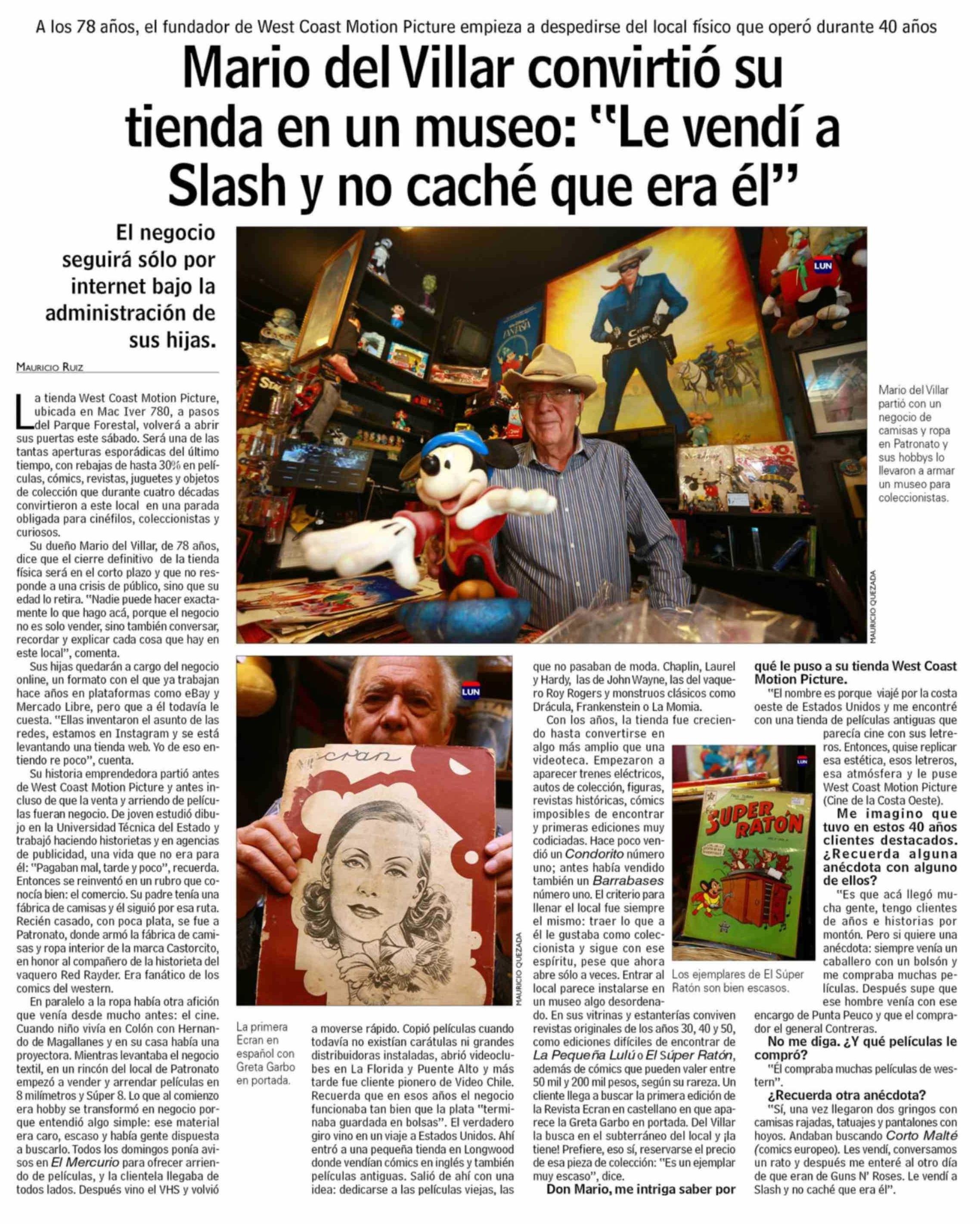 | Título: | Mario del Villar convirtió su tienda en un museo: "Le vendí a Slash y no cache que era el" |