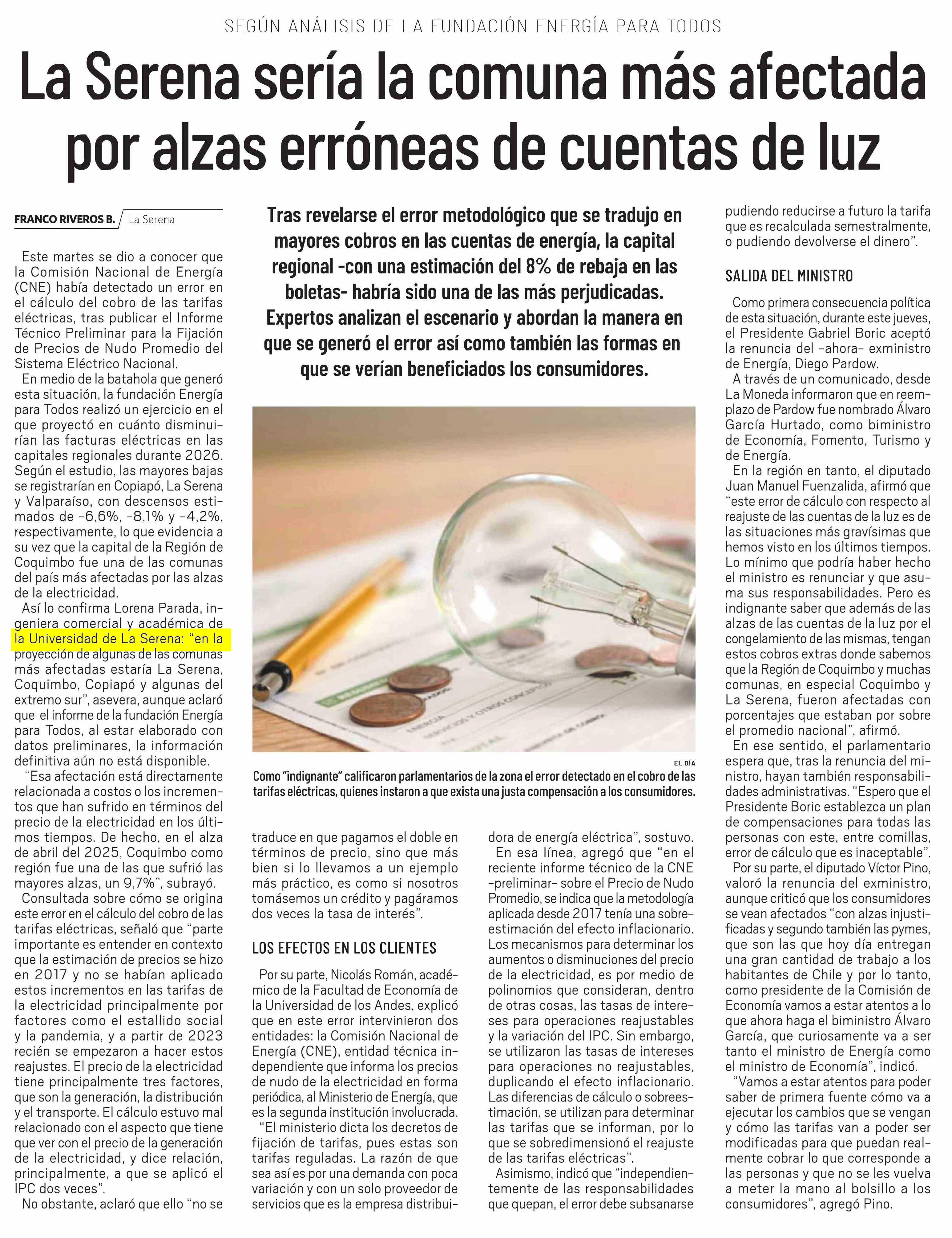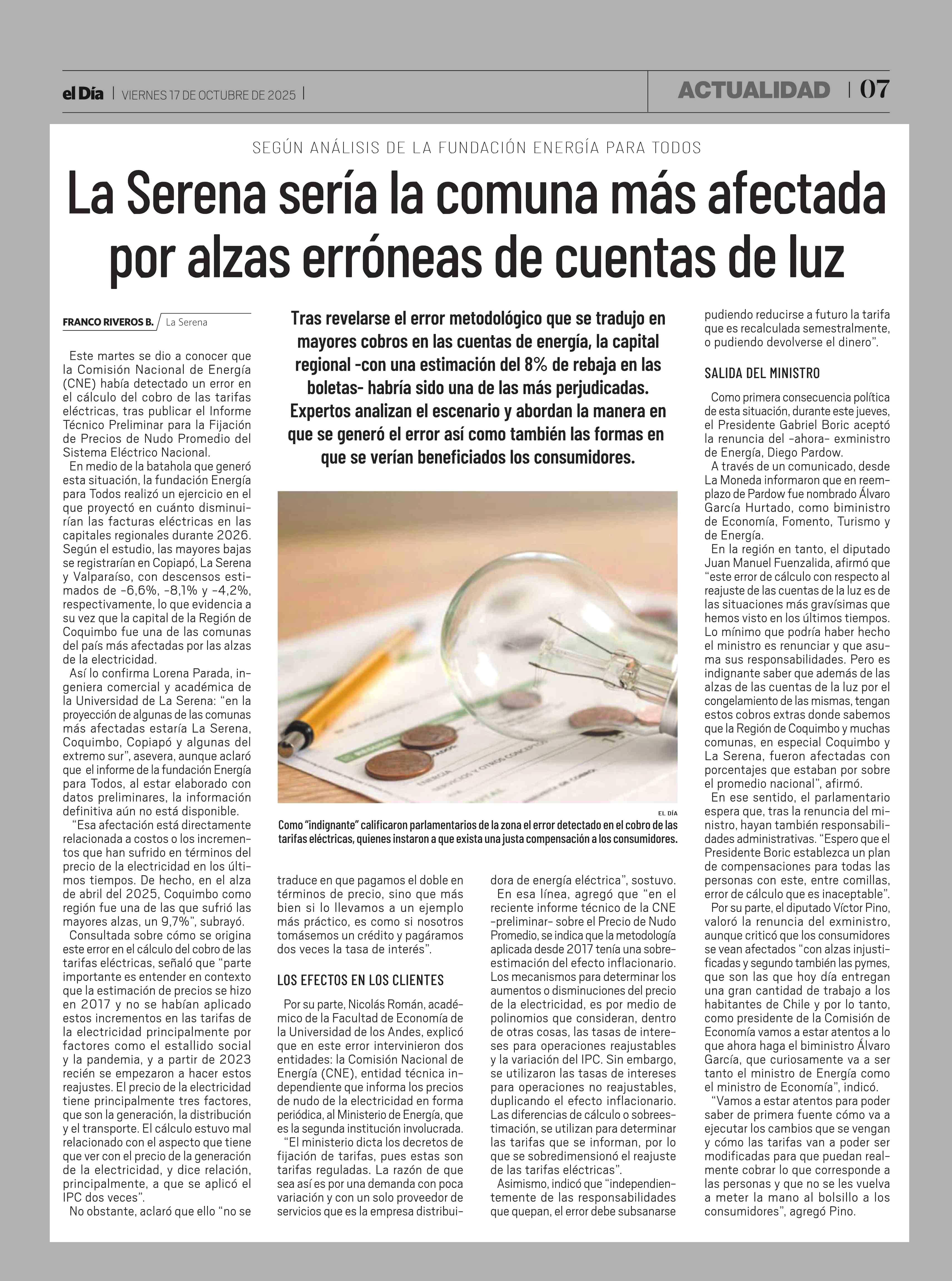 La Serena sería la comuna más afectada por alzas erróneas de cuentas de luz 17-10-2025 El Día |