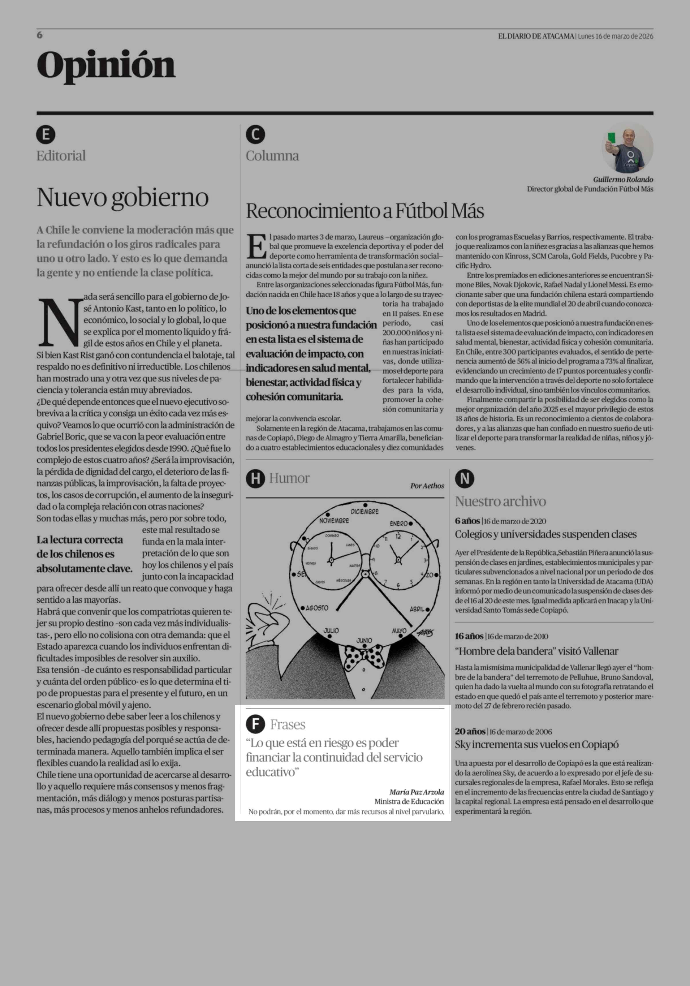 Fuente: El Diario de Atacama (El Diario de Atacama) Página(s): 6