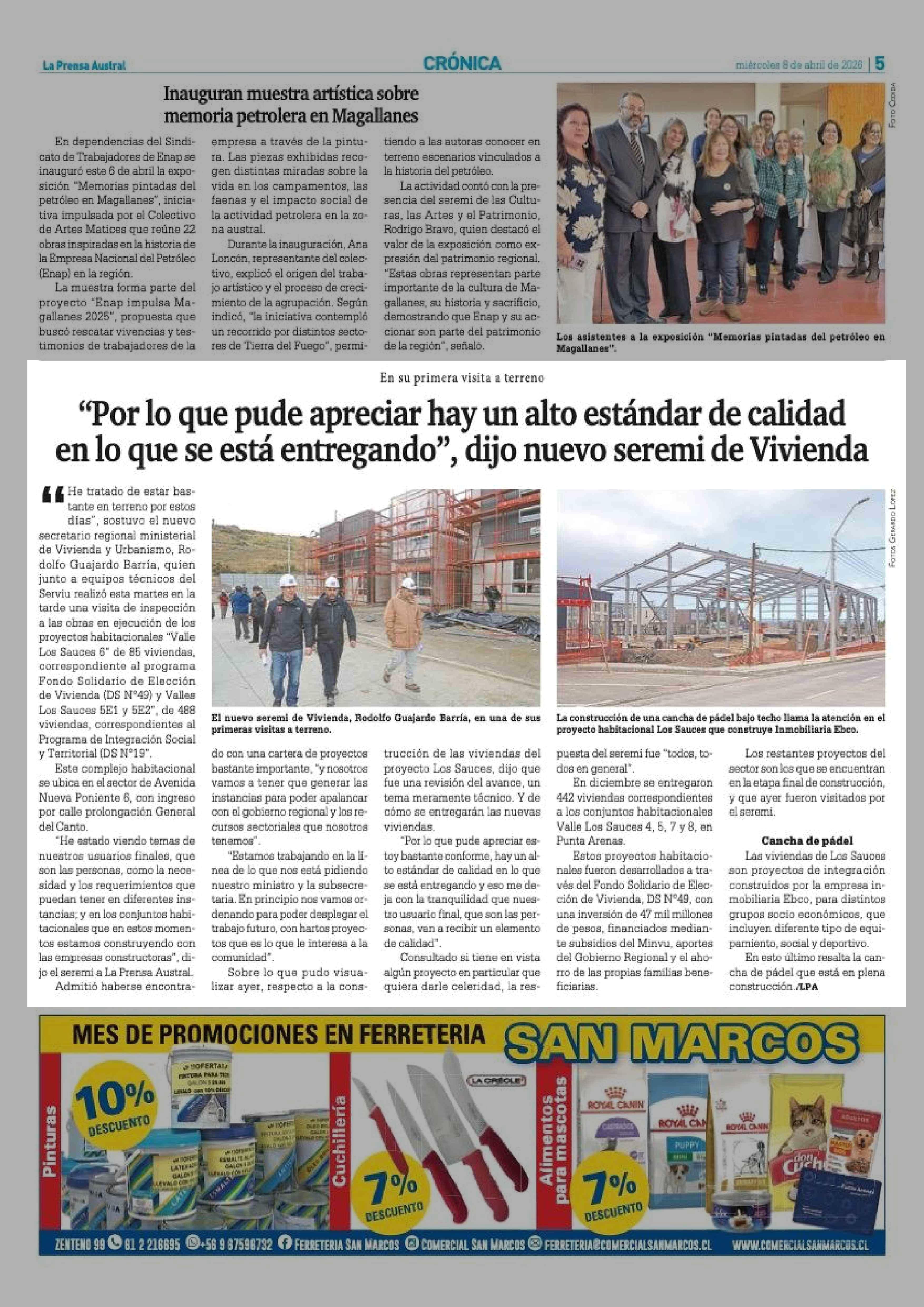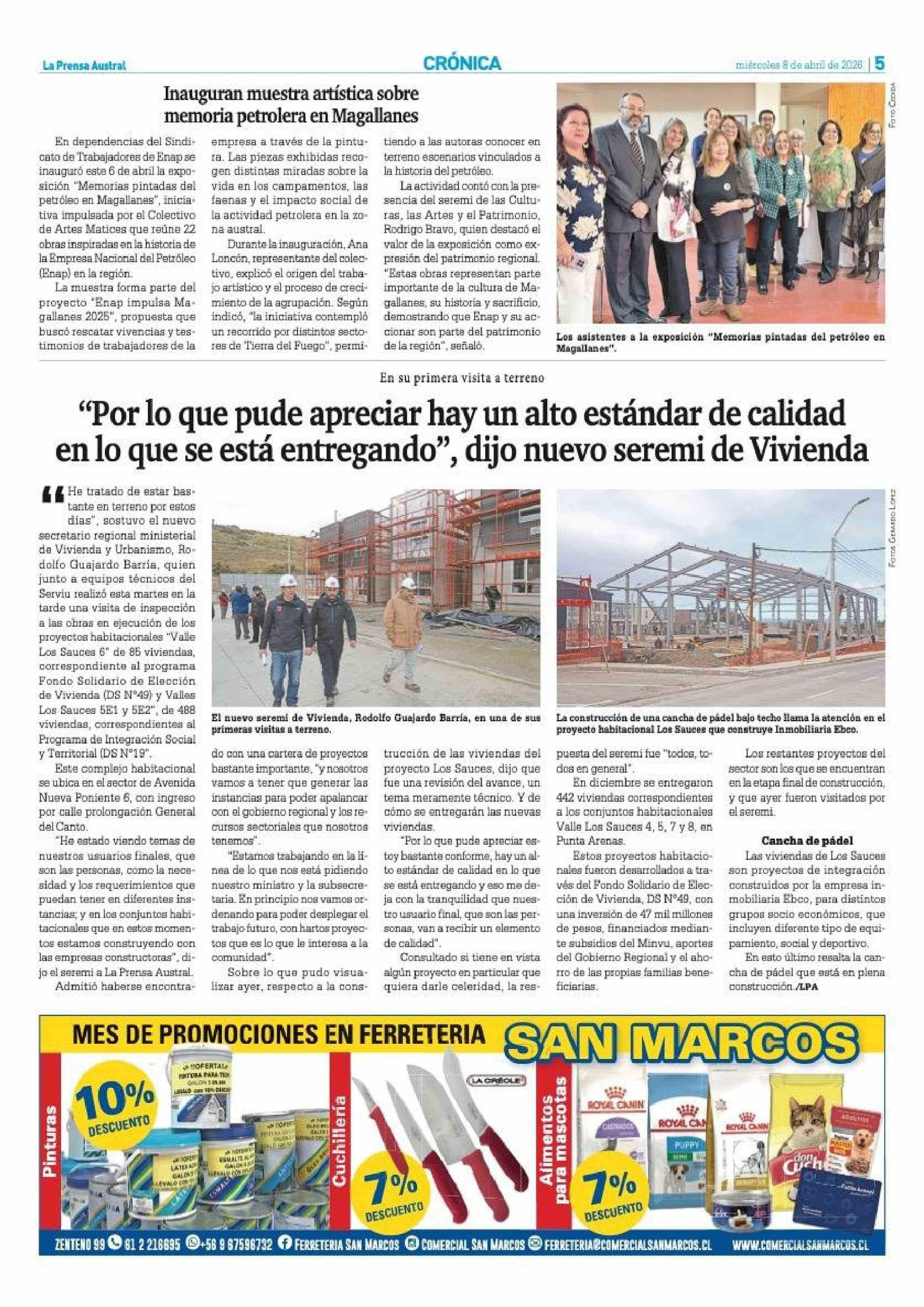 "Por lo que pude apreciar hay un alto estándar de calidad en lo que se está entregando", dijo nuevo seremi de Vivienda 08-04-2026 La Prensa Austral |