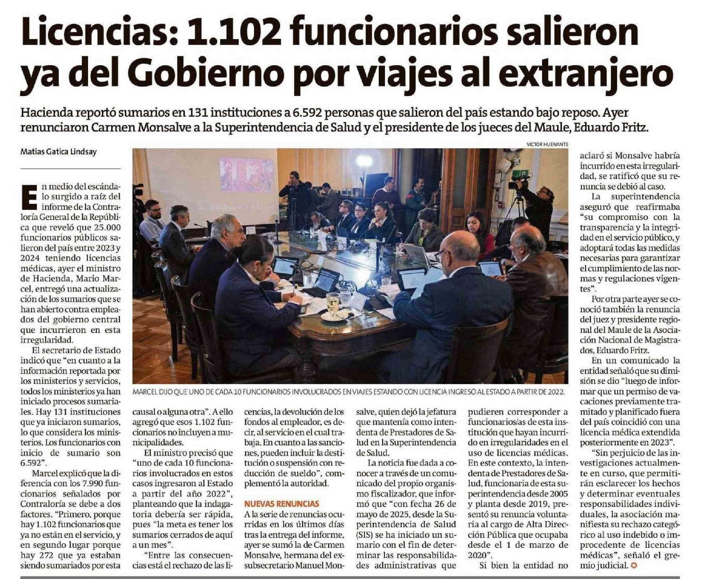 Licencias: 1.102 funcionarios salieron ya del Gobierno por viajes al extranjero 28-05-2025 La Estrella de Valparaíso |