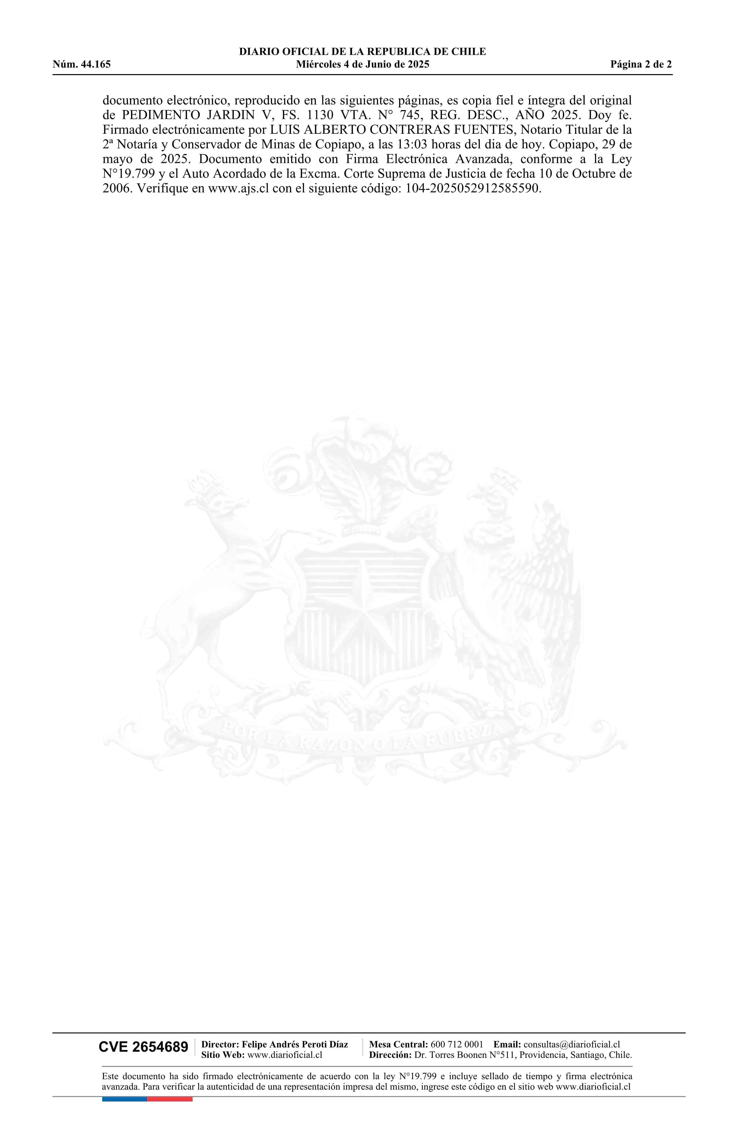 JARDIN V / SCM Estefanía 04-06-2025 DIARIO OFICIAL CHILE - BOLETÍN OFICIAL DE MINERÍA |