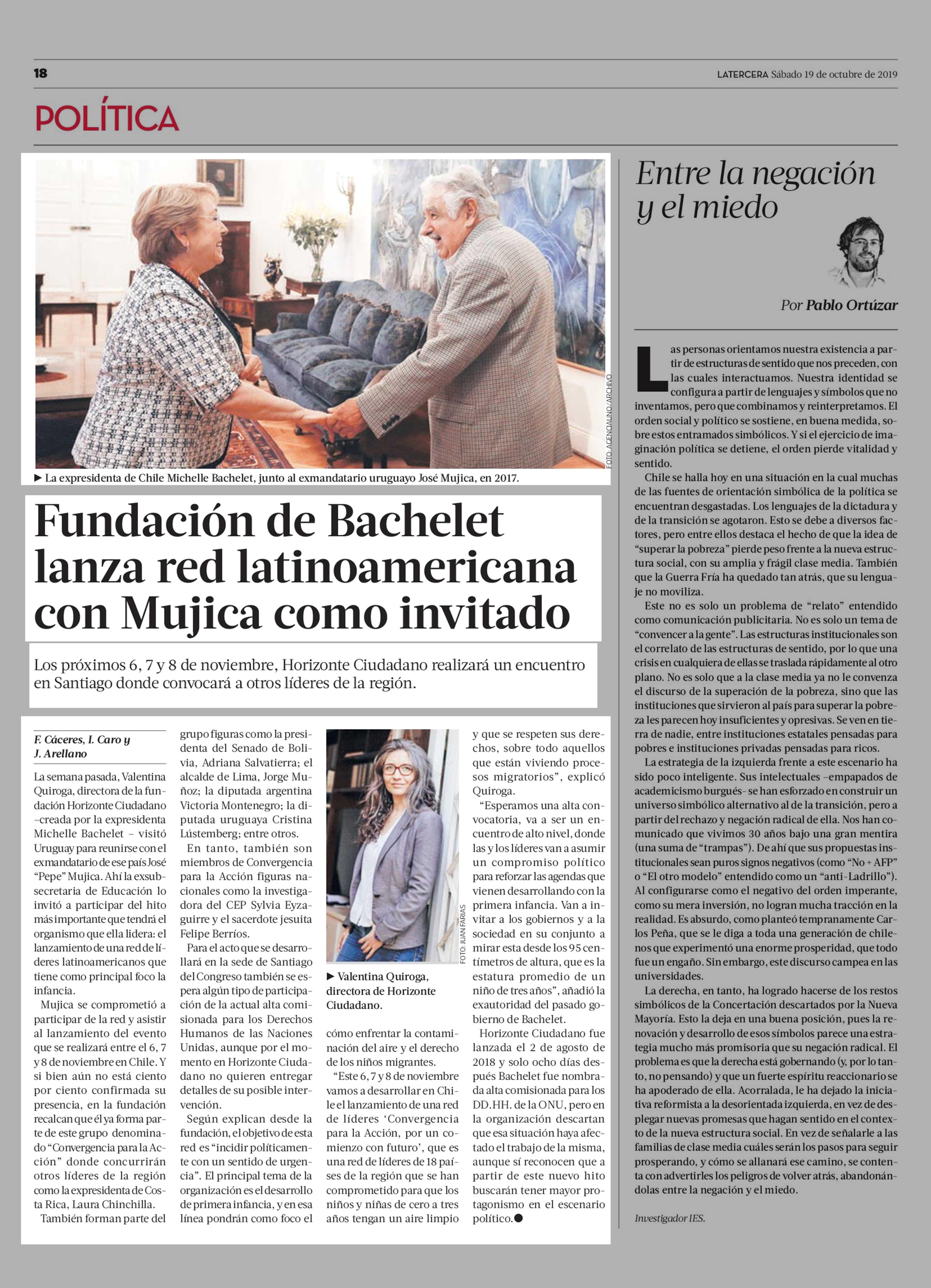 Fundación de Bachelet lanza red latinoamericana con Mujica como invitado 19-10-2019 La Tercera |