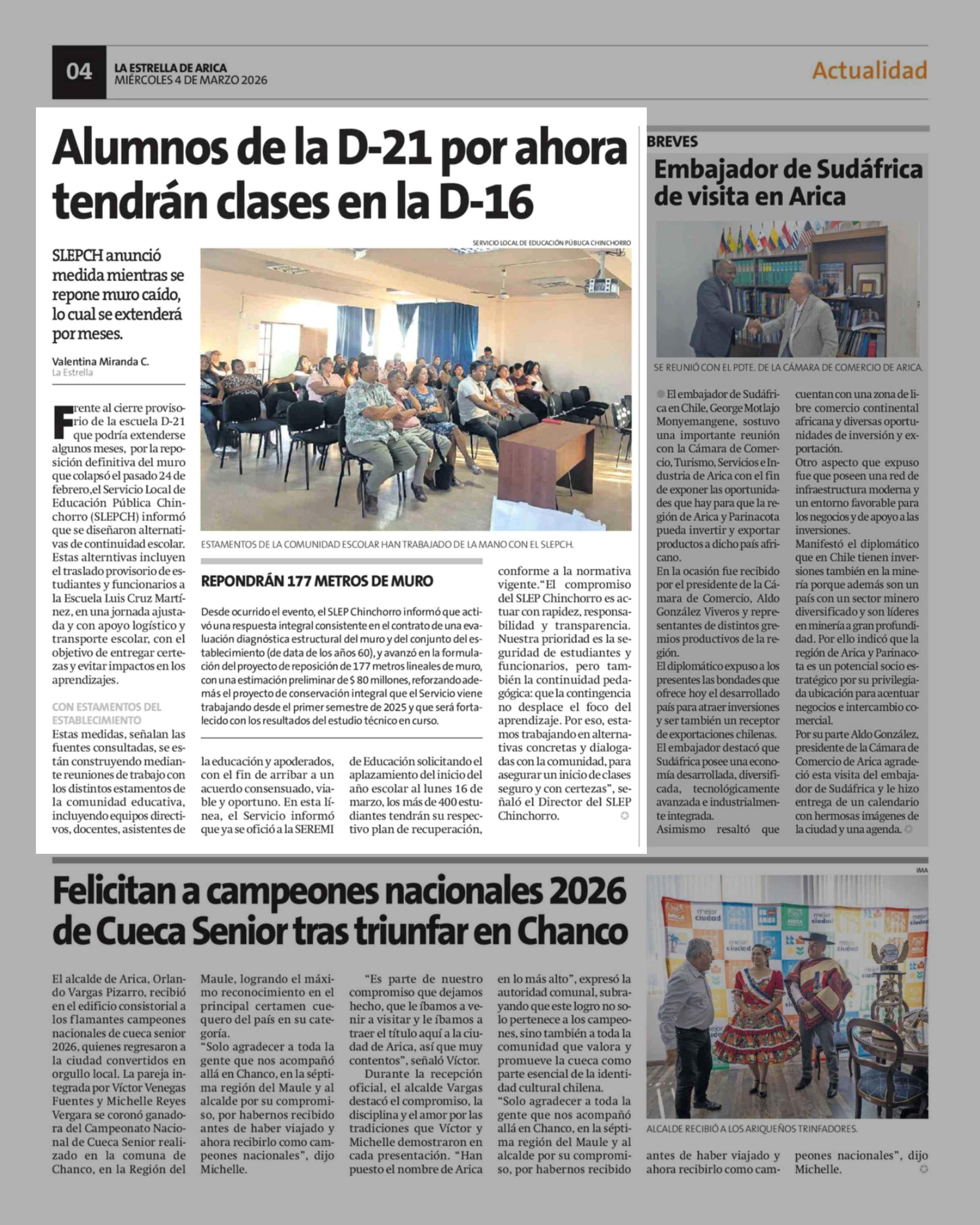 | Fecha: | 04-03-2026 | Sector: | Noticia general | Región: | Región de Arica y Parinacota |