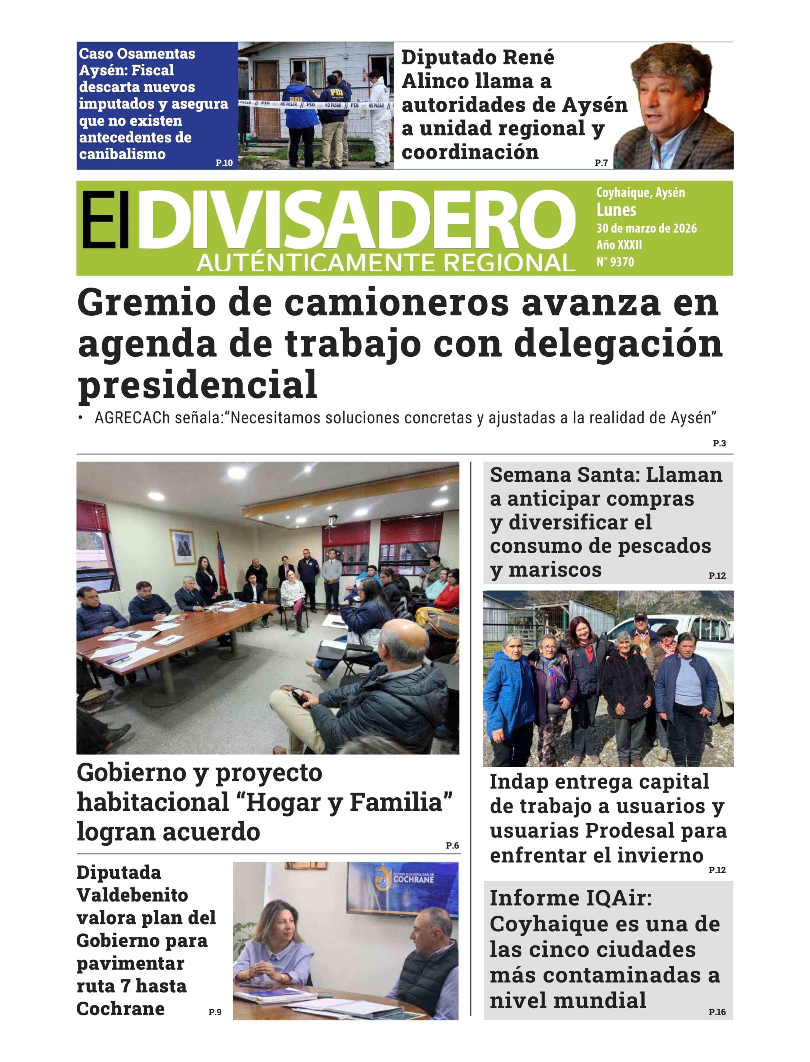 Fecha: 30-03-2026 Sector: Portada Región: Región Aysén del General Carlos Ibáñez del Campo
