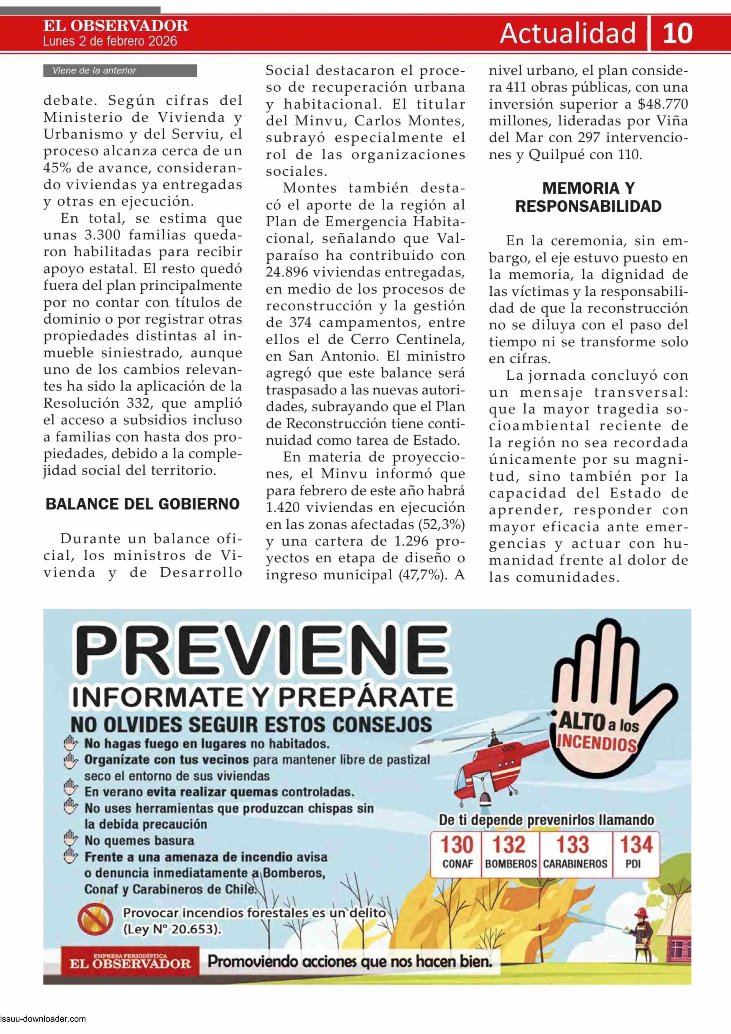 _A dos años del 2F: conmemoración pone foco en las familias que aún esperan reconstrucción 02-02-2026 El Observador Vespertino |