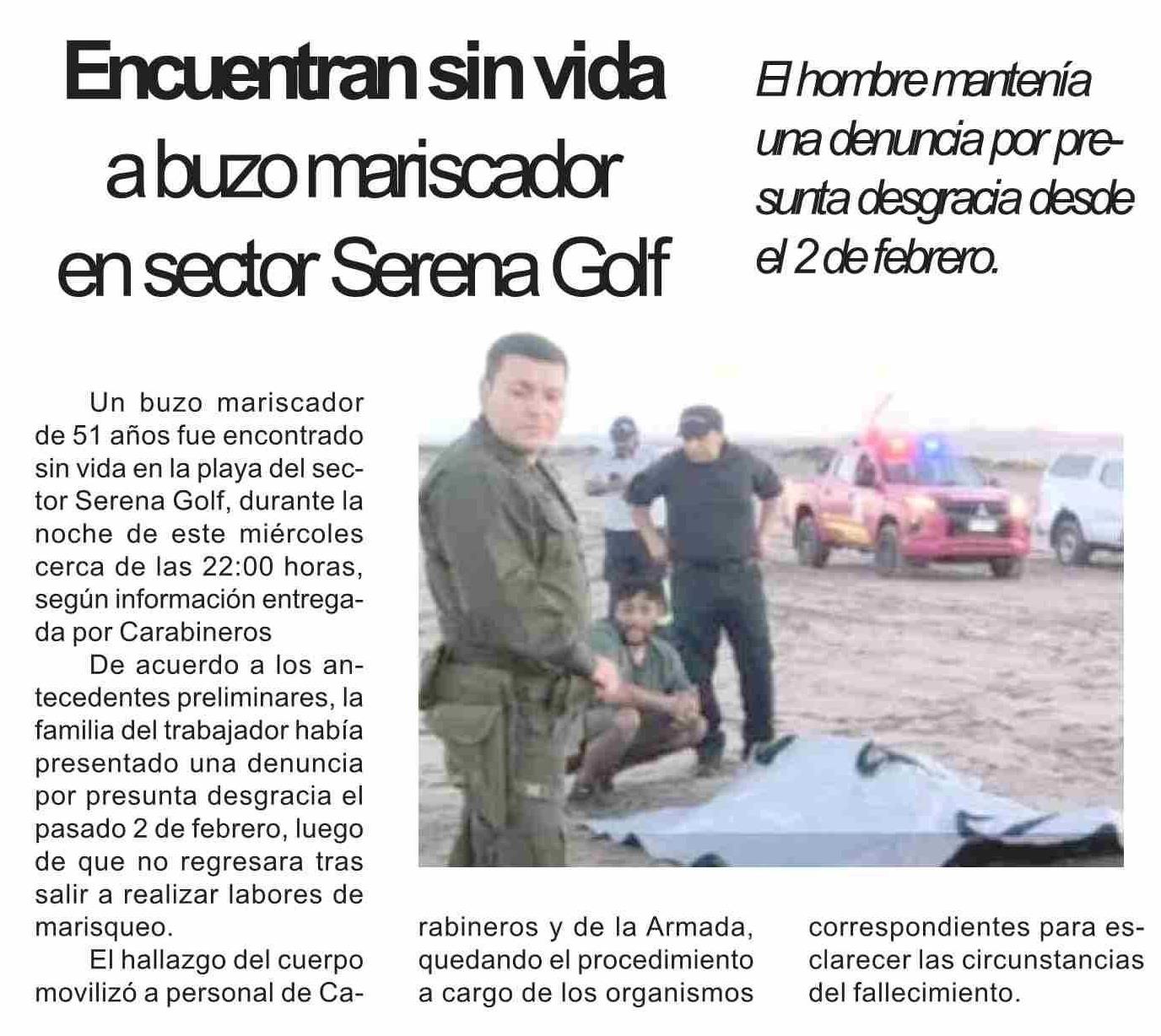 Encuentran sin vida a buzo mariscador en sector Serena Golf 06-02-2026 Diario la Región |